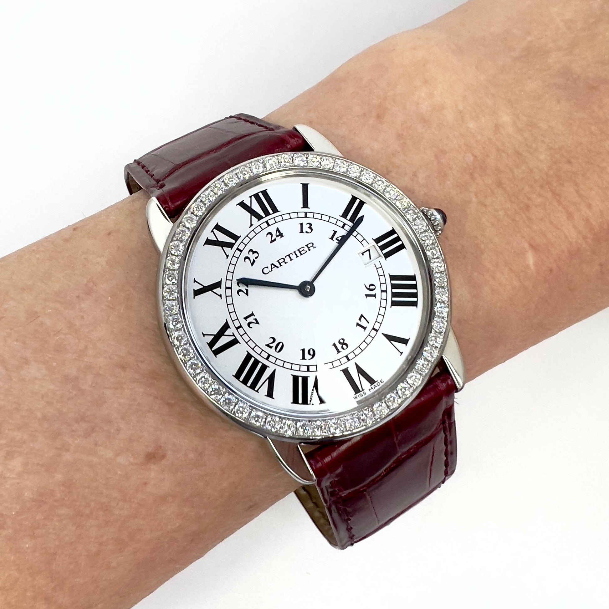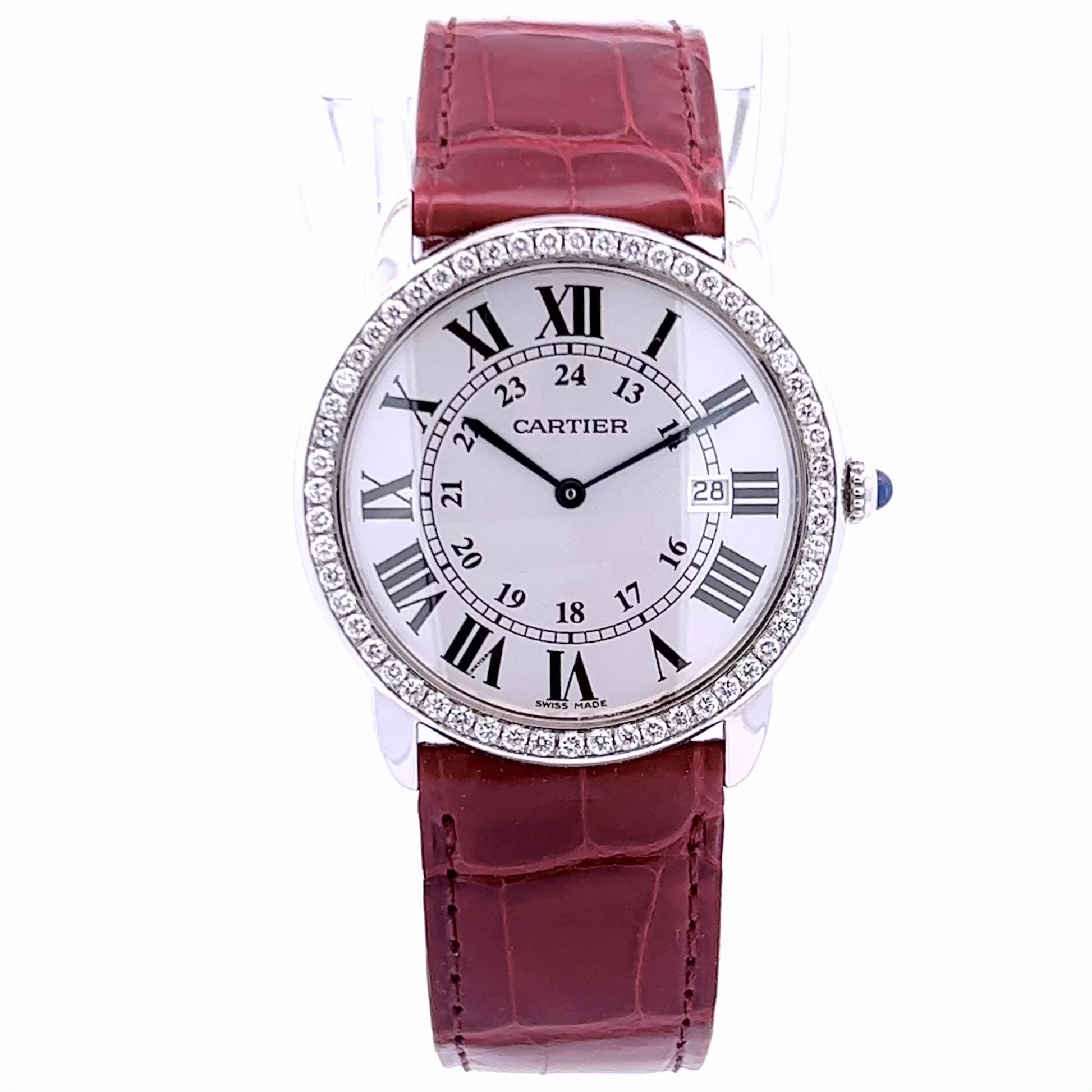 CARTIER RONDE SOLO Date 36mm Quartz Steel 0.90TCW DIAMOND Watch