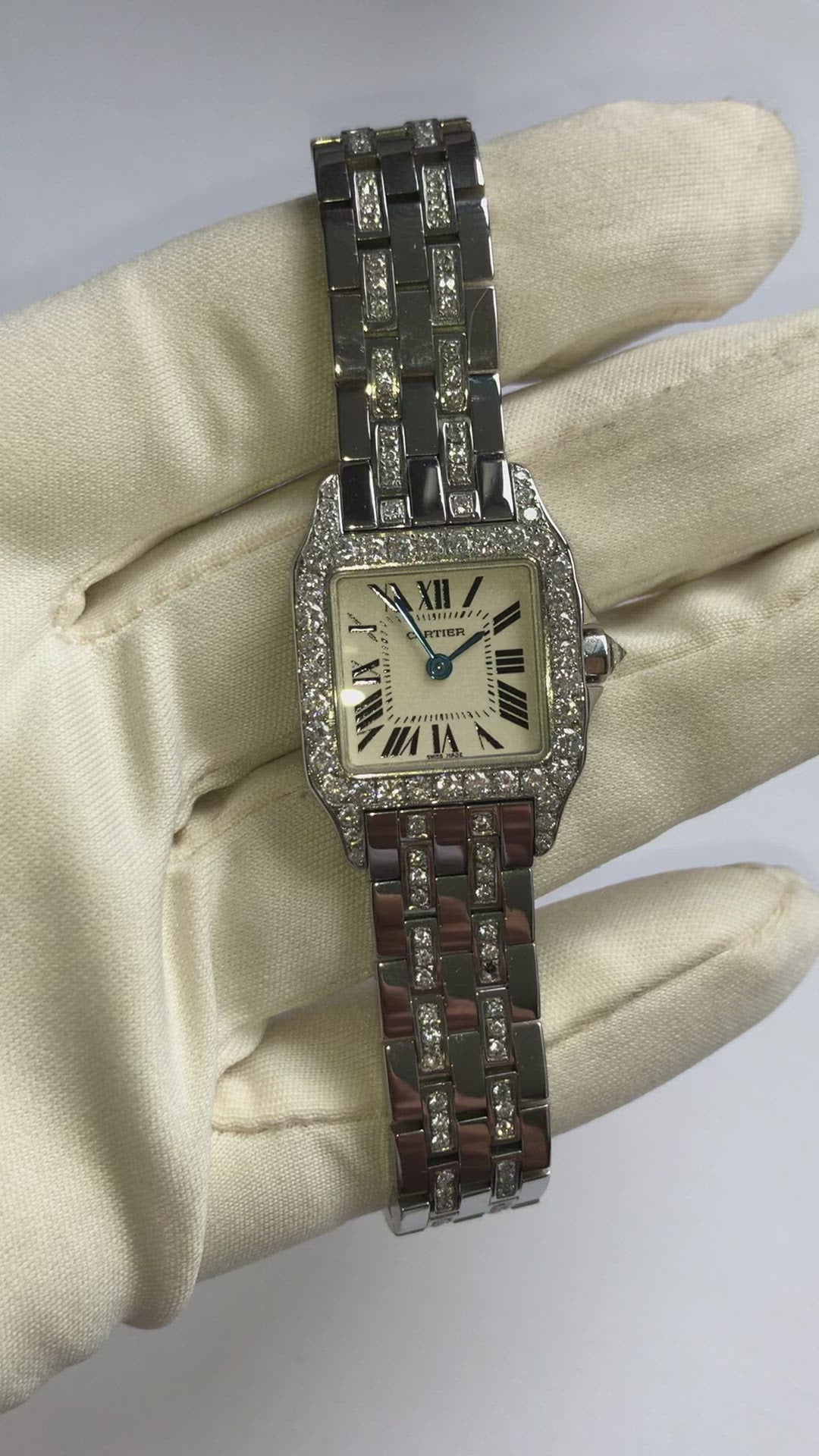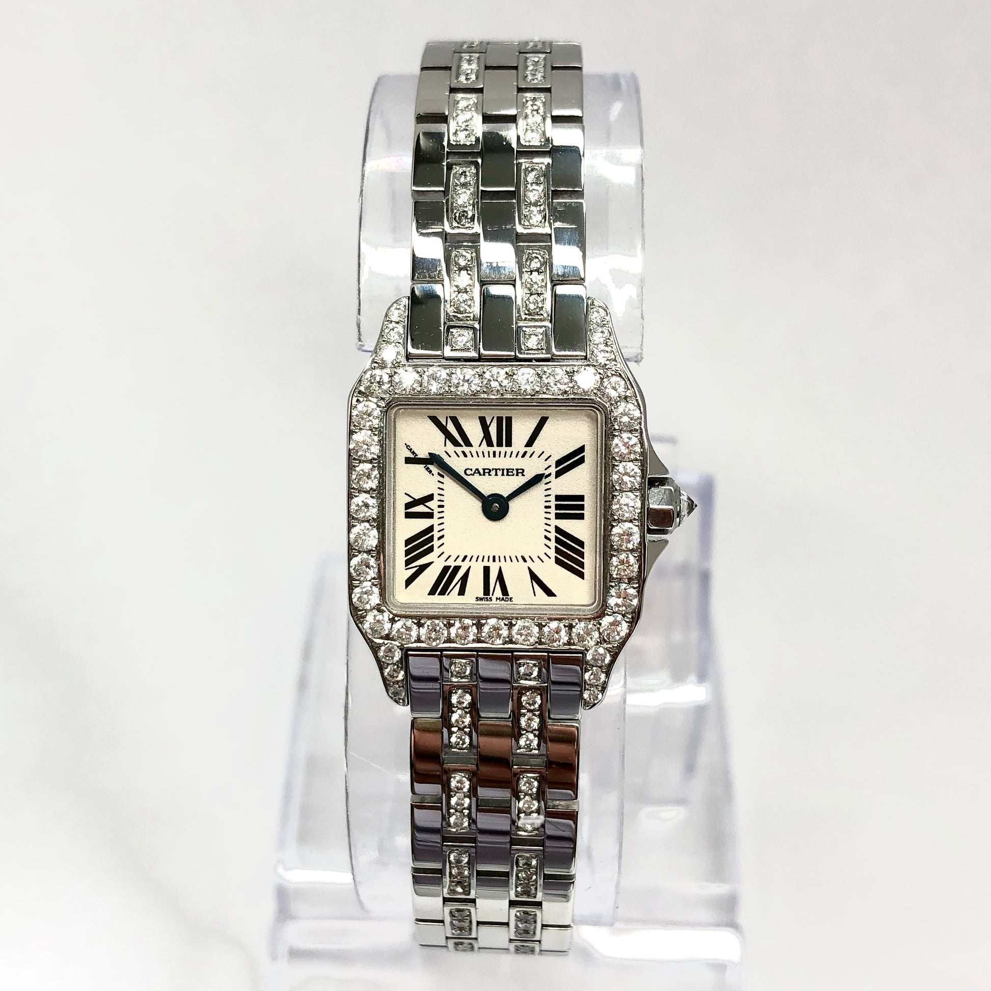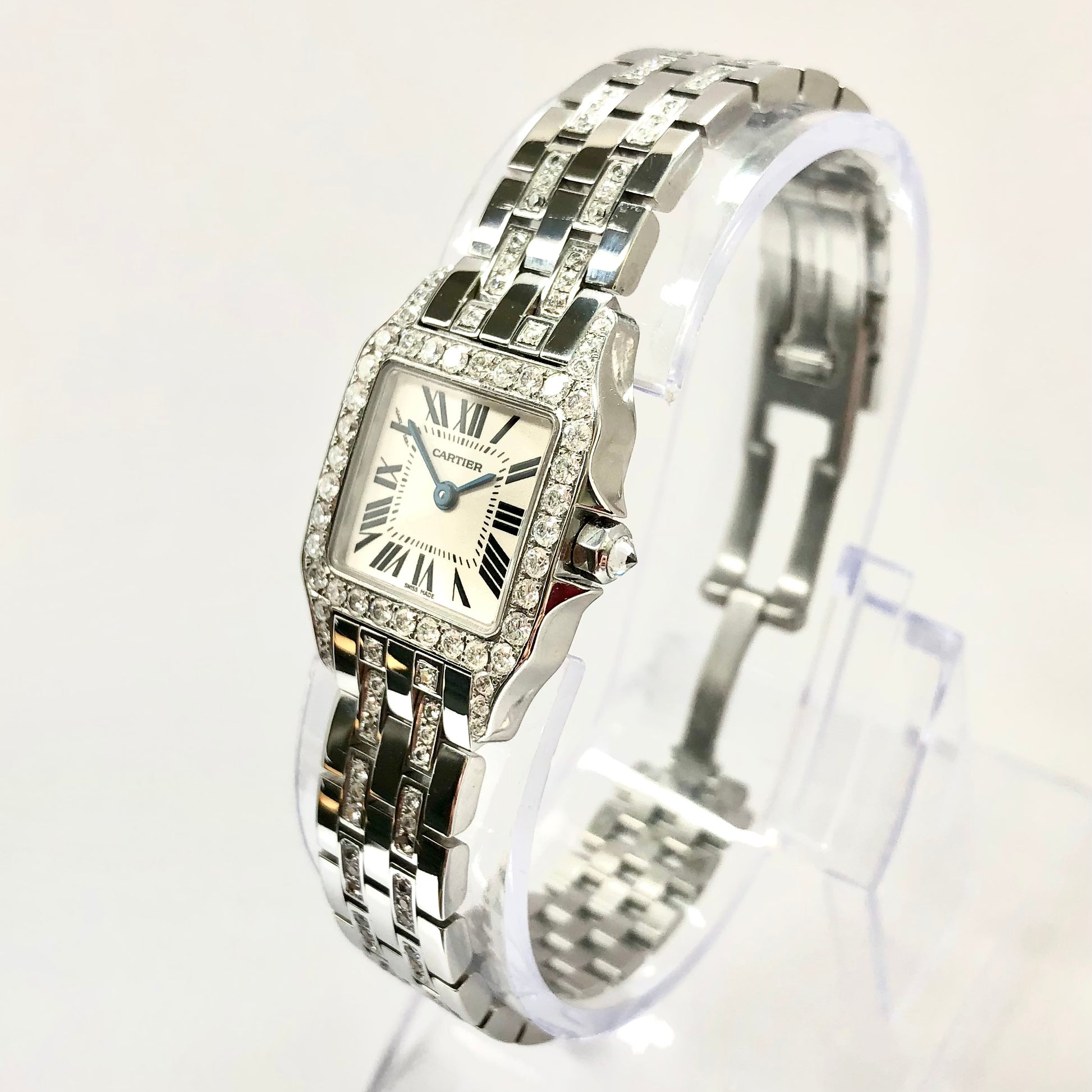 Authentic Pre Owned CARTIER SANTOS DEMOISELLE Quartz 20mm Steel 2.25TCW Diamond Watch