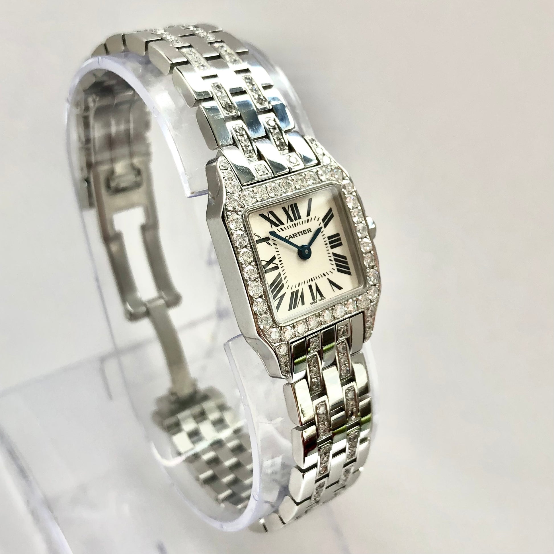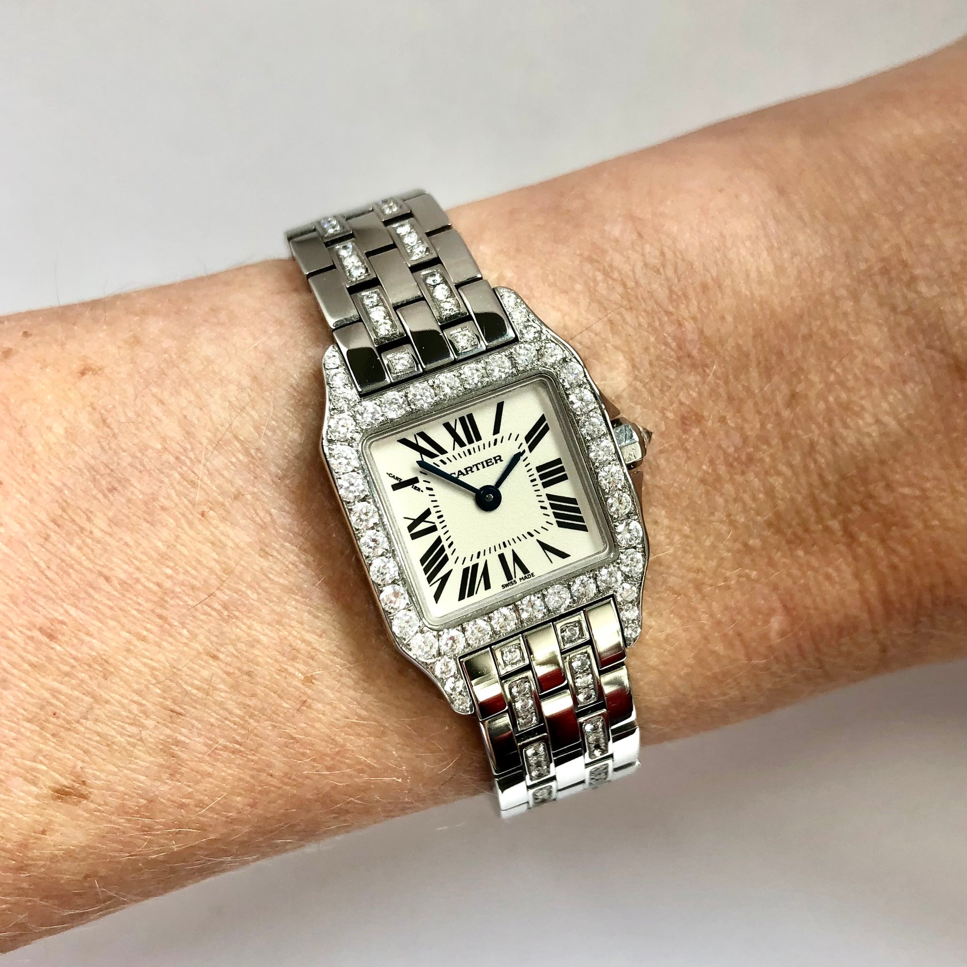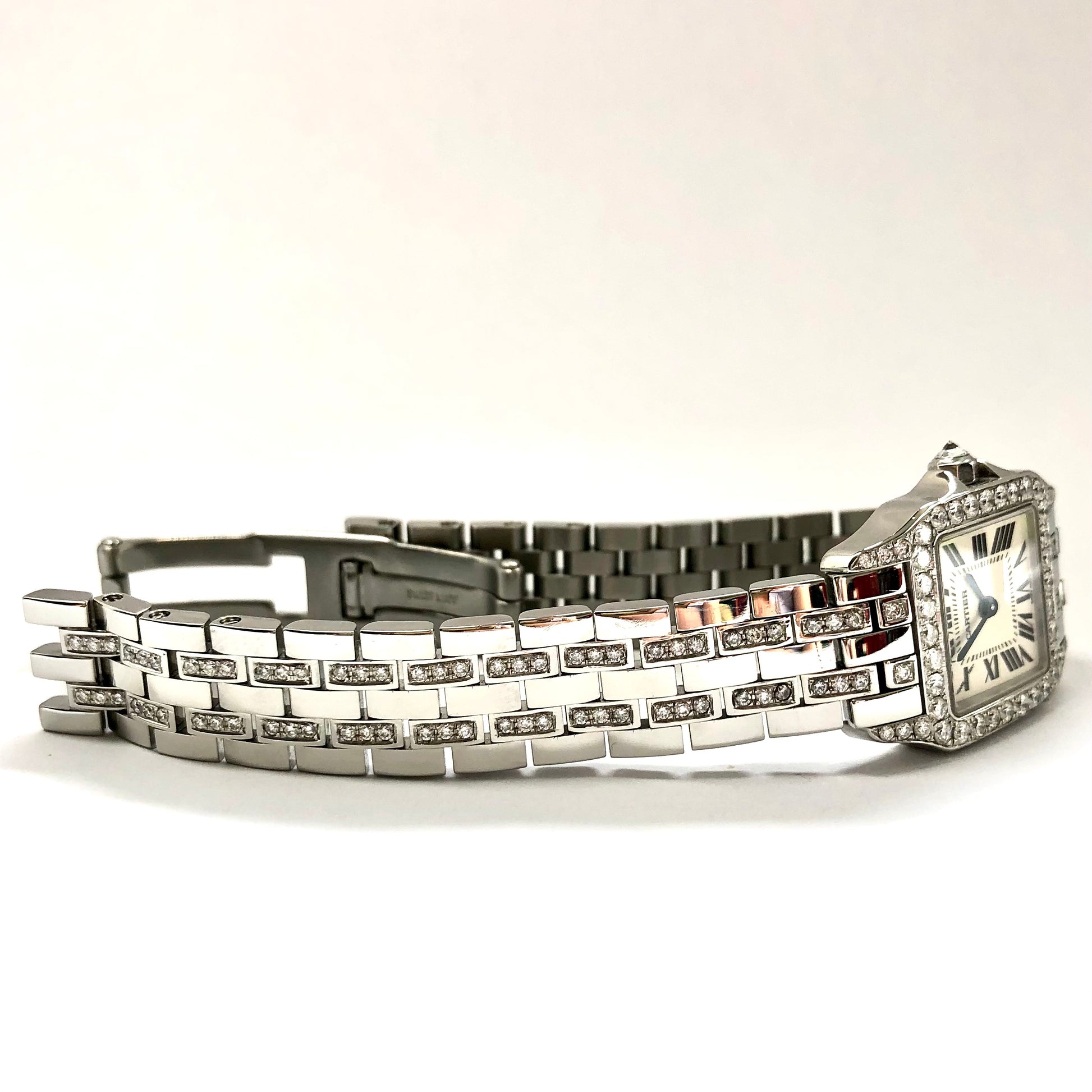 Authentic Pre Owned CARTIER SANTOS DEMOISELLE Quartz 20mm Steel 2.25TCW Diamond Watch