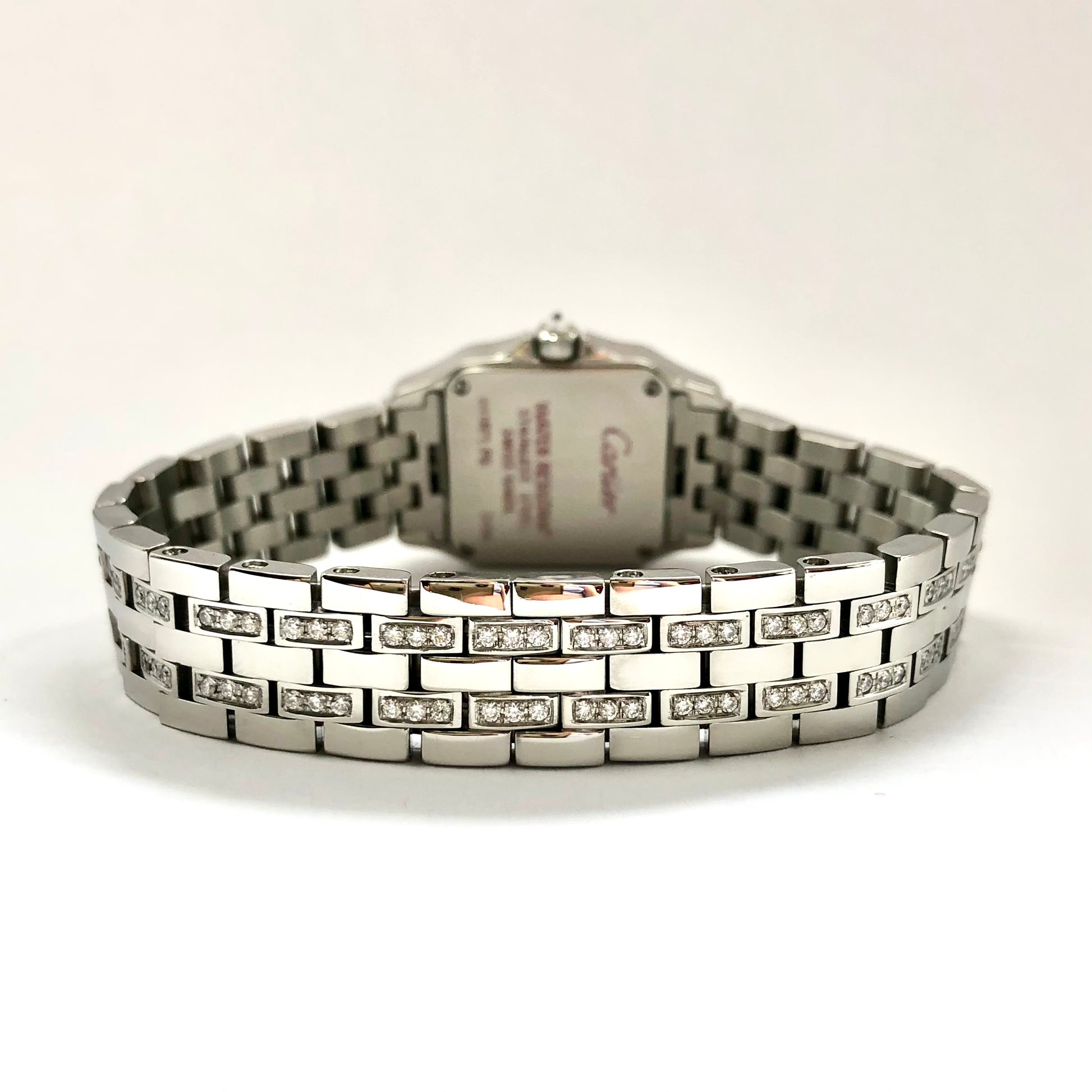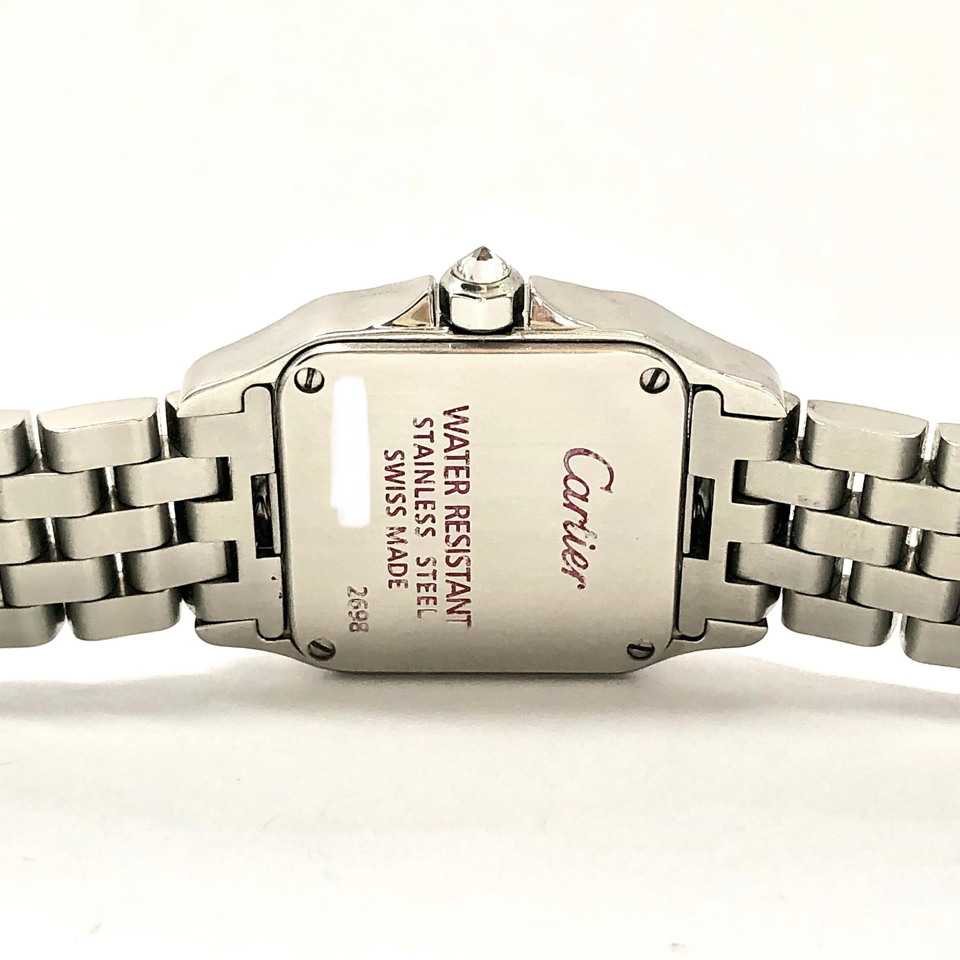 Case: Stainless Steel stamped Cartier, Water Resistant, Stainless Steel, Swiss Made and Serial Numbers.