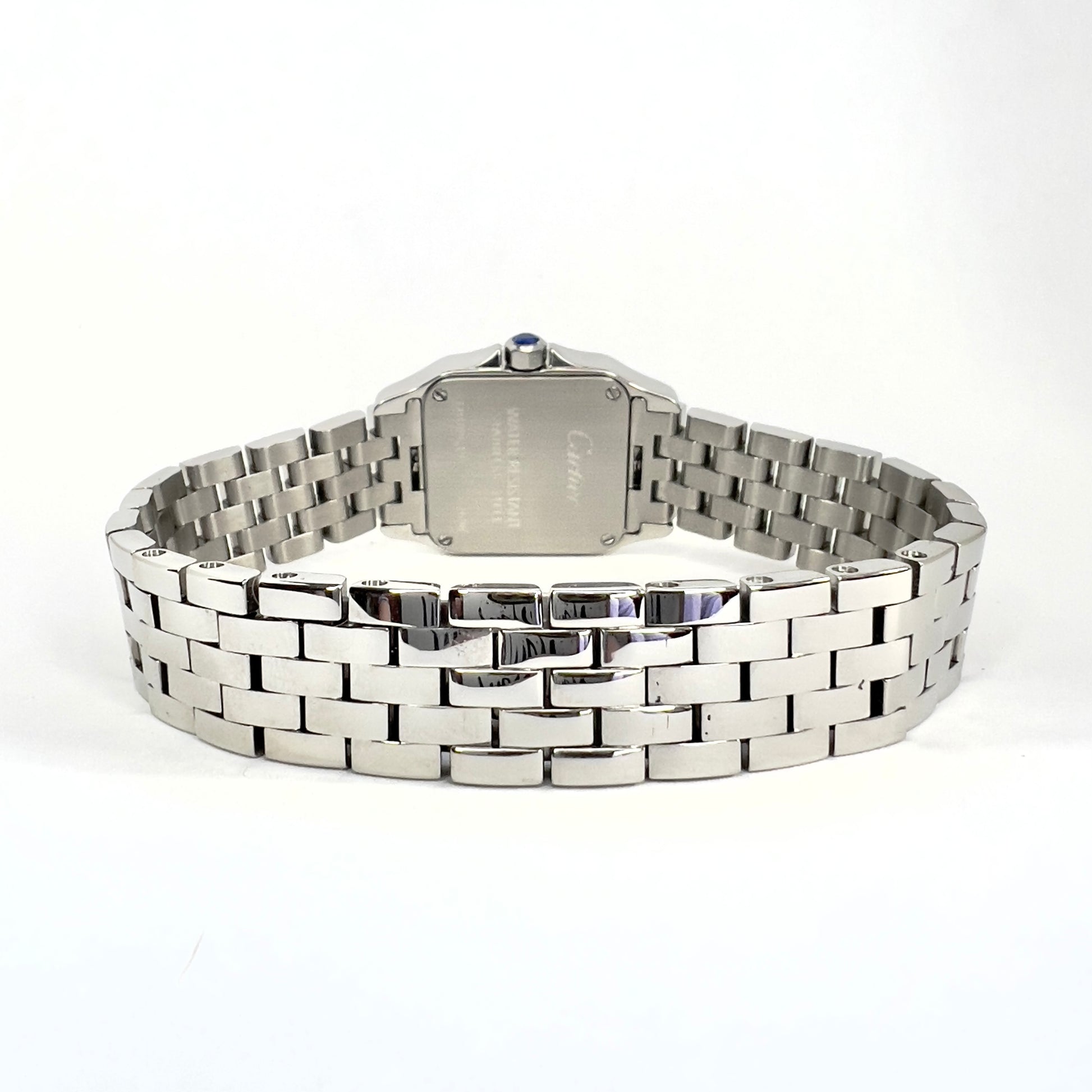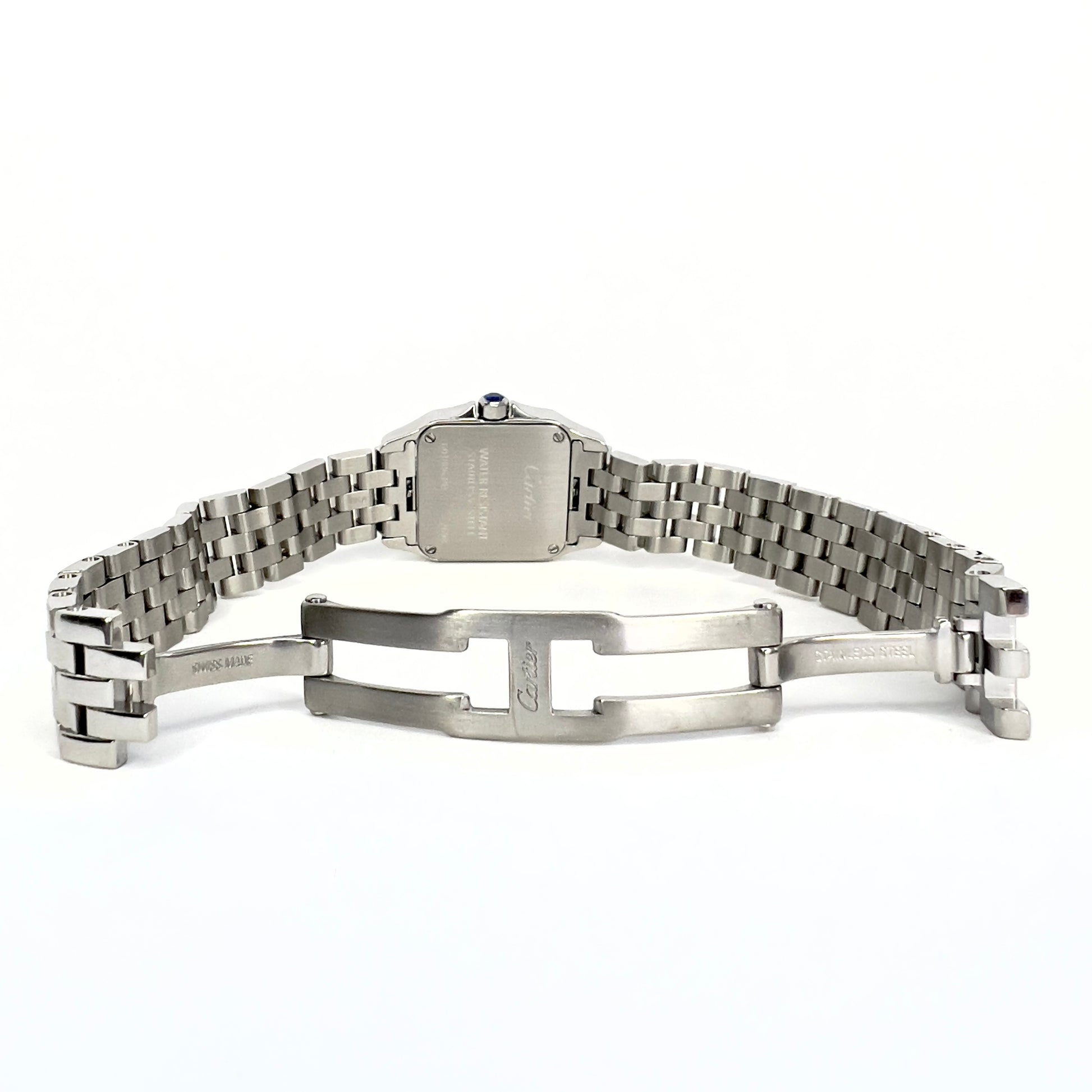 Clasp: Hidden Double Fold stamped Cartier, Stainless Steel, Swiss Made.