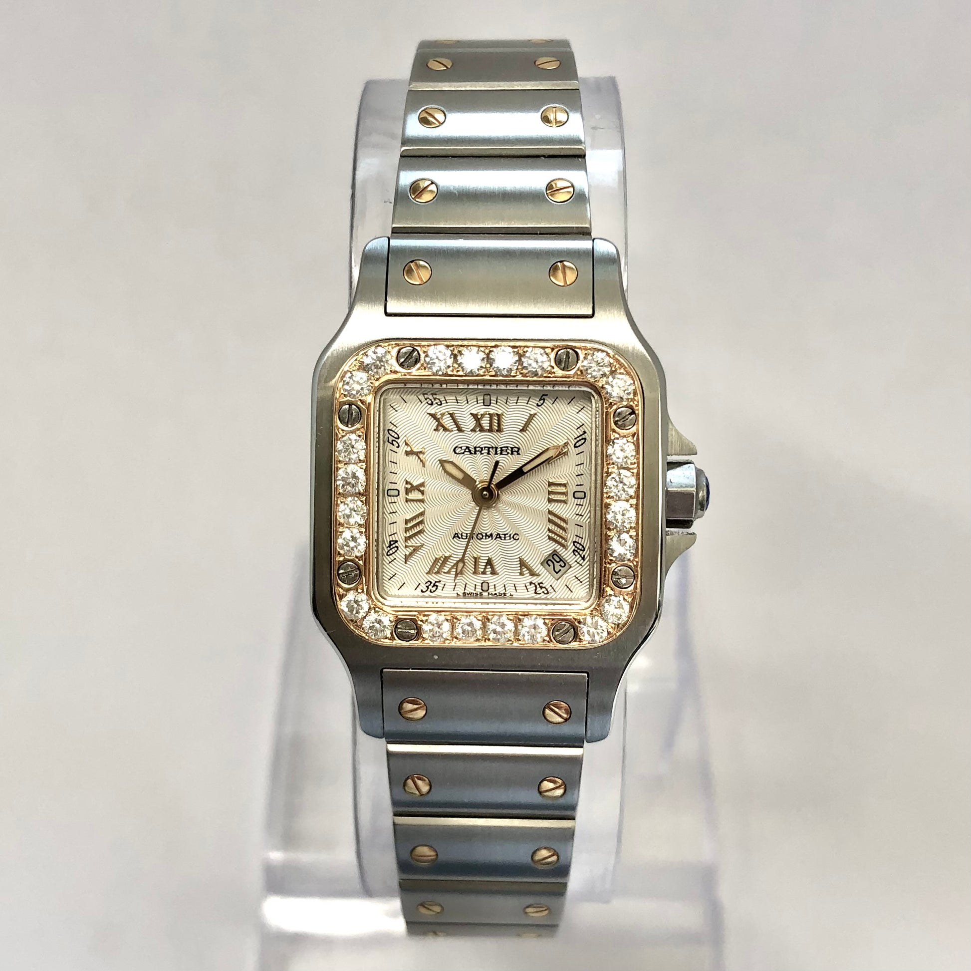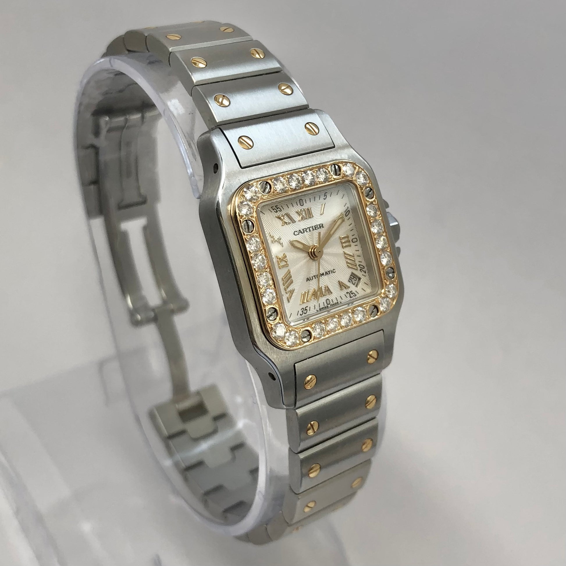 Authentic Pre Owned CARTIER SANTOS GALBEE 24mm Automatic 2 Tone 0.69TCW Diamond Watch NEW Model