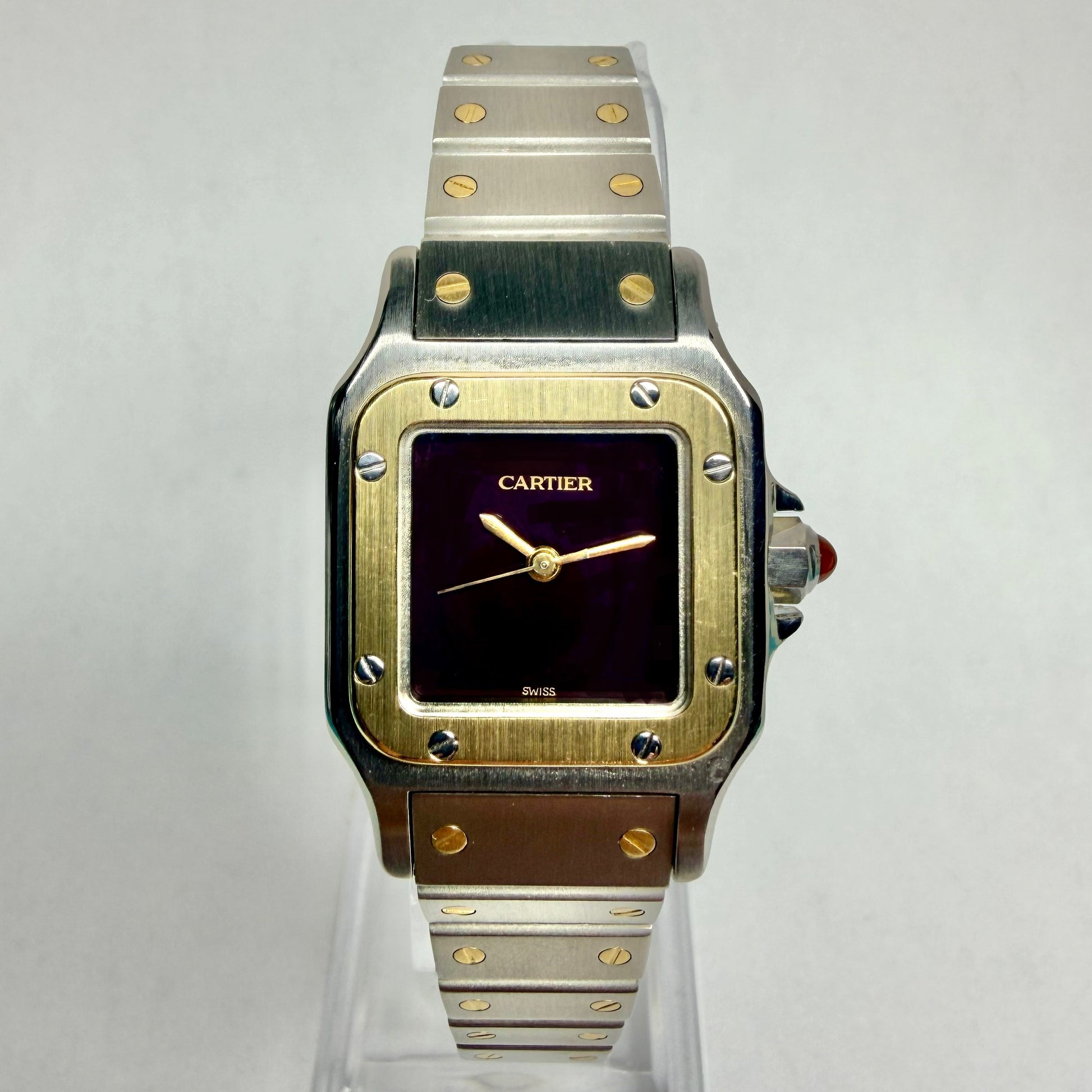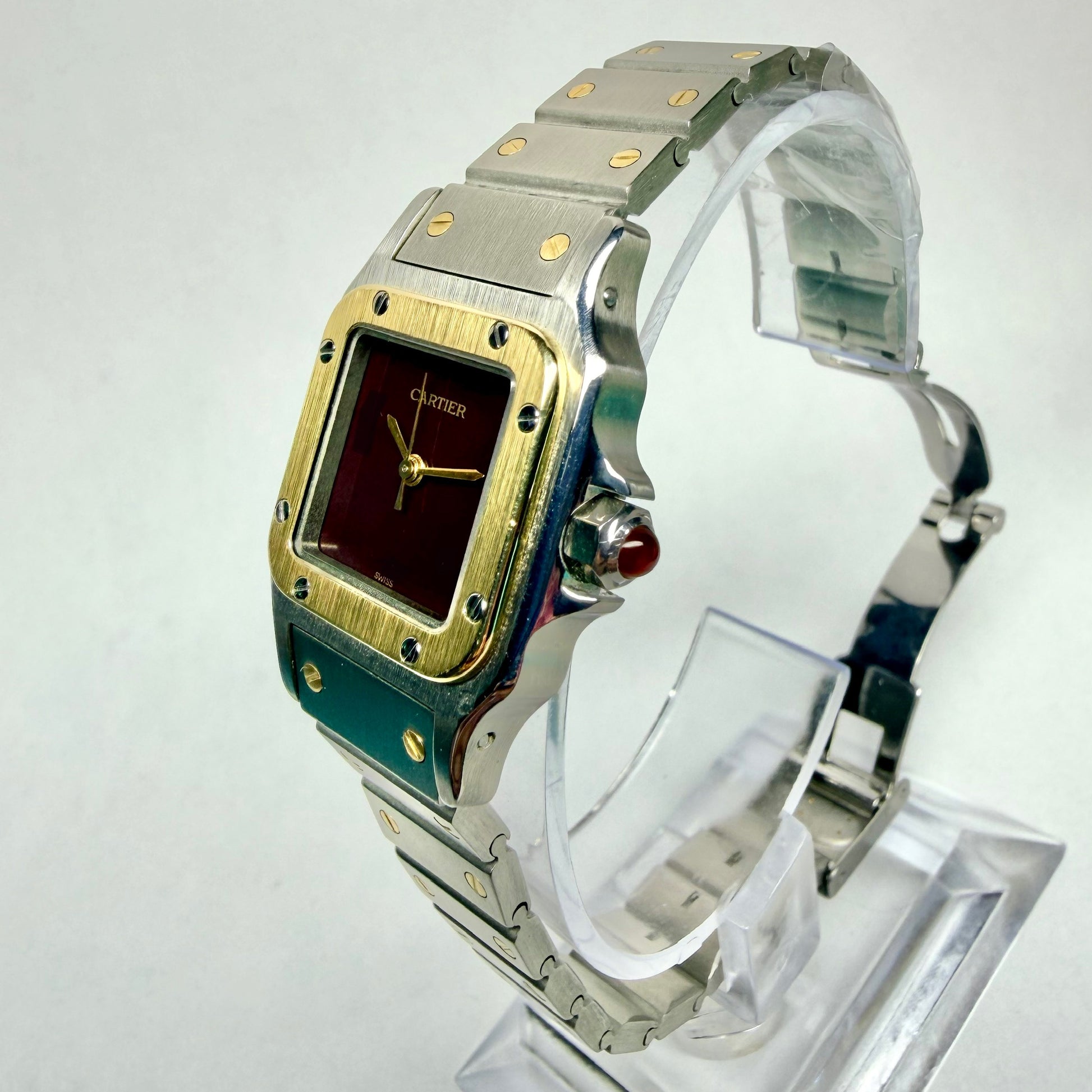 Authentic Pre Owned CARTIER SANTOS GALBEE 24mm Automatic 2 Tone Watch Burgundy Dial
