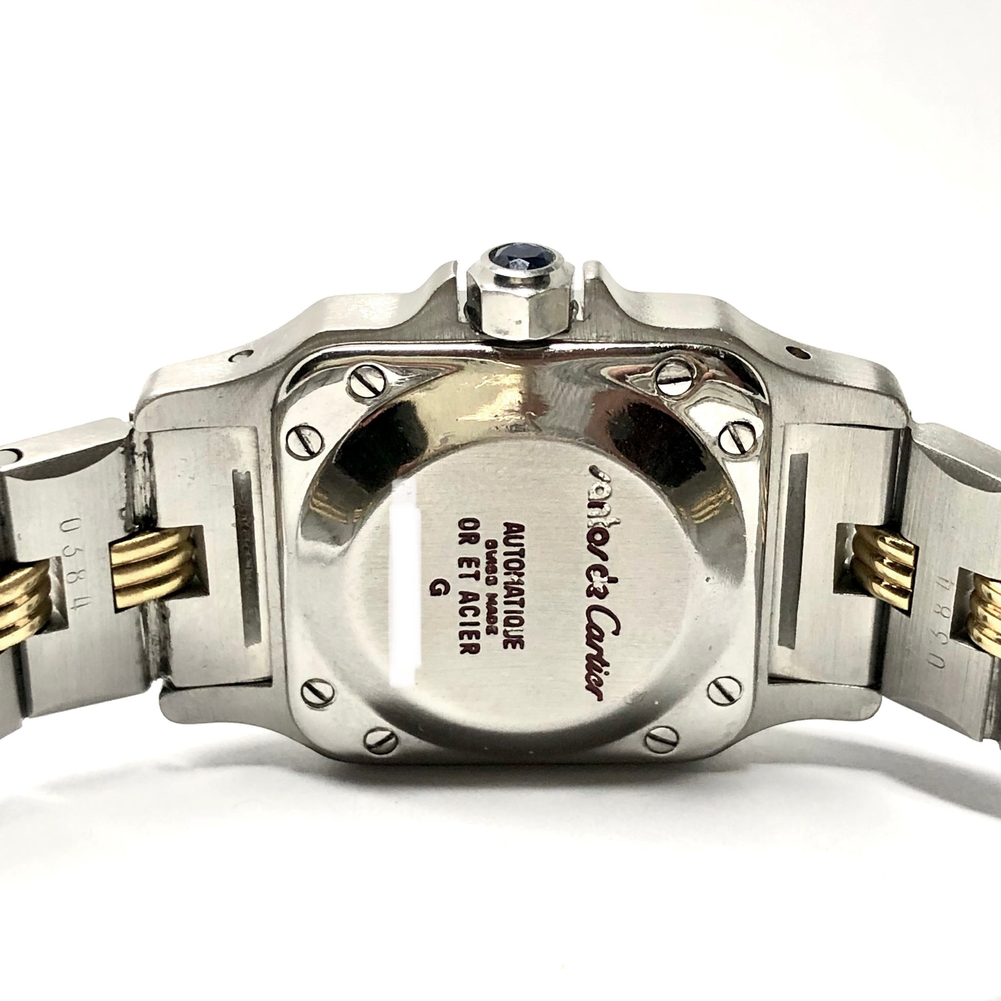 Case: Brushed Stainless Steel hallmarked ‘Cartier’ and stamped ‘Santos de Cartier’, ‘Automatique', ‘Swiss Made’, ‘Or Et Acier’ and Serial Number
