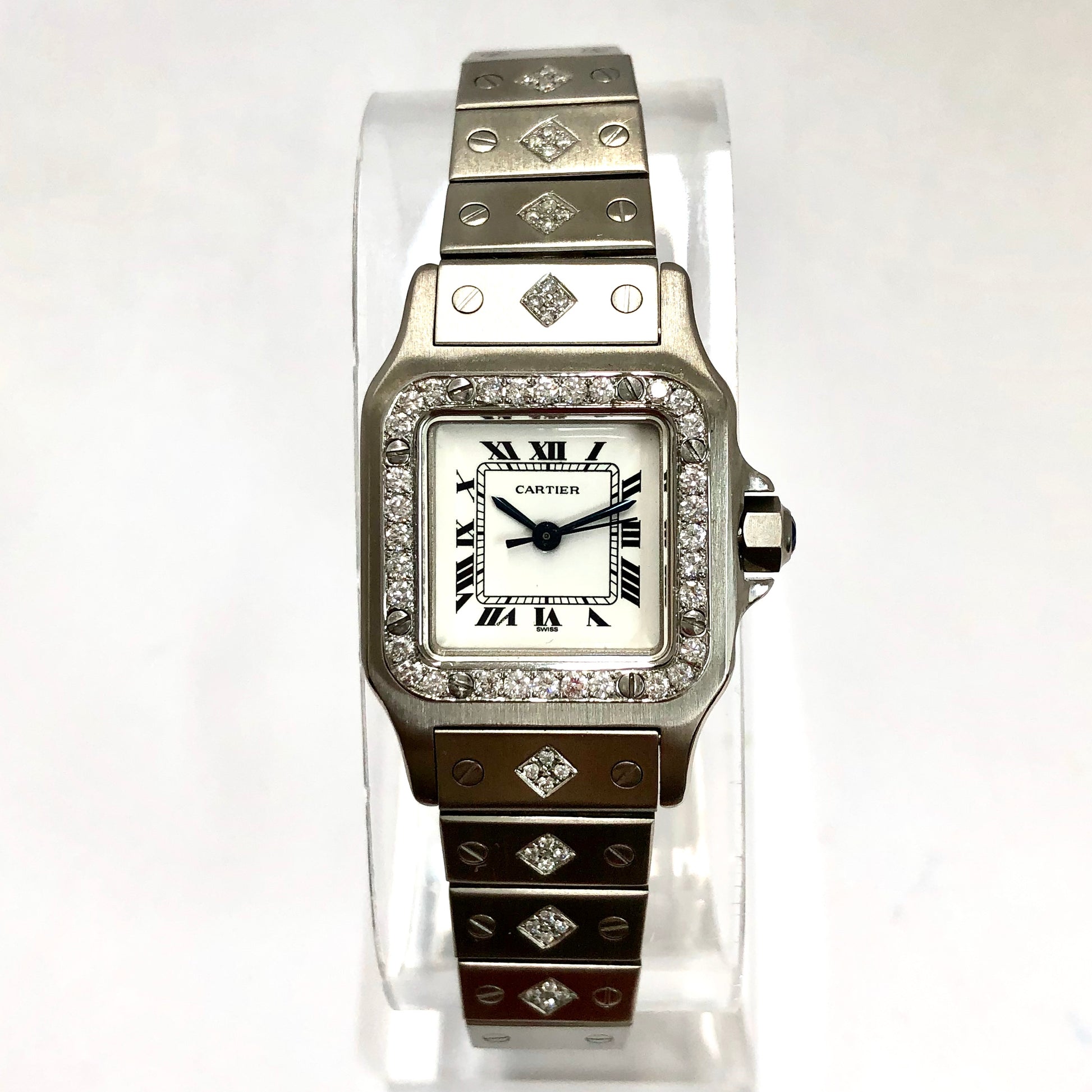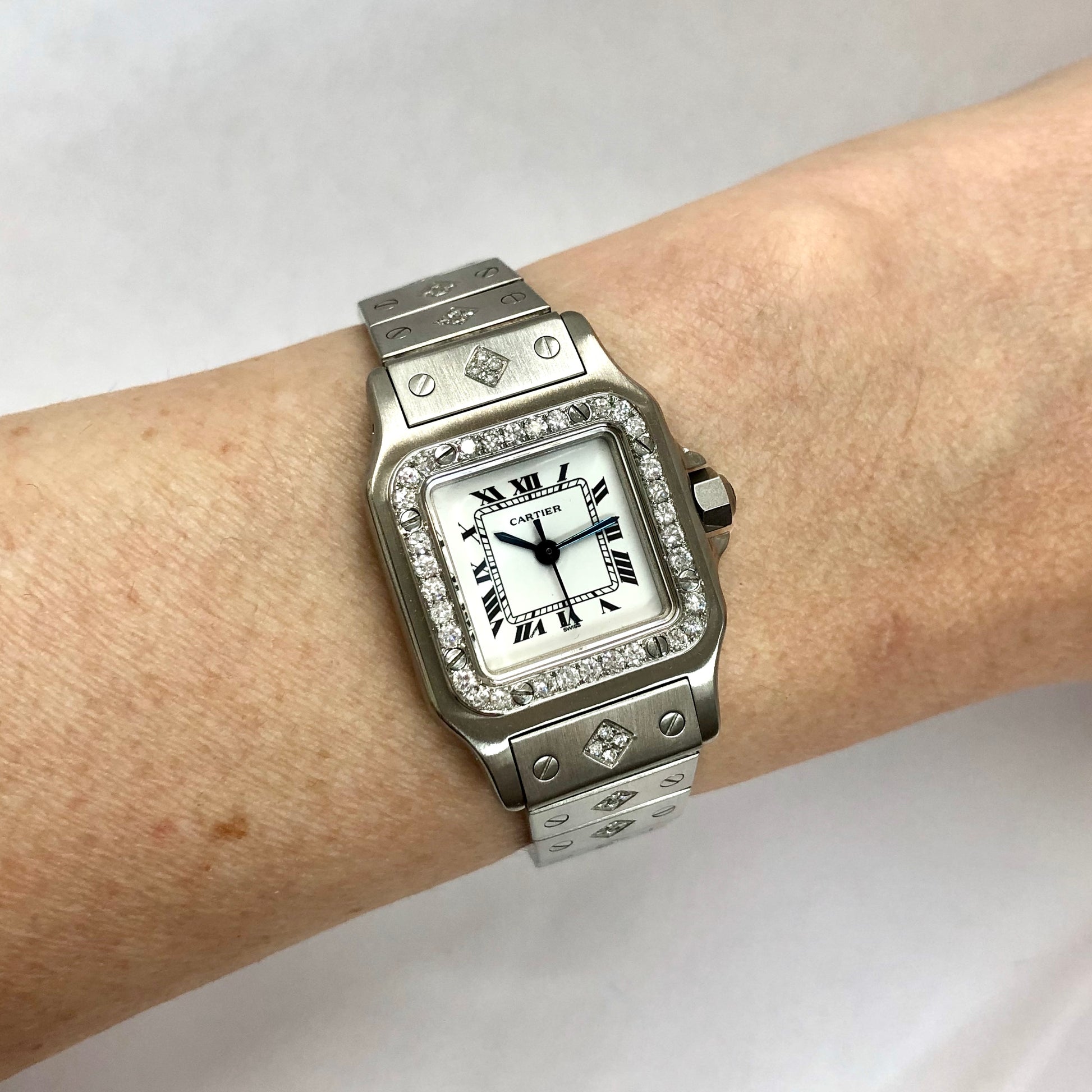 Authentic Pre Owned CARTIER SANTOS GALBEE 24mm Automatic Steel ~1.5TCW Diamond Watch