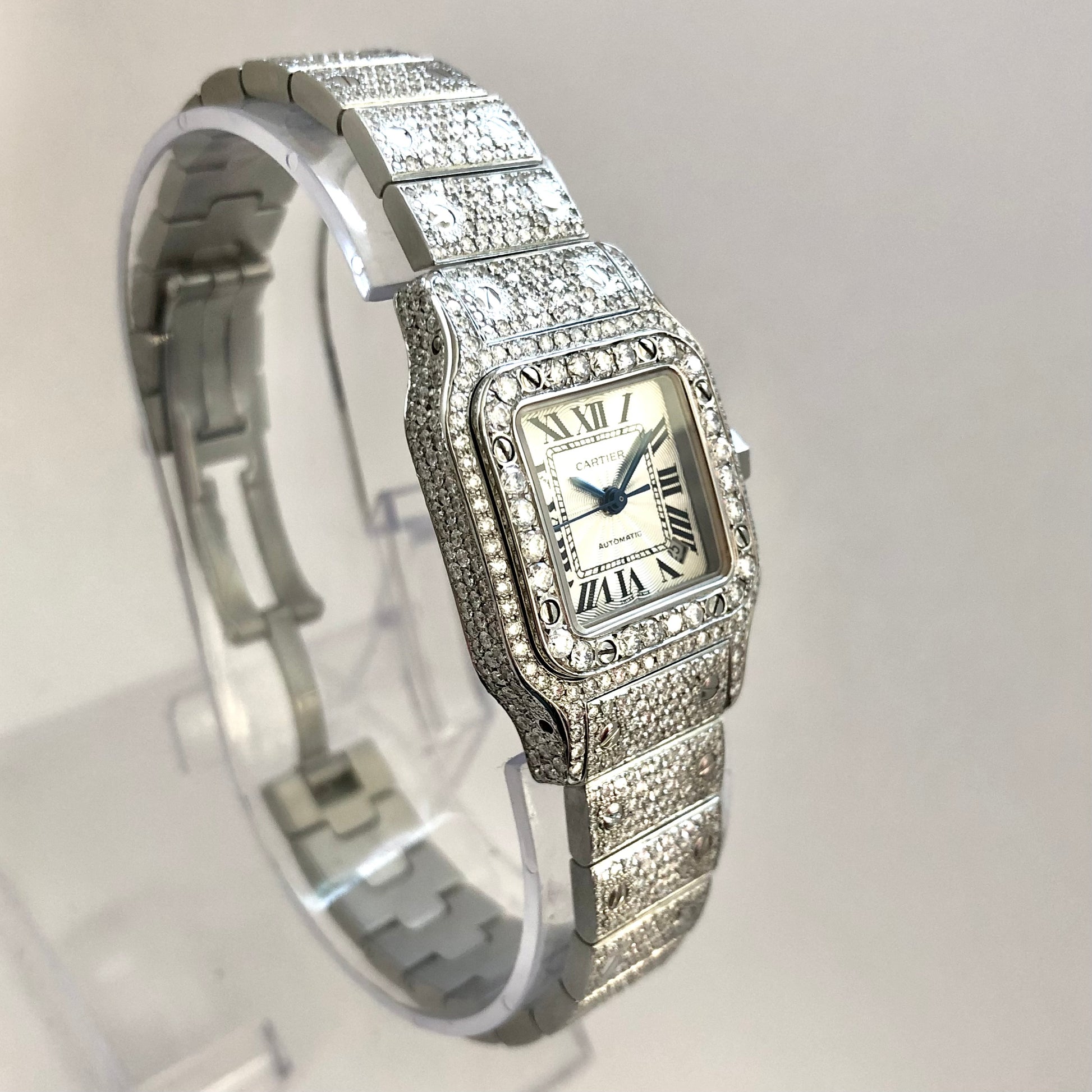 Authentic Pre Owned CARTIER SANTOS GALBEE 24mm Automatic Steel Diamond Watch ~8TCW NEW Model