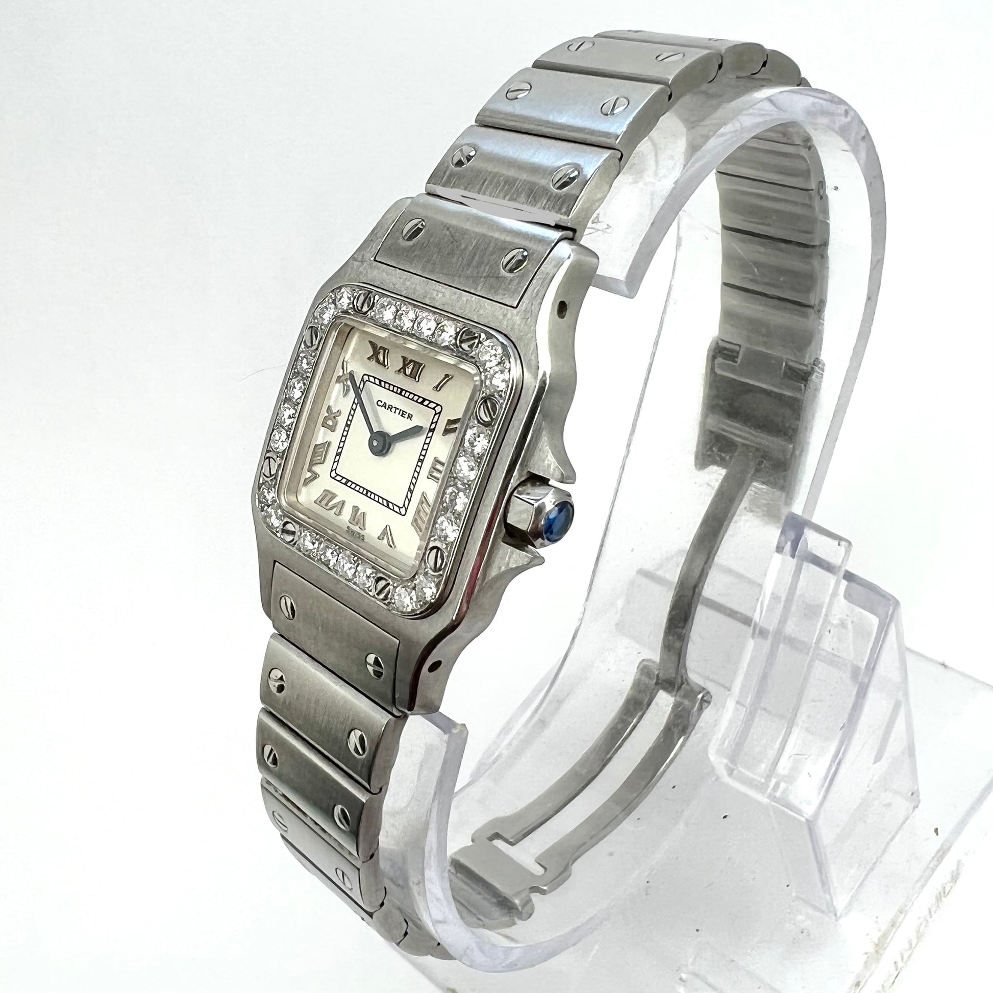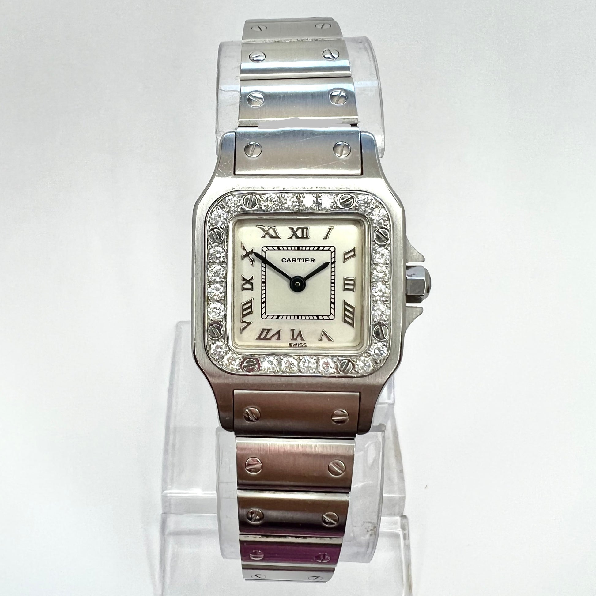 Authentic Pre Owned CARTIER Santos Galbee 24mm Quartz Steel 0.69TCW DIAMOND Watch