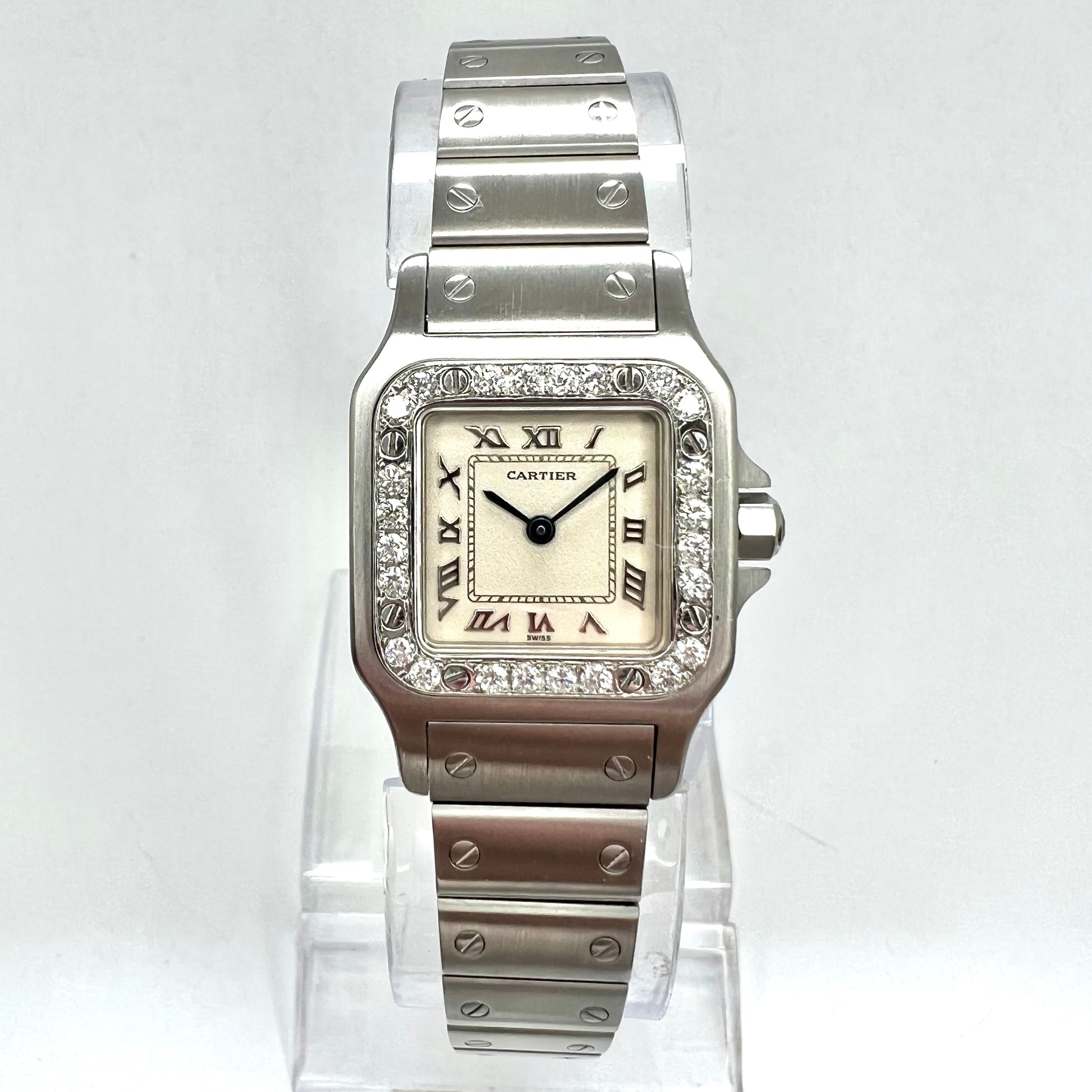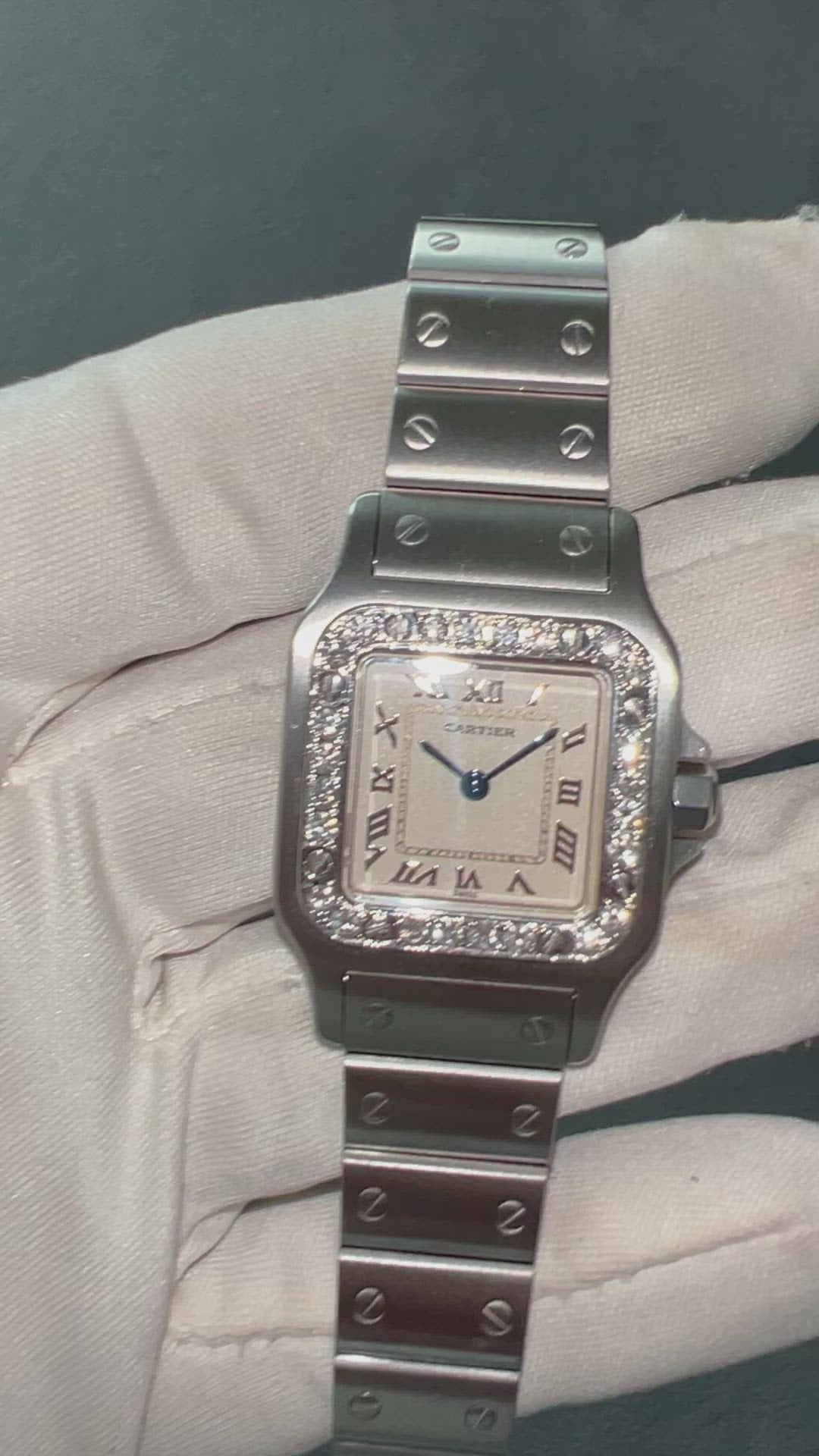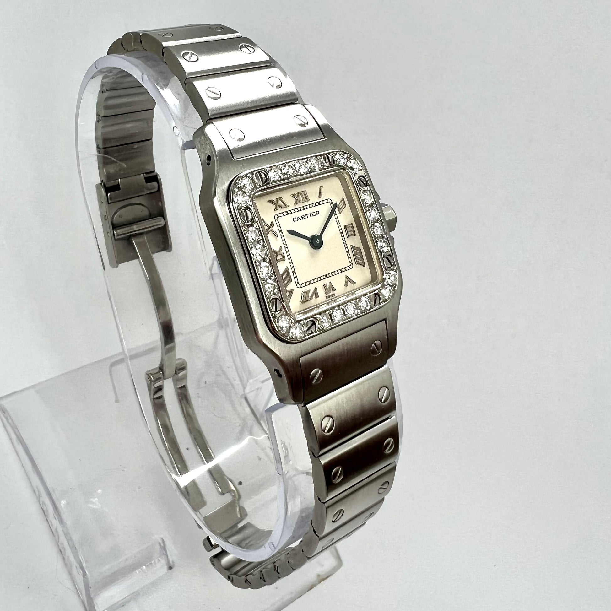 Authentic Pre Owned CARTIER Santos Galbee 24mm Quartz Steel Watch 0.69TCW DIAMOND Bezel