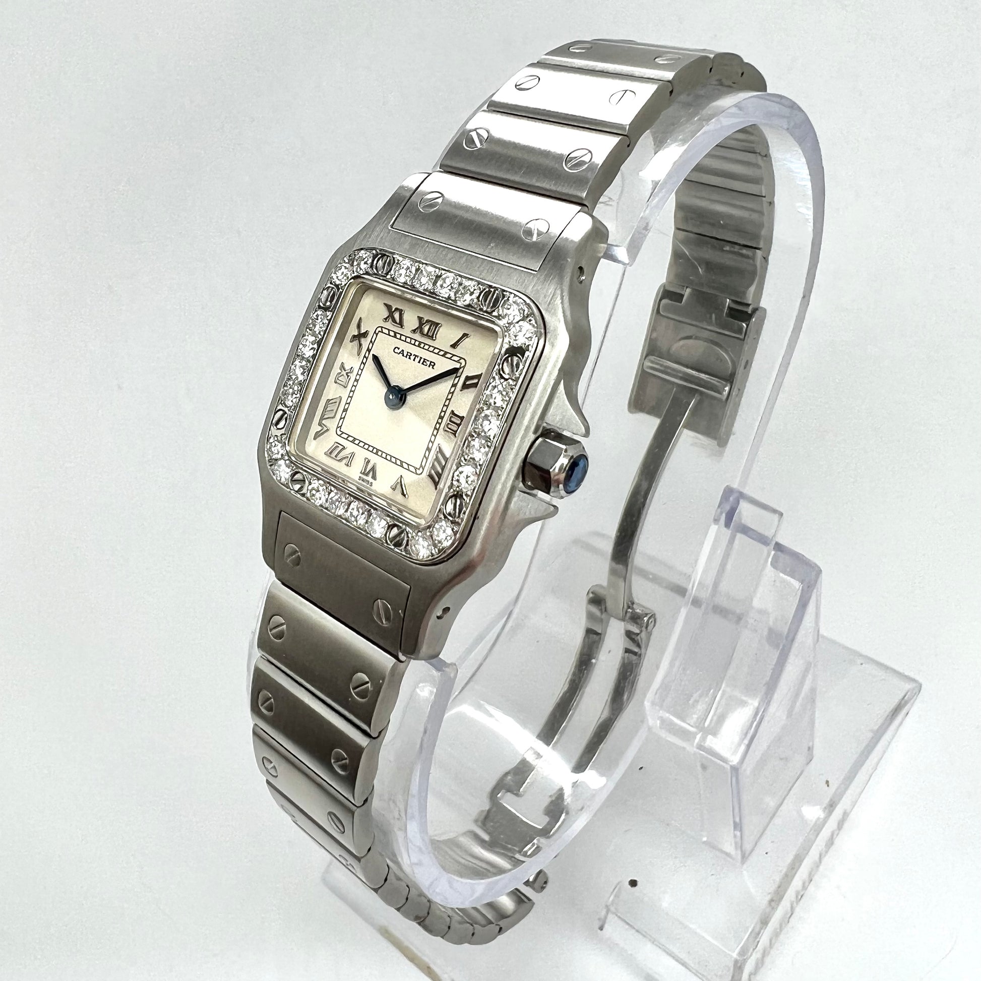 CARTIER Santos Galbee 24mm Quartz Steel Watch 0.69TCW DIAMOND Bezel