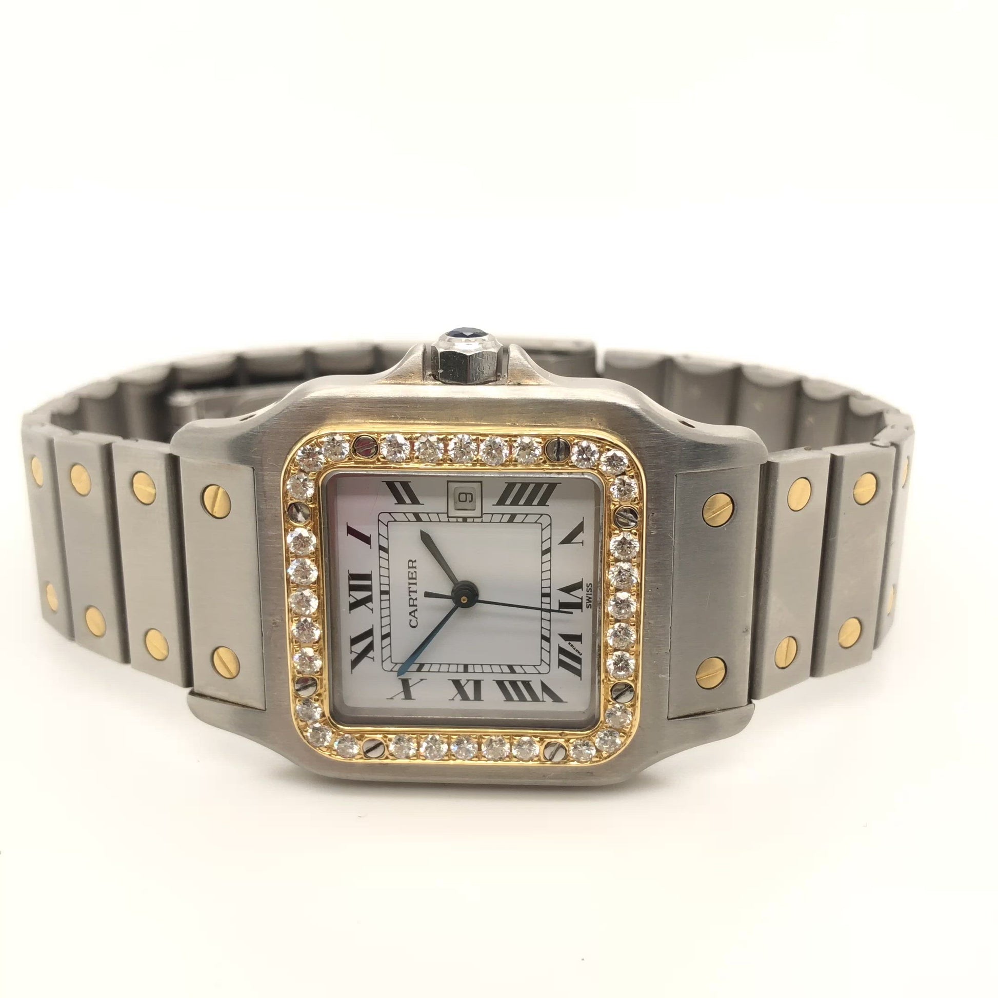 Case: Brushed Stainless Steel hallmarked ‘Santos de Cartier’ and stamped ‘Automatique', 'Swiss Made’, ‘OR ET ACIER' and Serial Number