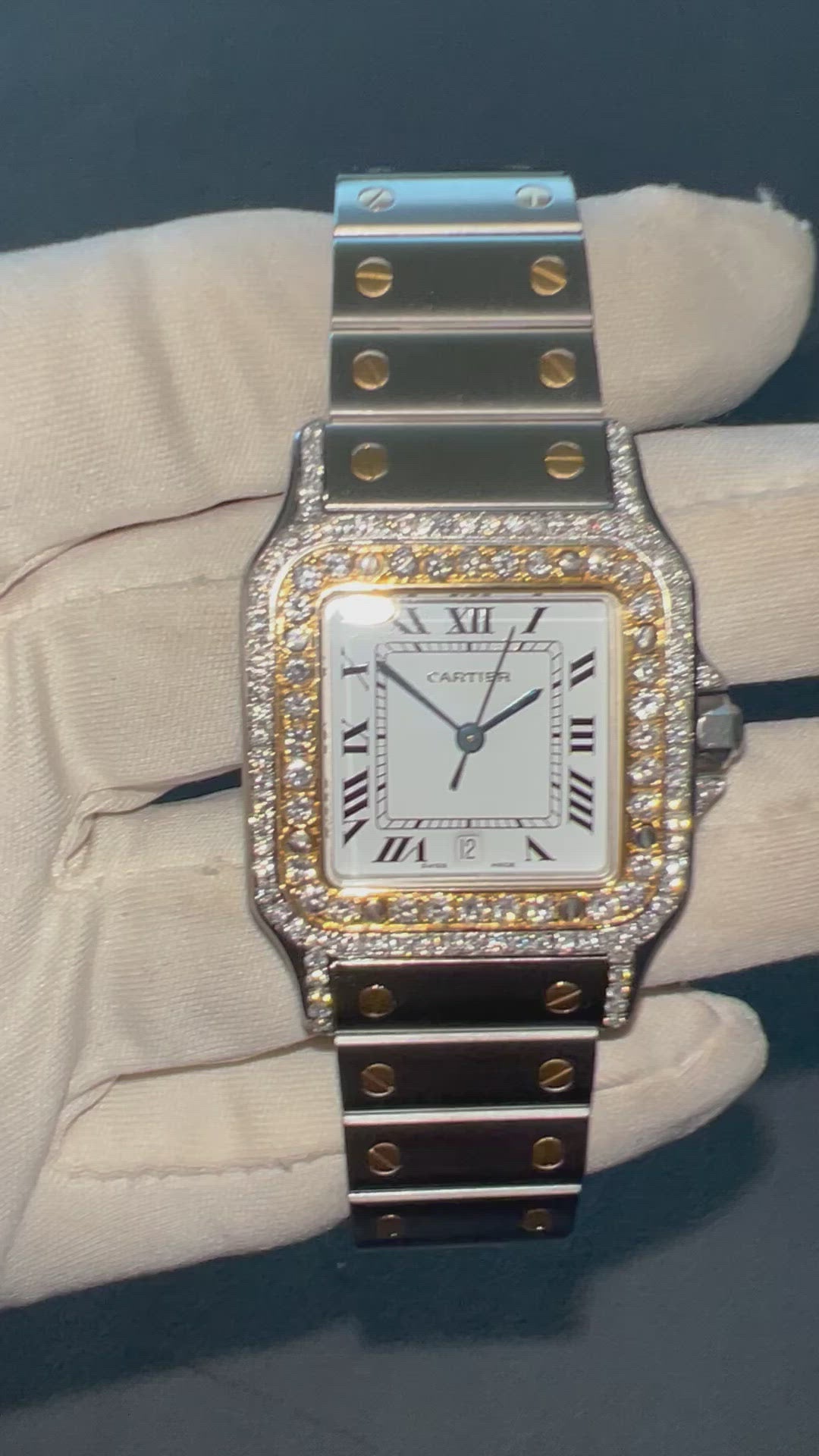 Authentic Pre Owned CARTIER SANTOS GALBEE 29mm Quartz 2 Tone 1.70TCW Diamond Watch NEW Model