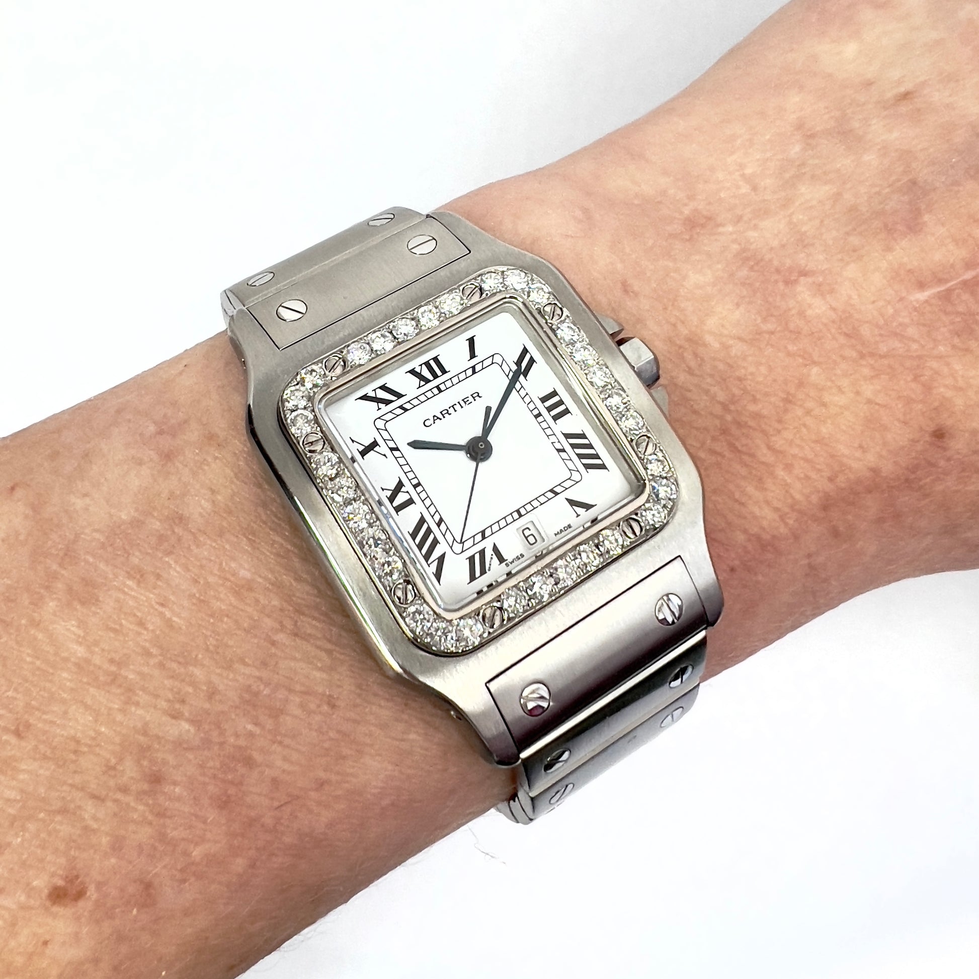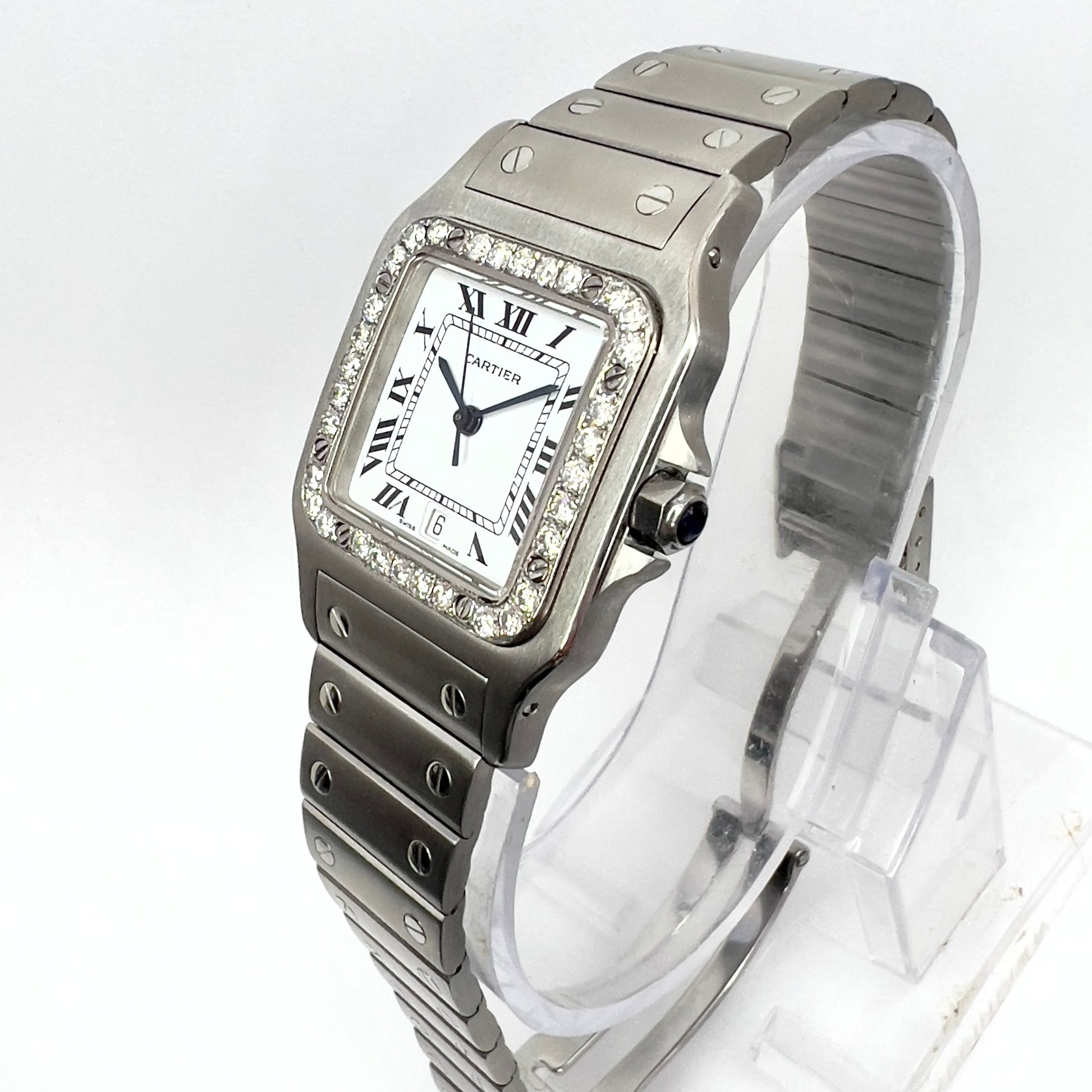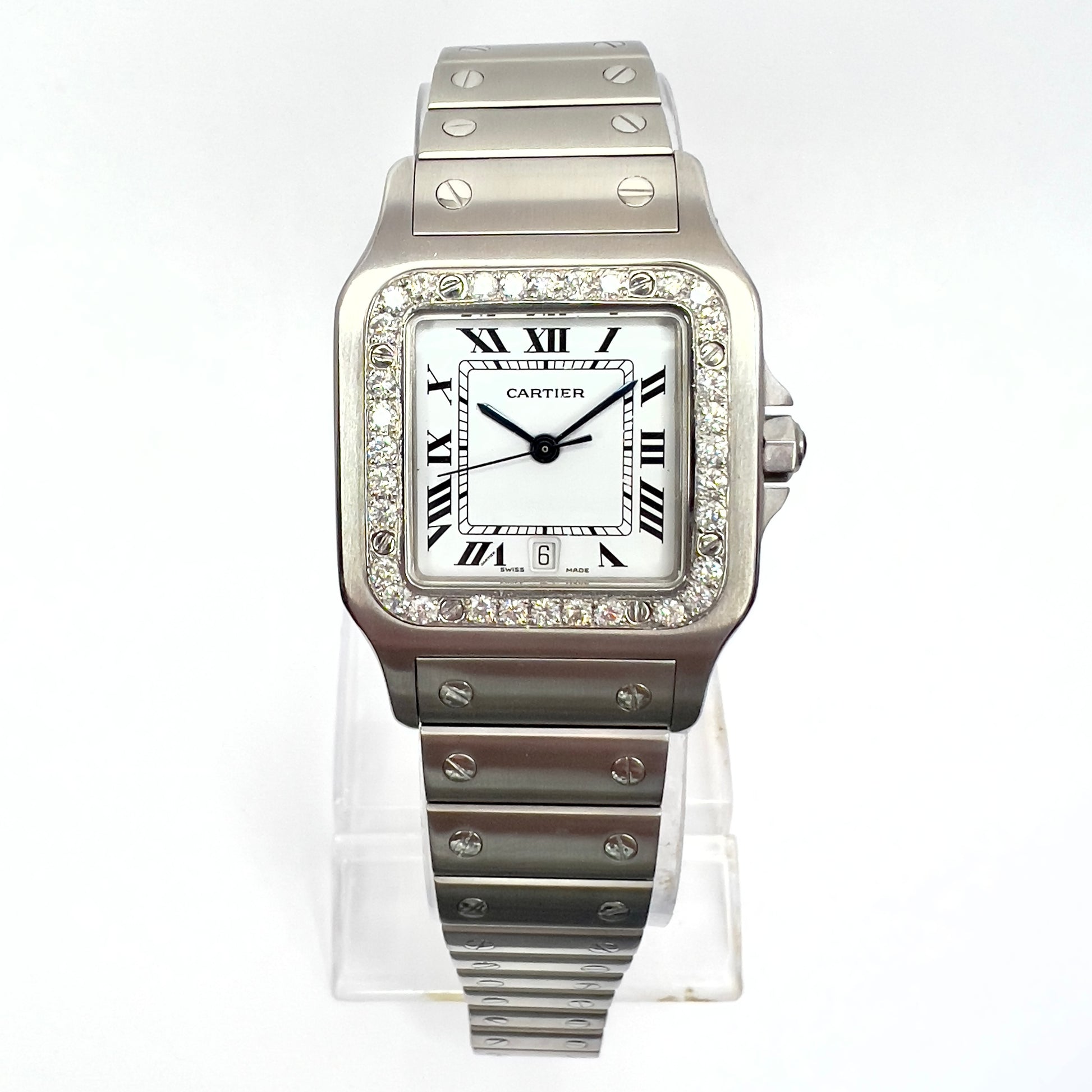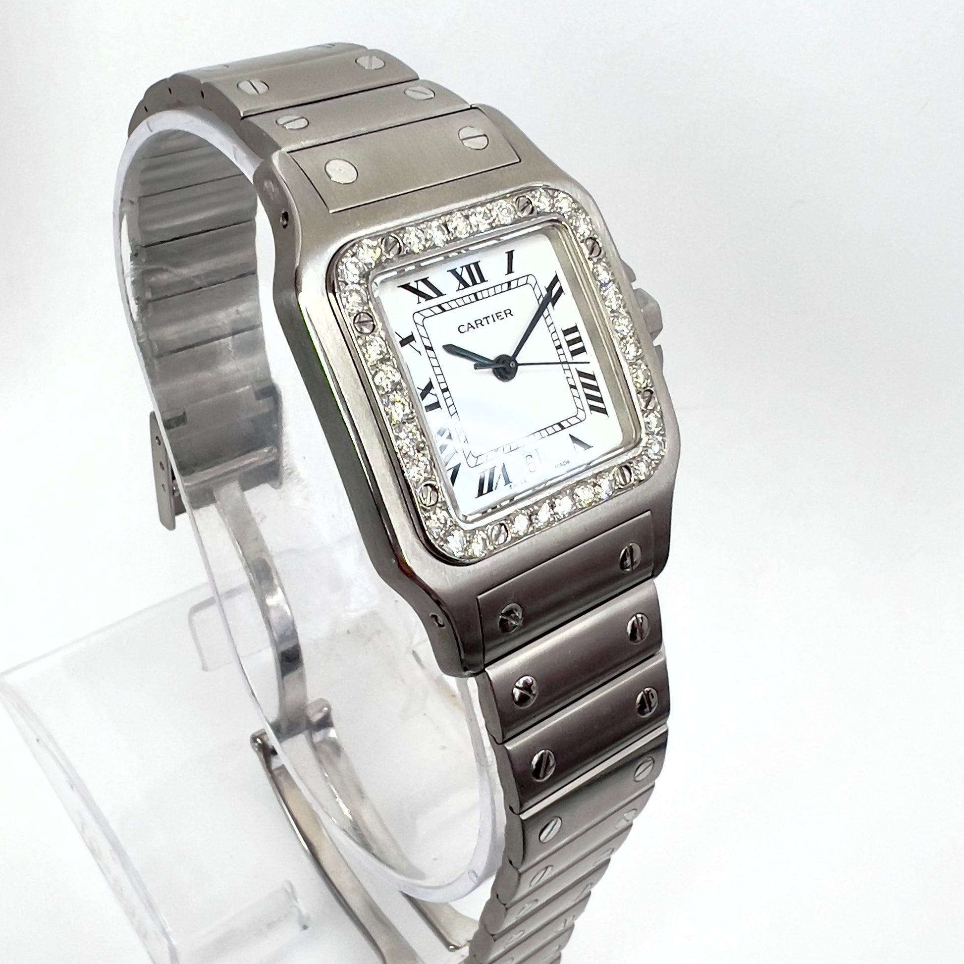 Authentic Pre Owned CARTIER SANTOS GALBEE 29mm Quartz Steel 0.85TCW Diamond Watch