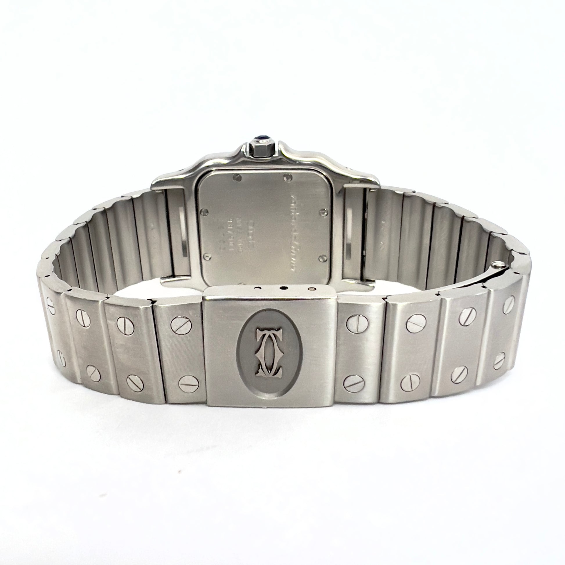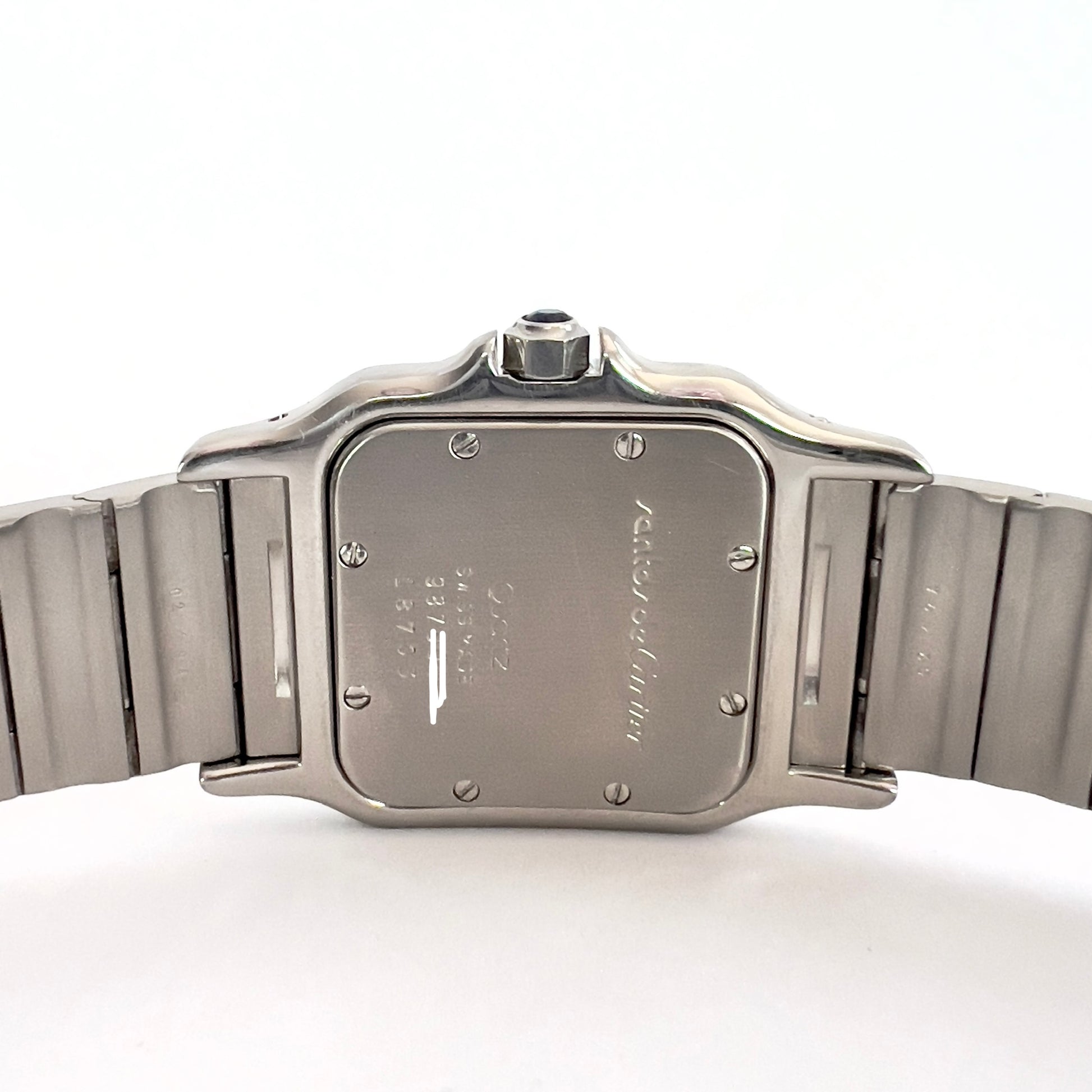 • Case: Brushed Stainless Steel hallmarked ‘Santos de Cartier’ and stamped ‘Quartz', ‘Swiss Made’ and Serial Number.