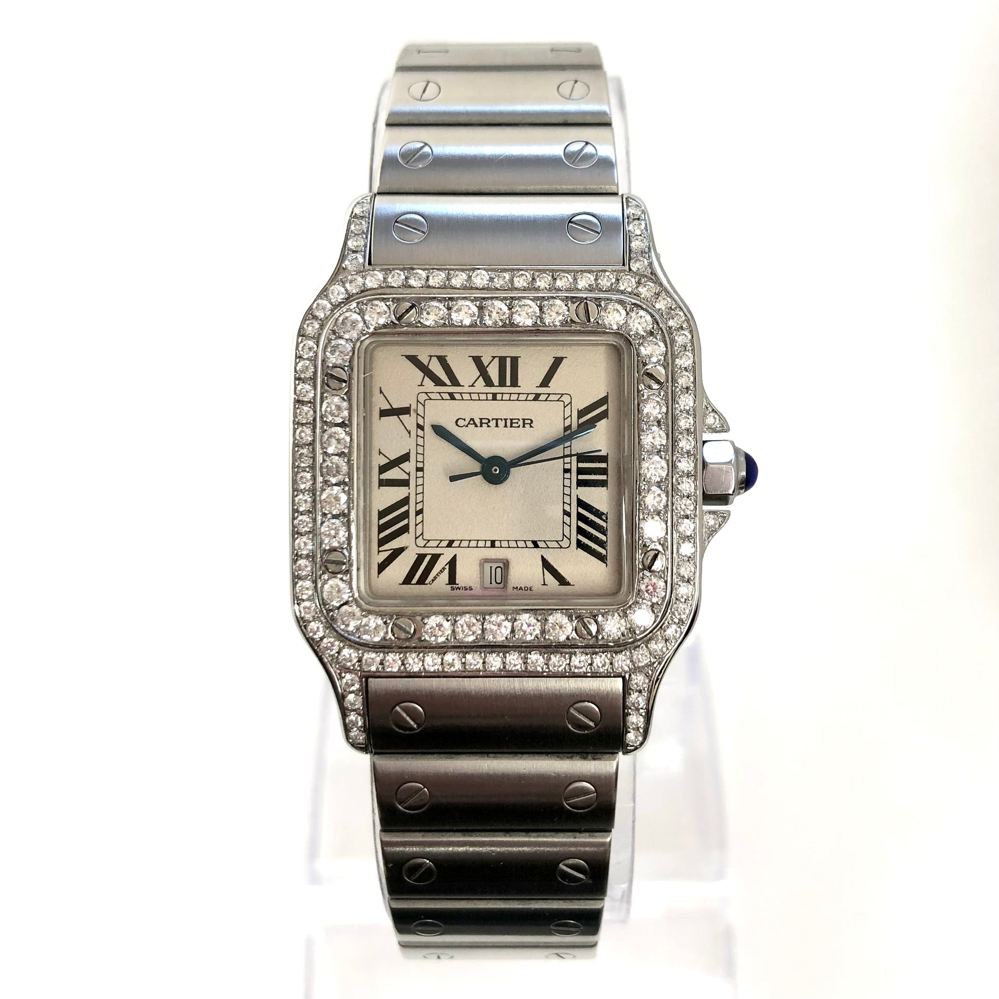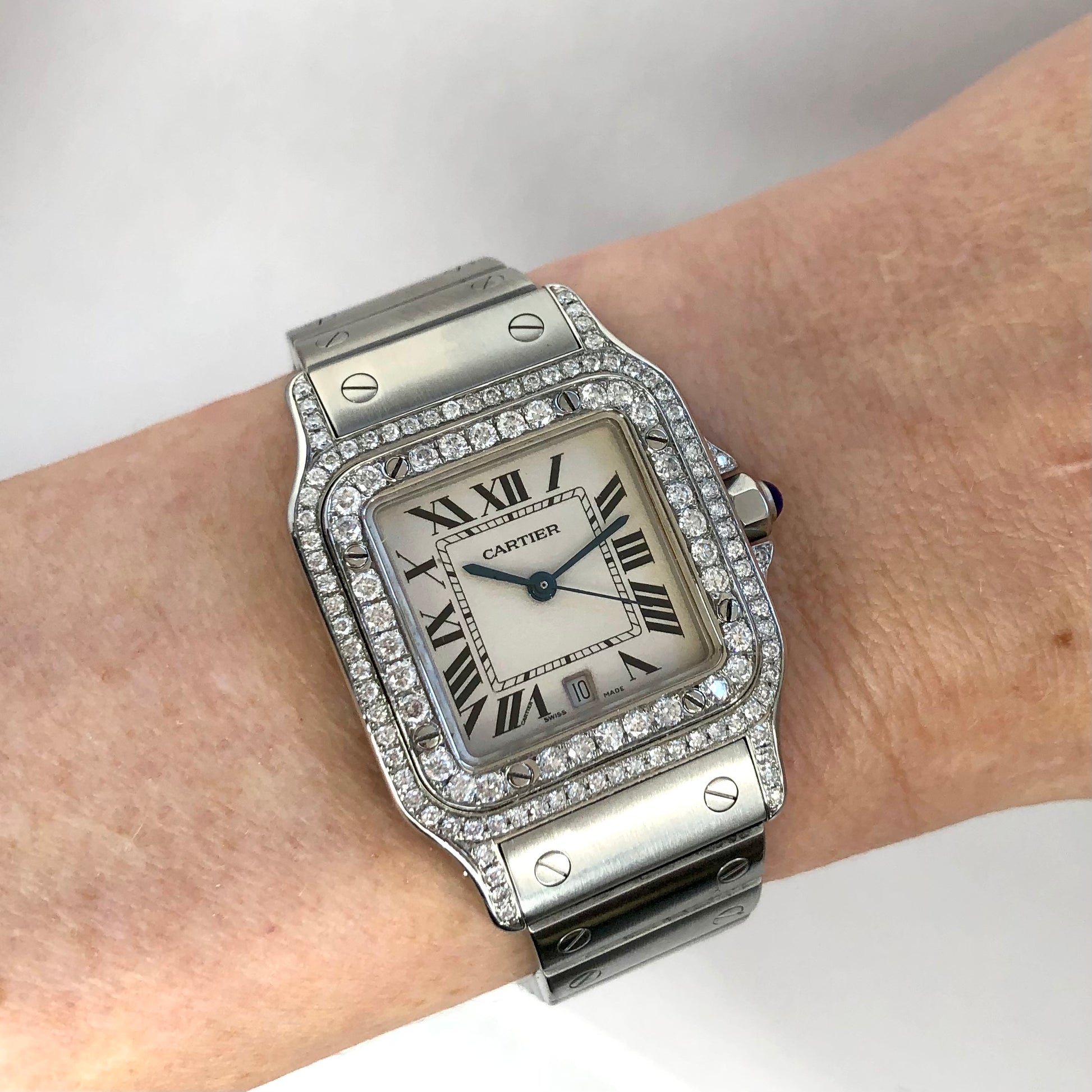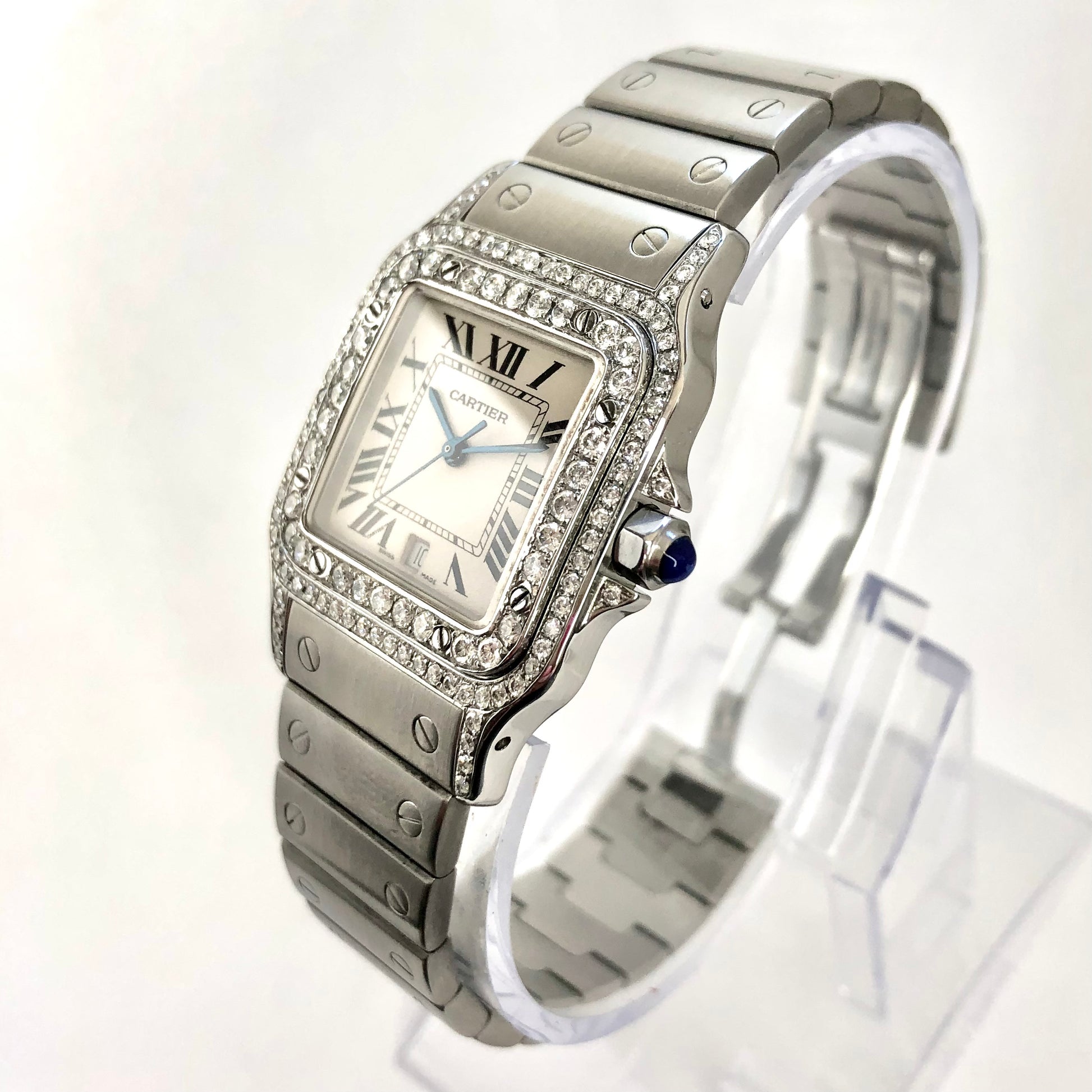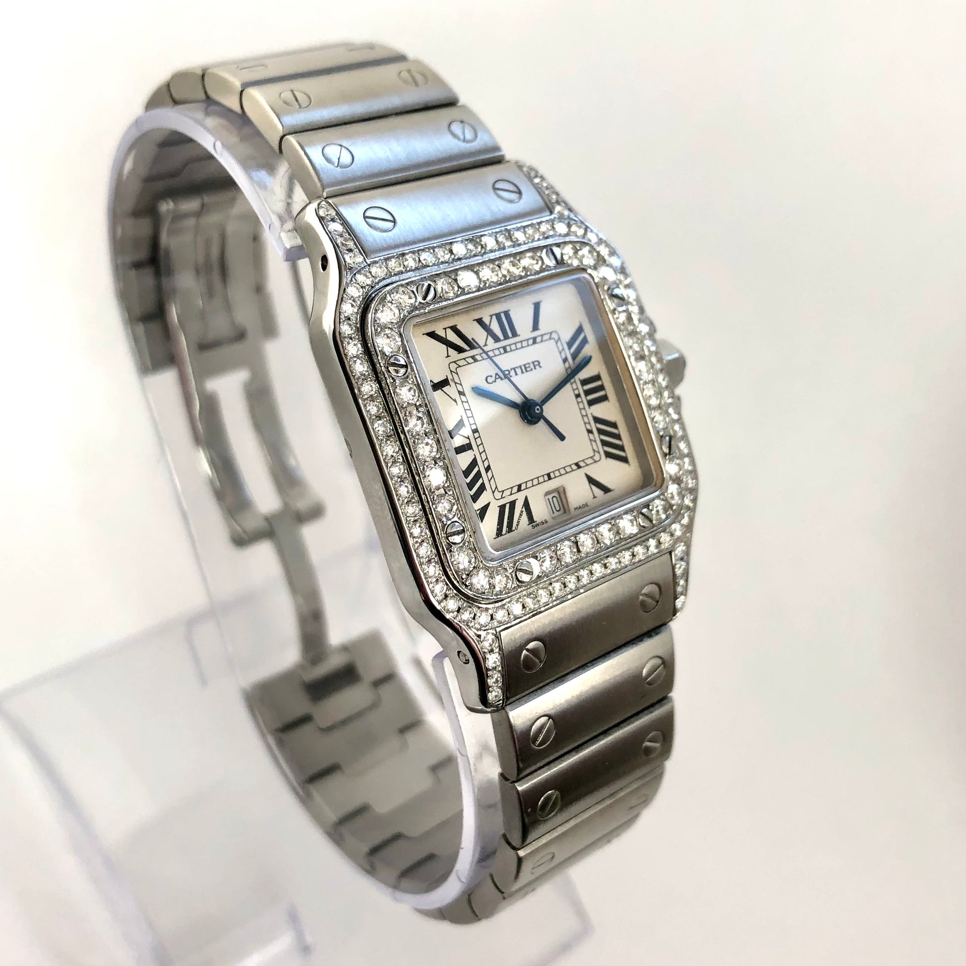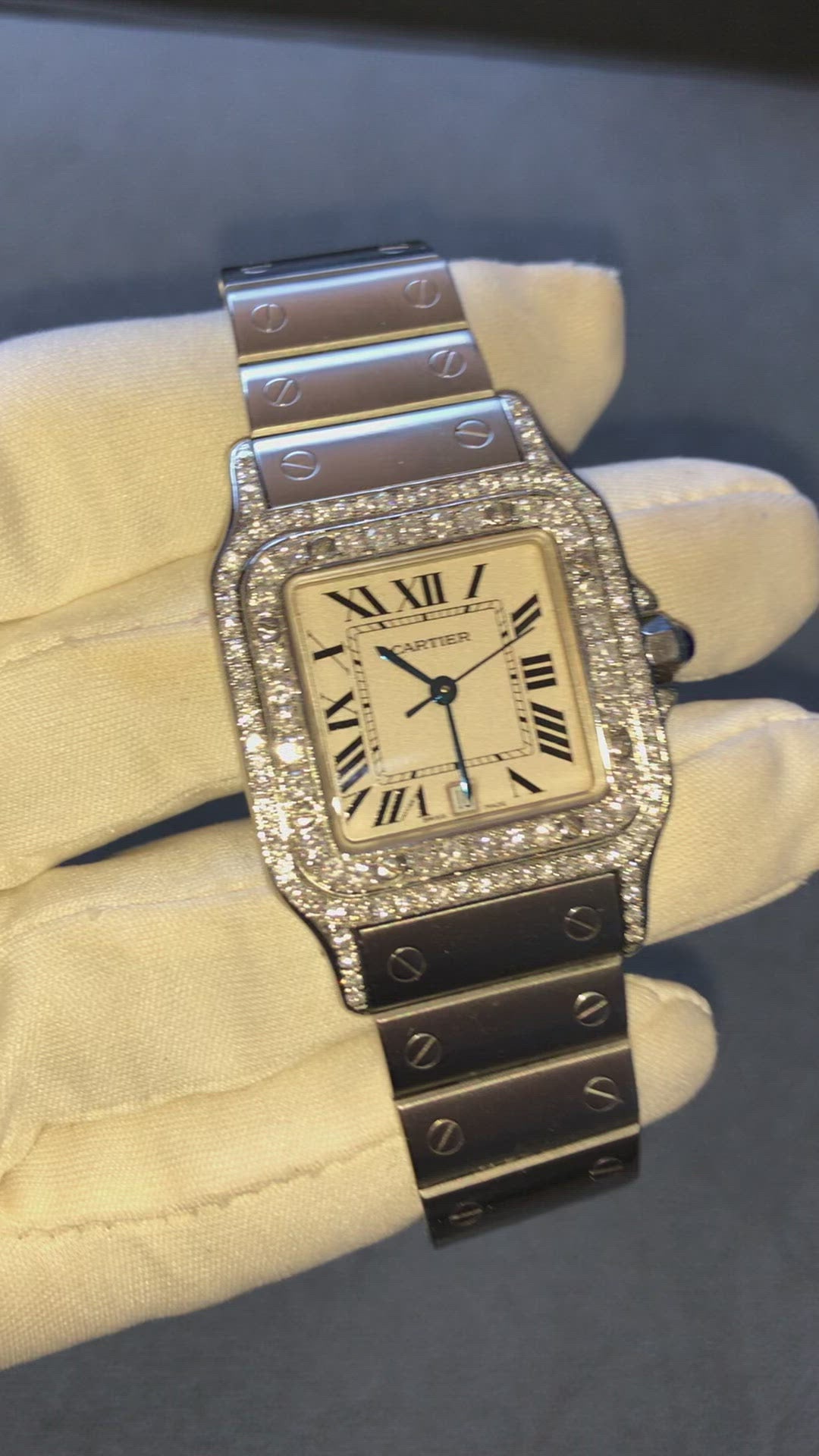 Authentic Pre Owned CARTIER SANTOS GALBEE 29mm Quartz Steel ~1.56TCW Diamond Watch NEW Model