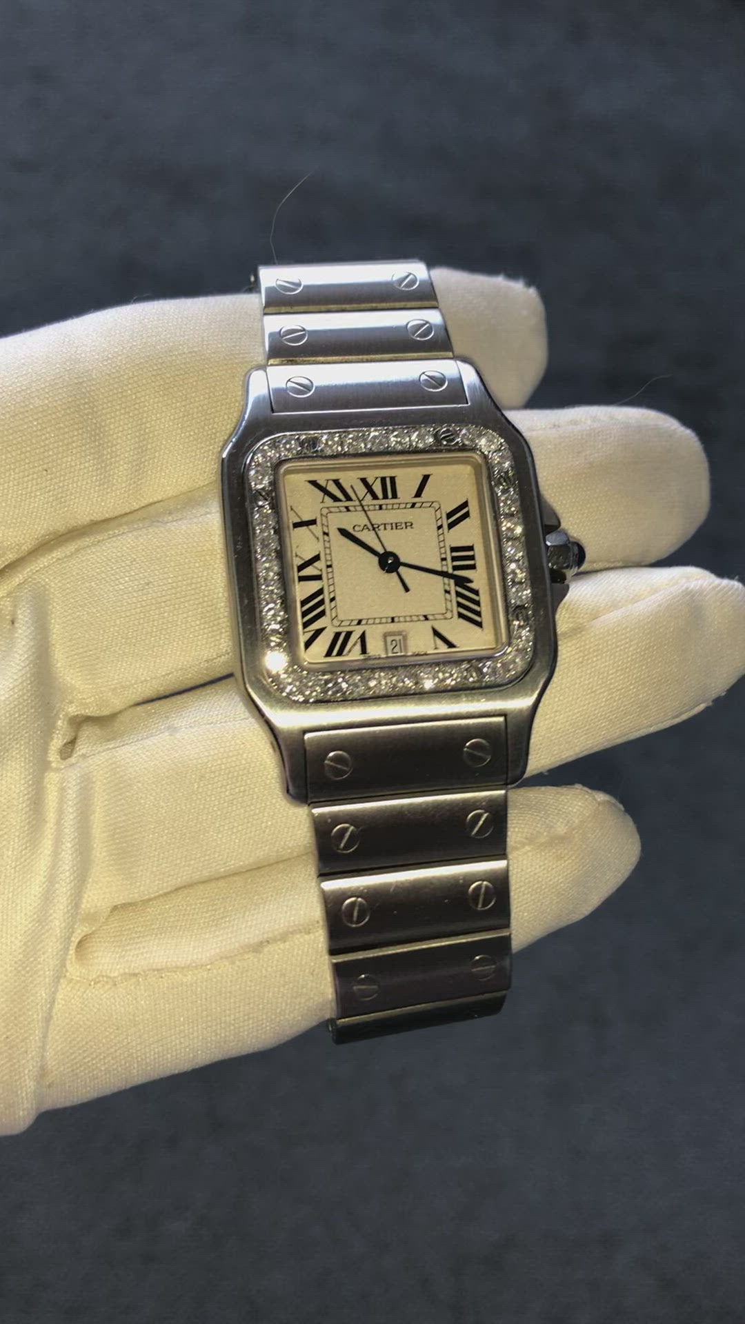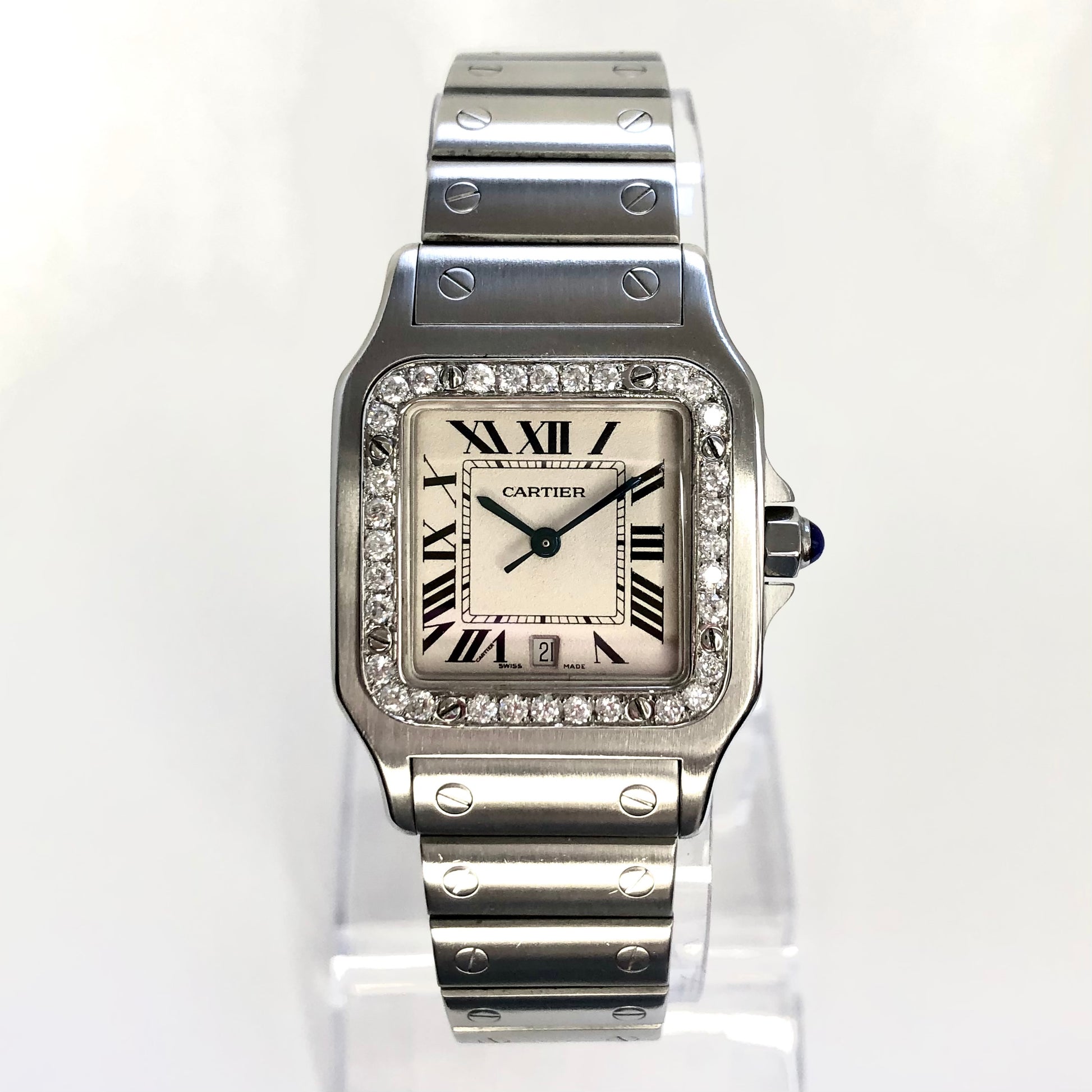 Authentic Pre Owned CARTIER SANTOS GALBEE 29mm Quartz Steel ~1TCW Diamond Watch