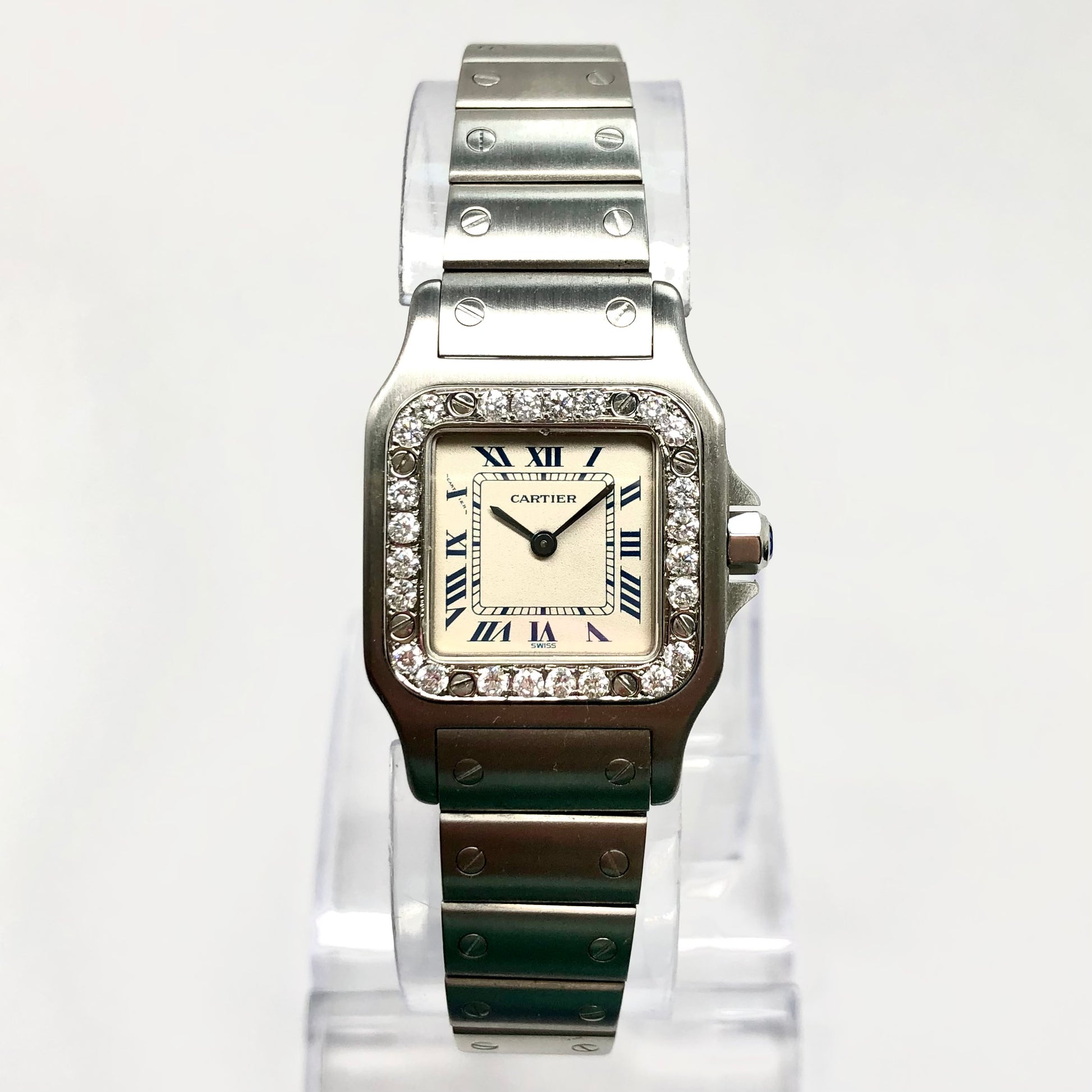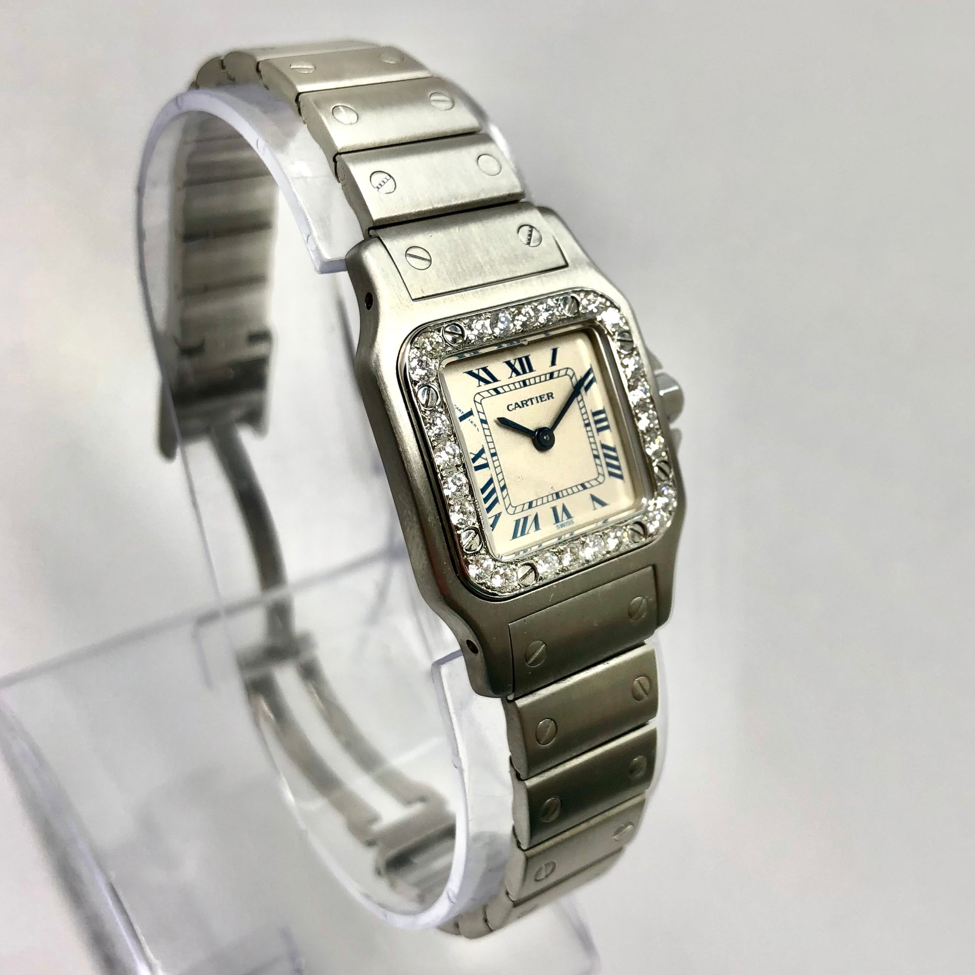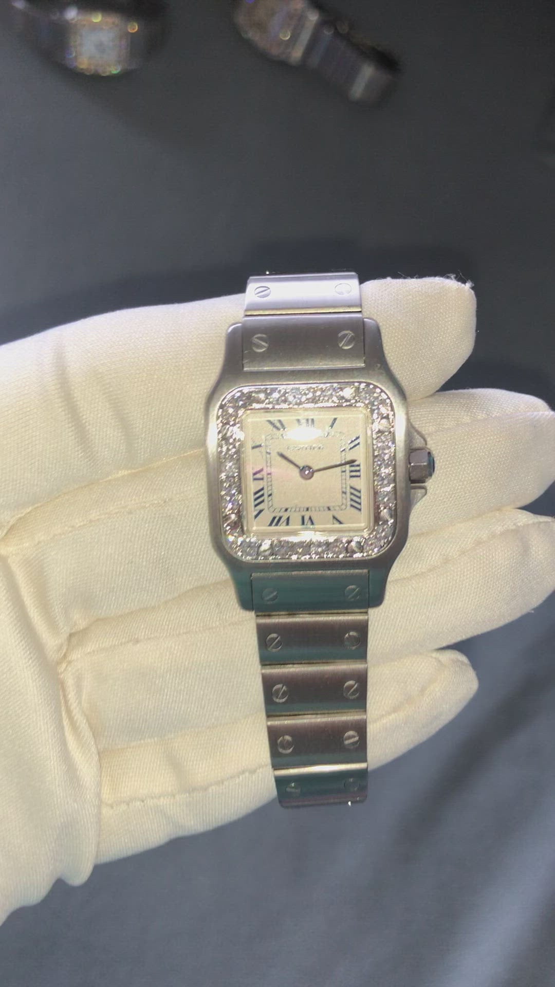 Authentic Pre Owned CARTIER SANTOS GALBEE Quartz 24mm Steel 0.69TCW DIAMOND Watch