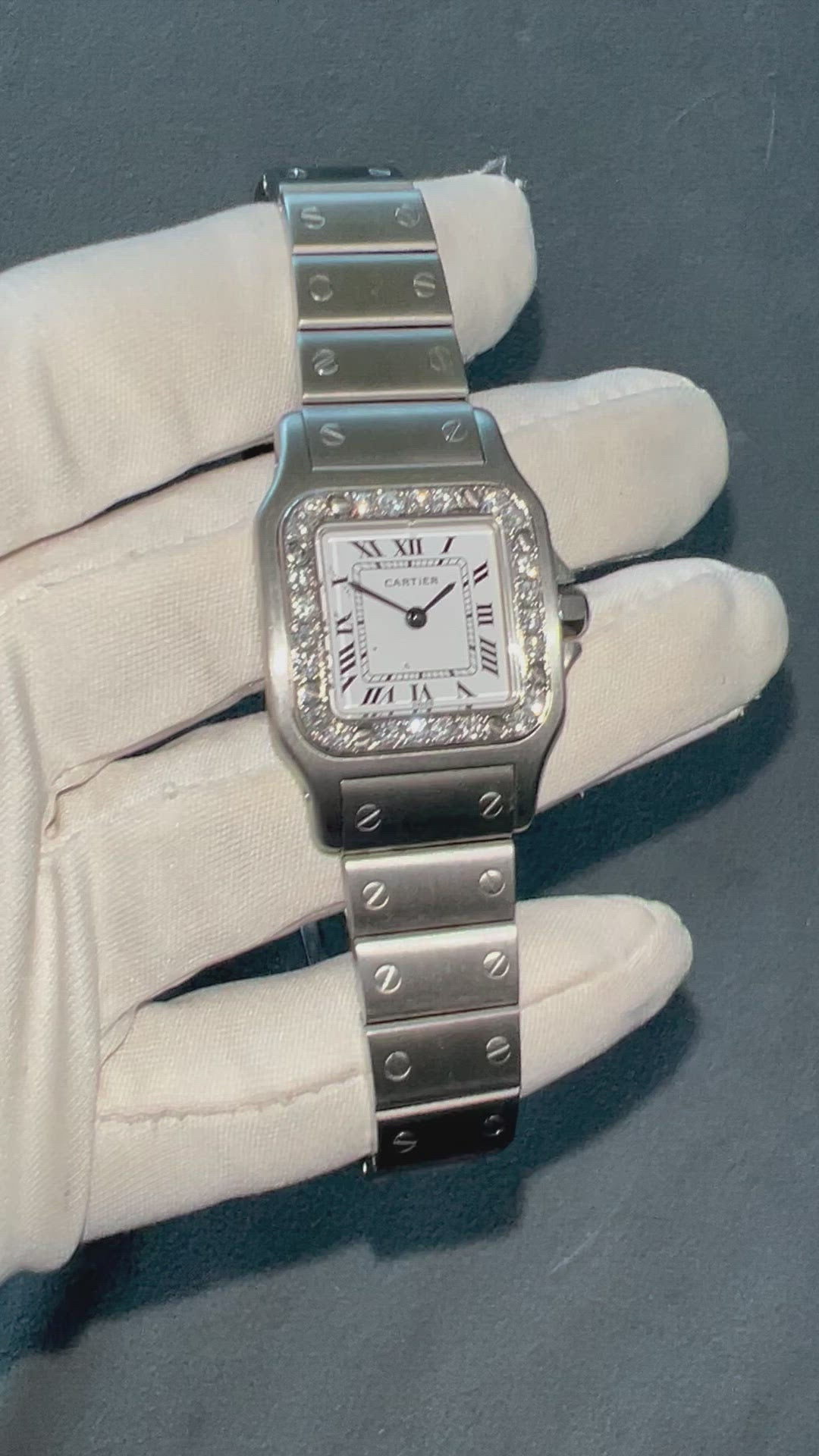 Authentic Pre Owned CARTIER Santos Galbee Quartz 24mm Steel 0.69TCW DIAMOND Watch