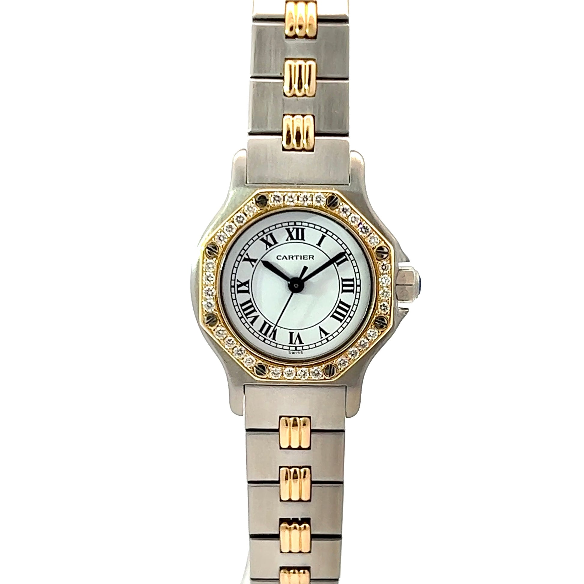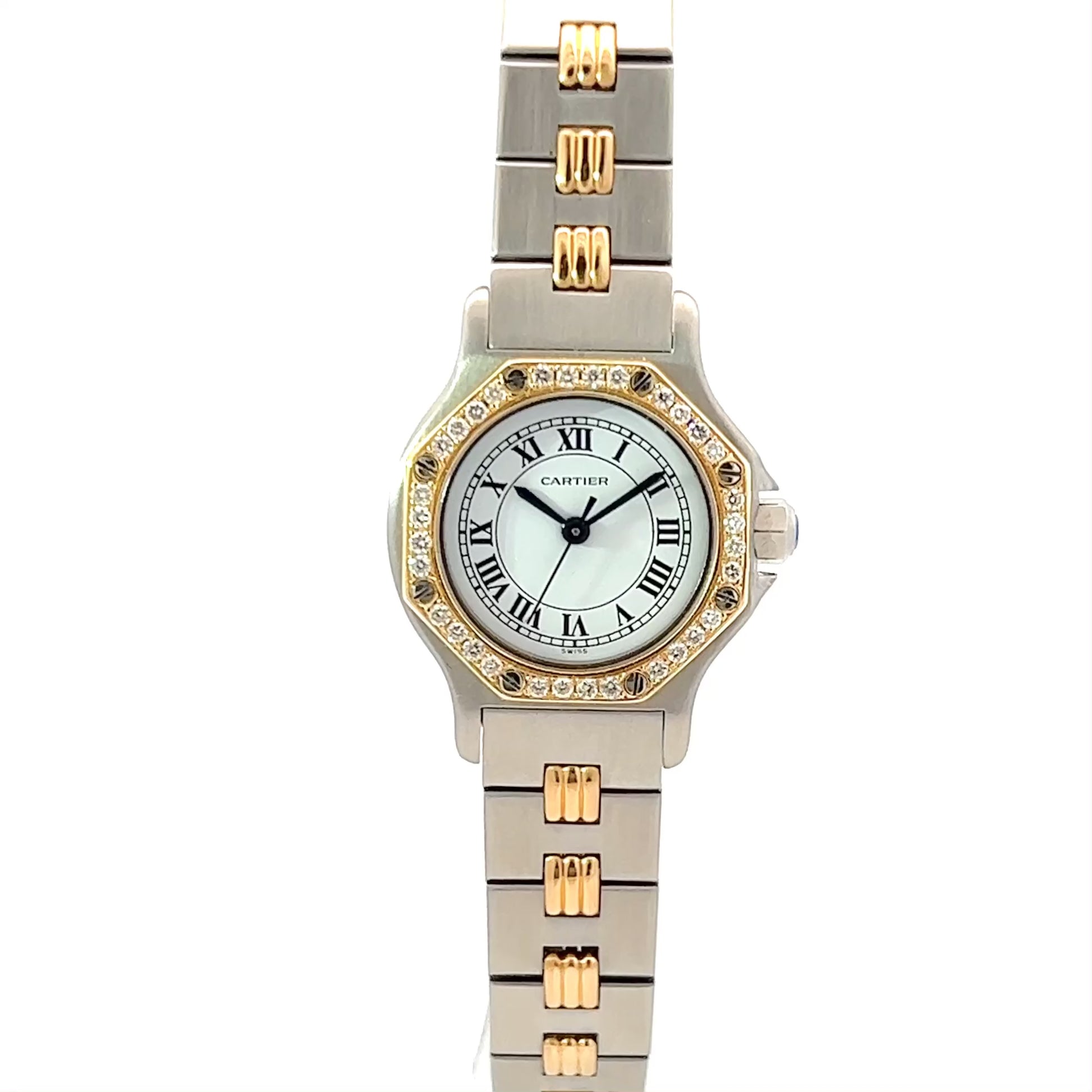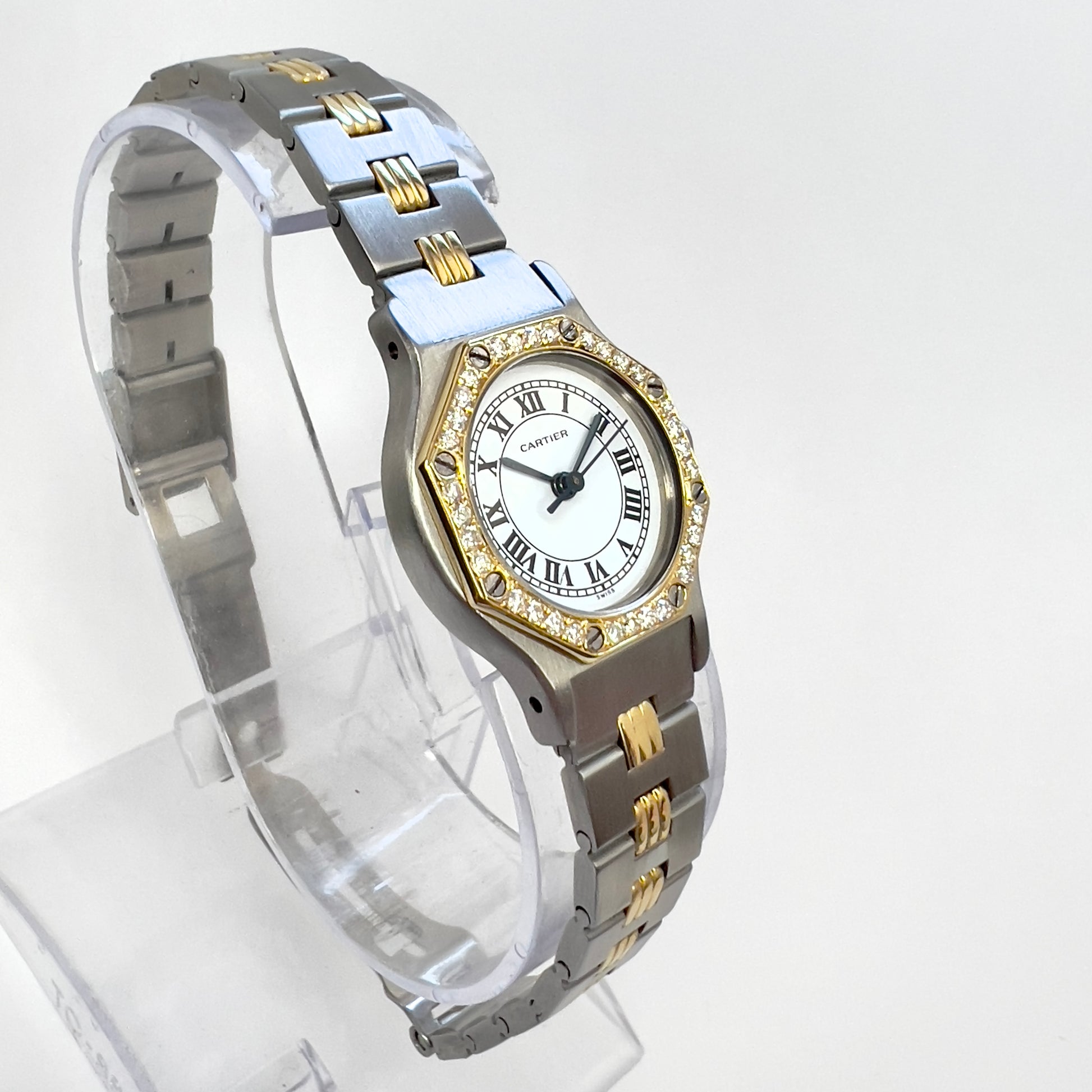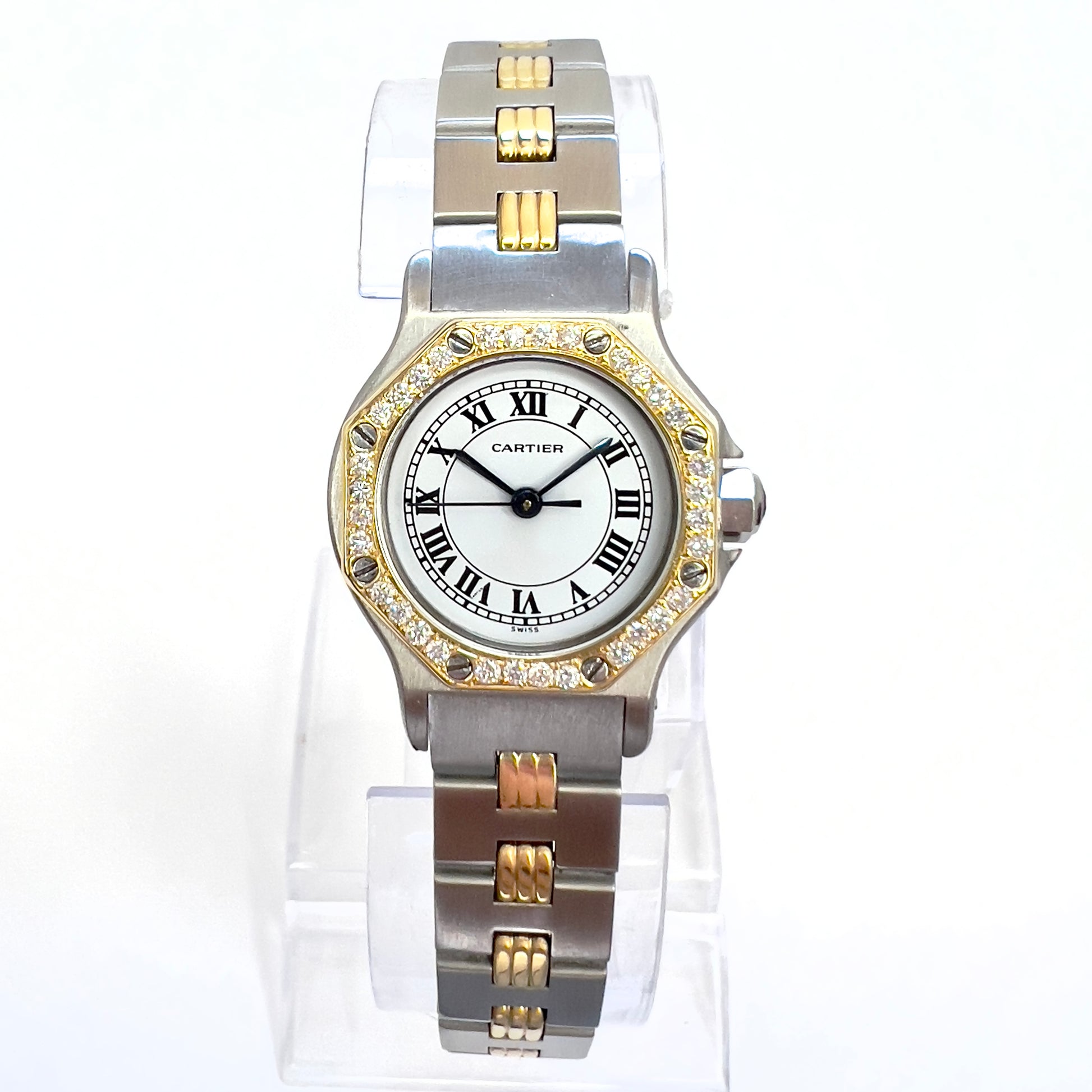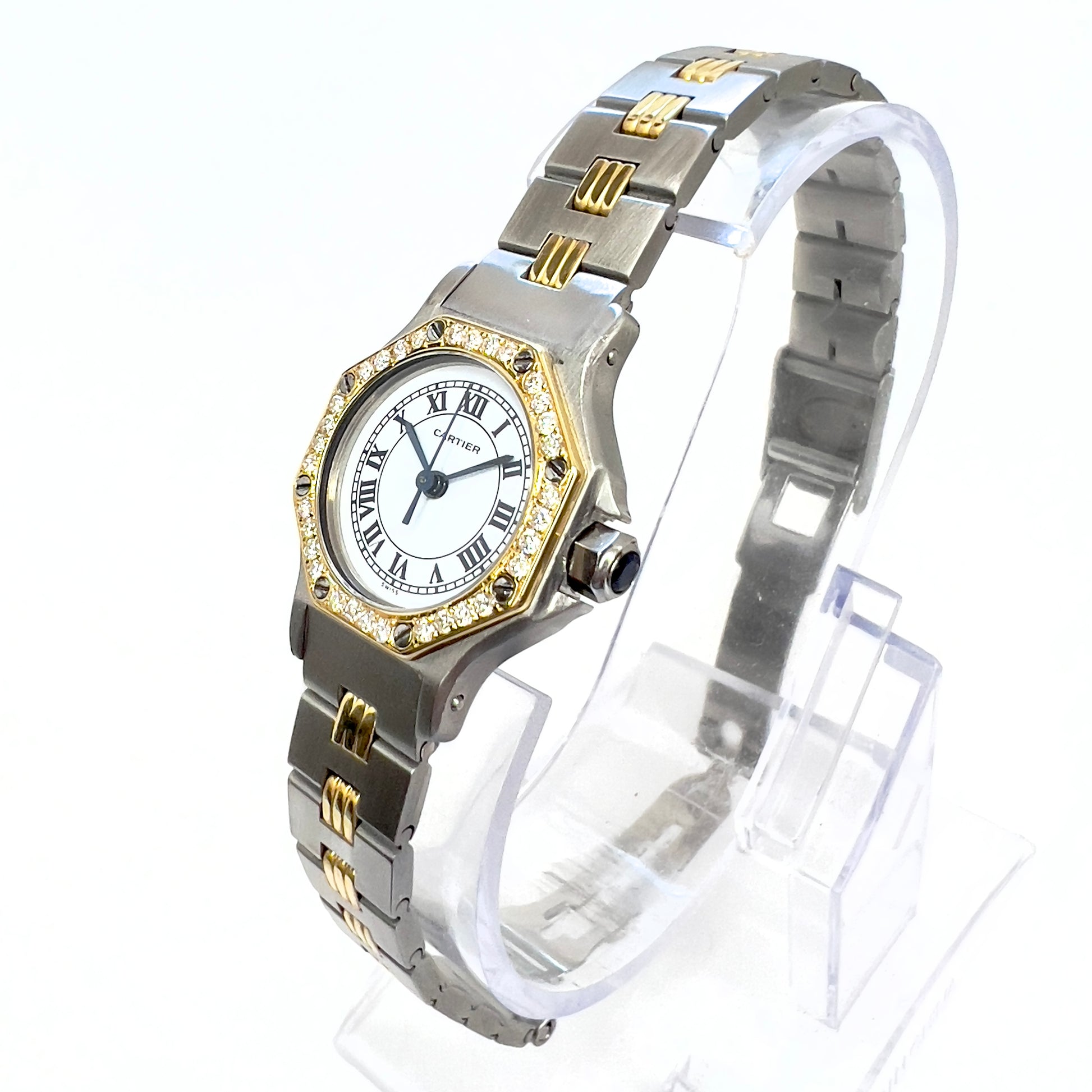 CARTIER SANTOS OCTAGON 25mm Automatic 2 Tone 0.32TCW DIAMOND Watch