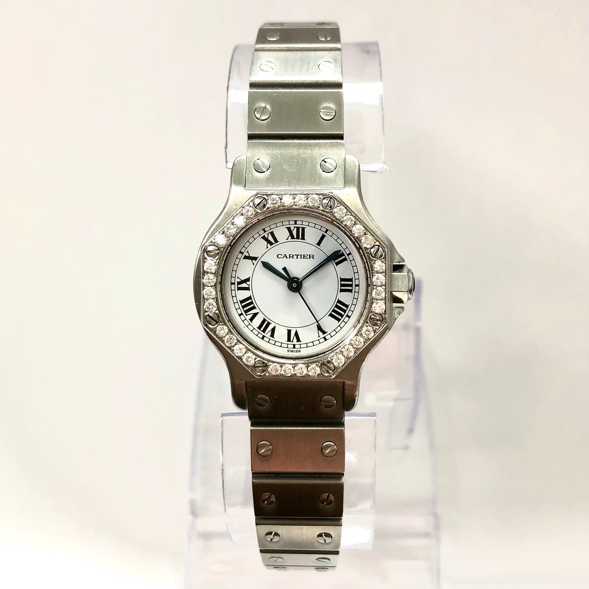 CARTIER SANTOS OCTAGON Automatic 25mm Steel 0.4TCW DIAMOND Watch