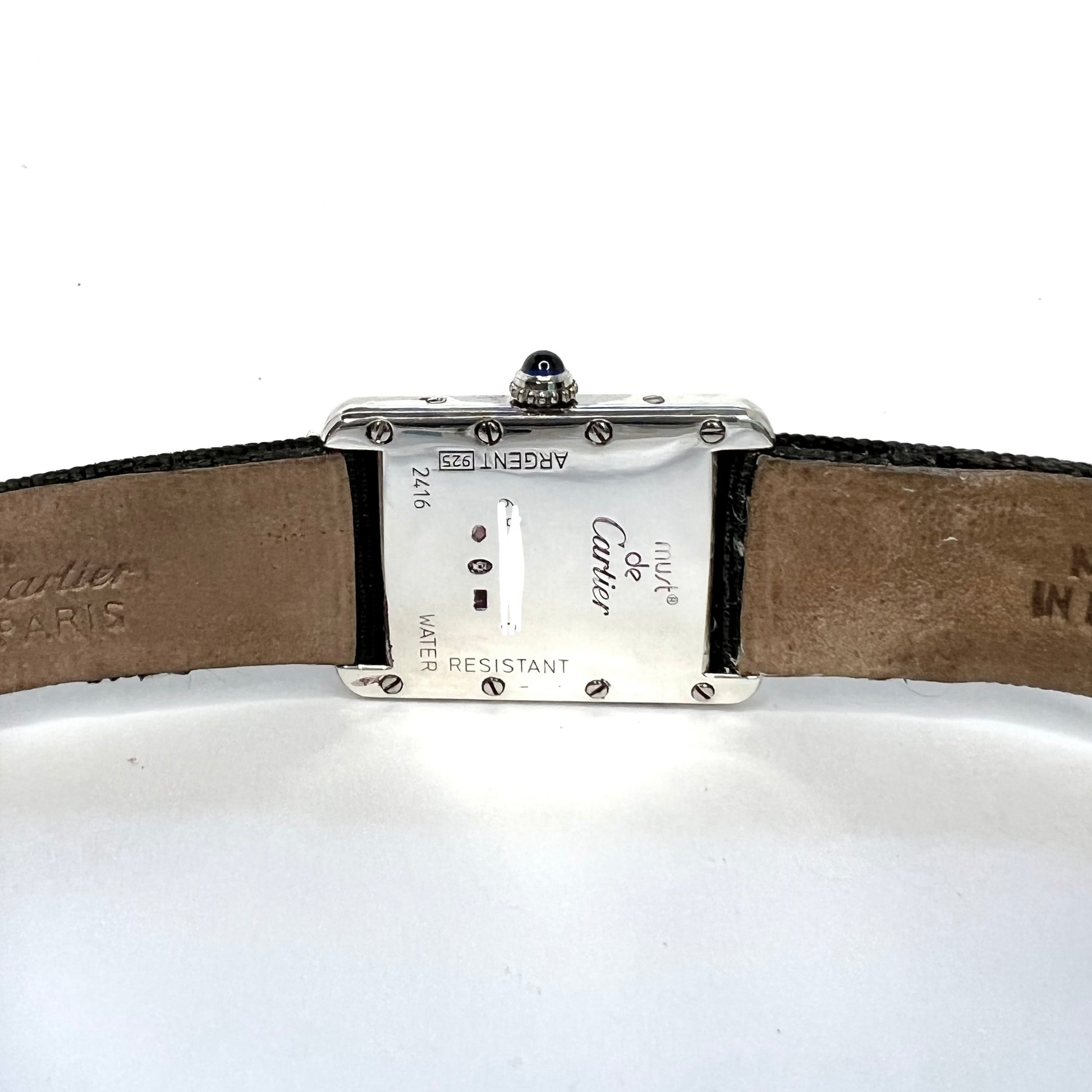 • Case: Sterling Silver stamped Must de Cartier, Argent 925, Water Resistant, 2416 and Serial Number.