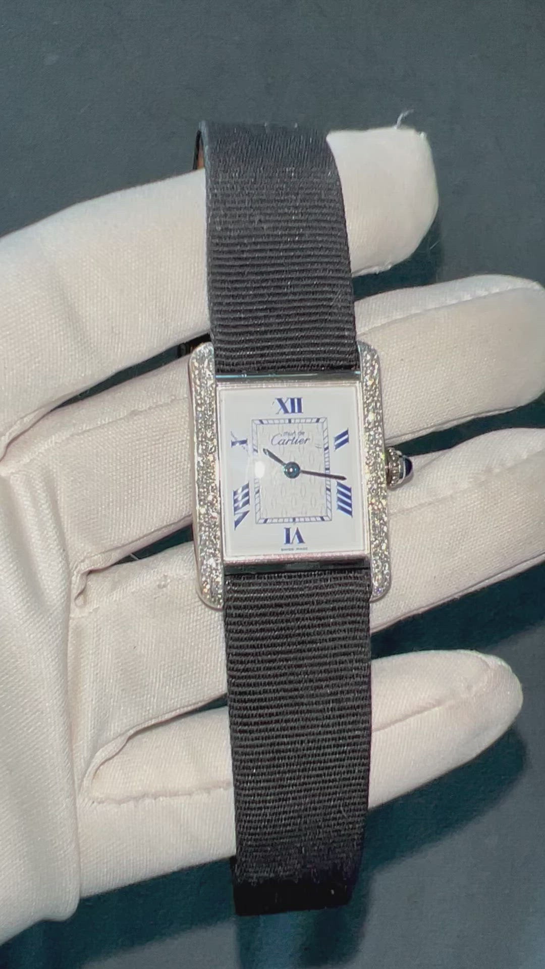 Authentic Pre Owned CARTIER TANK Quartz 22mm Silver 0.63TCW Diamond Watch