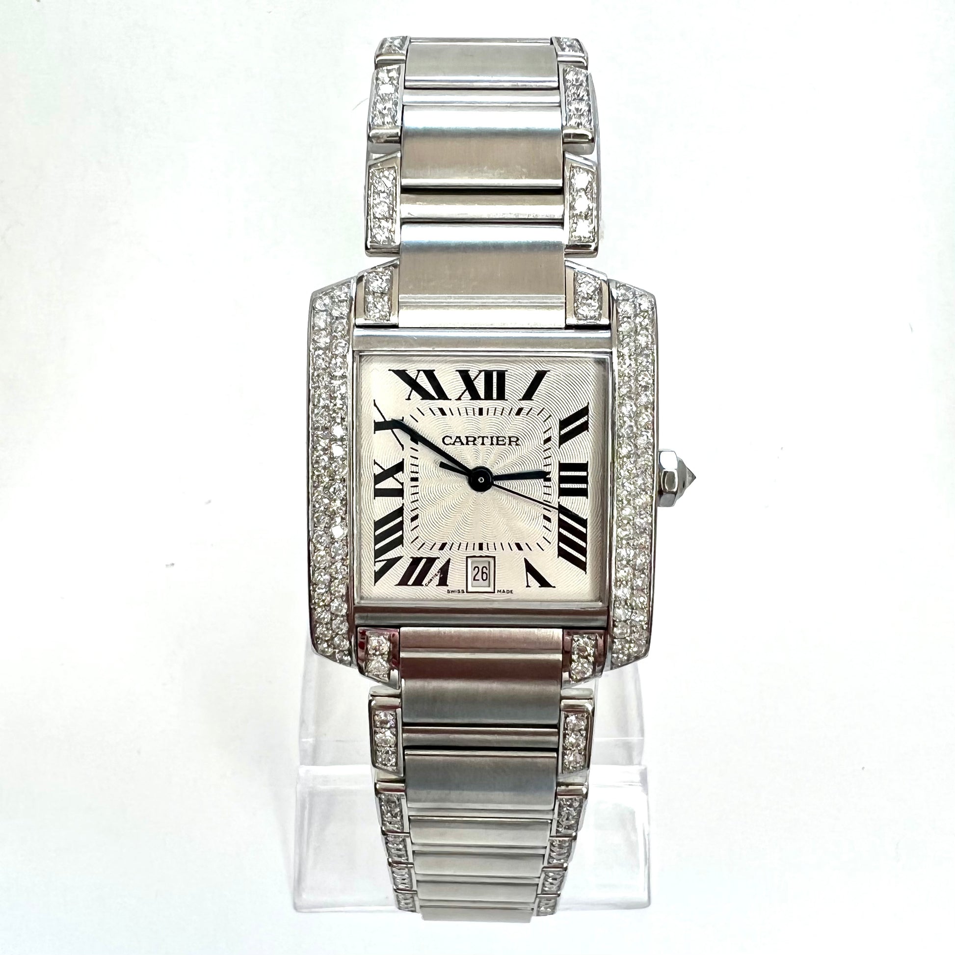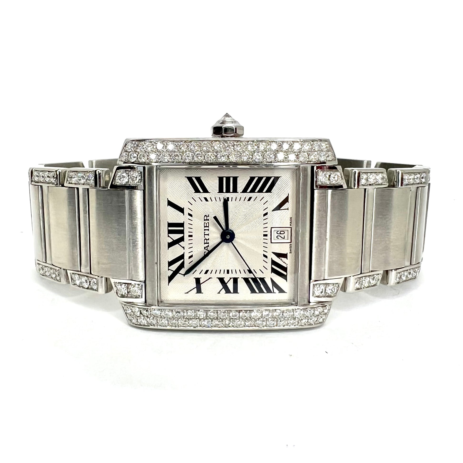 CARTIER TANK FRANCAISE Automatic 28mm Steel ~3.85TCW DIAMOND Watch