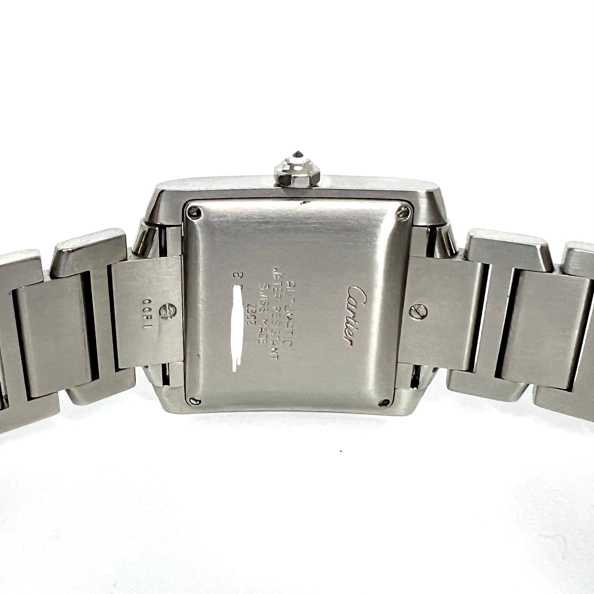 Case: Glossy Stainless Steel stamped Cartier, Water Resistant, Swiss Made and Serial Numbers