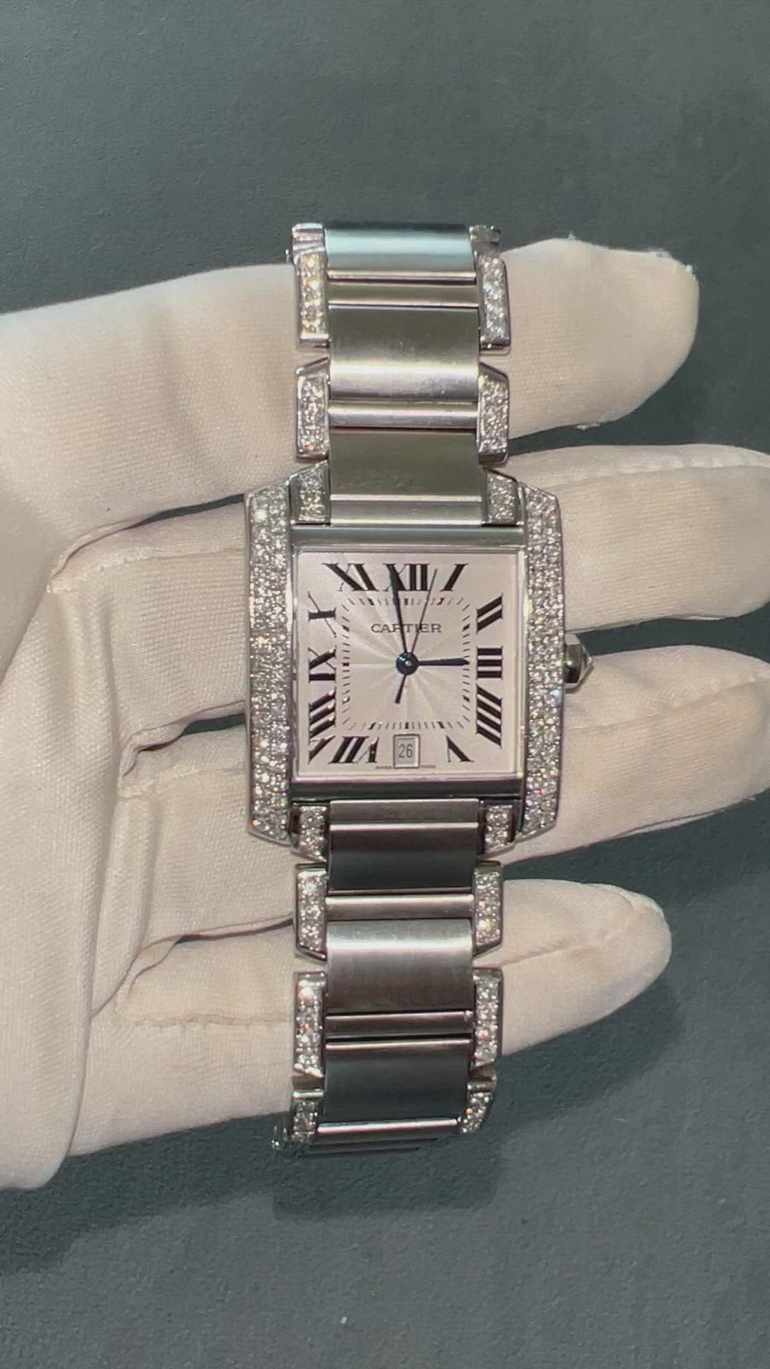 Authentic Pre Owned CARTIER TANK FRANCAISE Automatic 28mm Steel ~3.85TCW DIAMOND Watch
