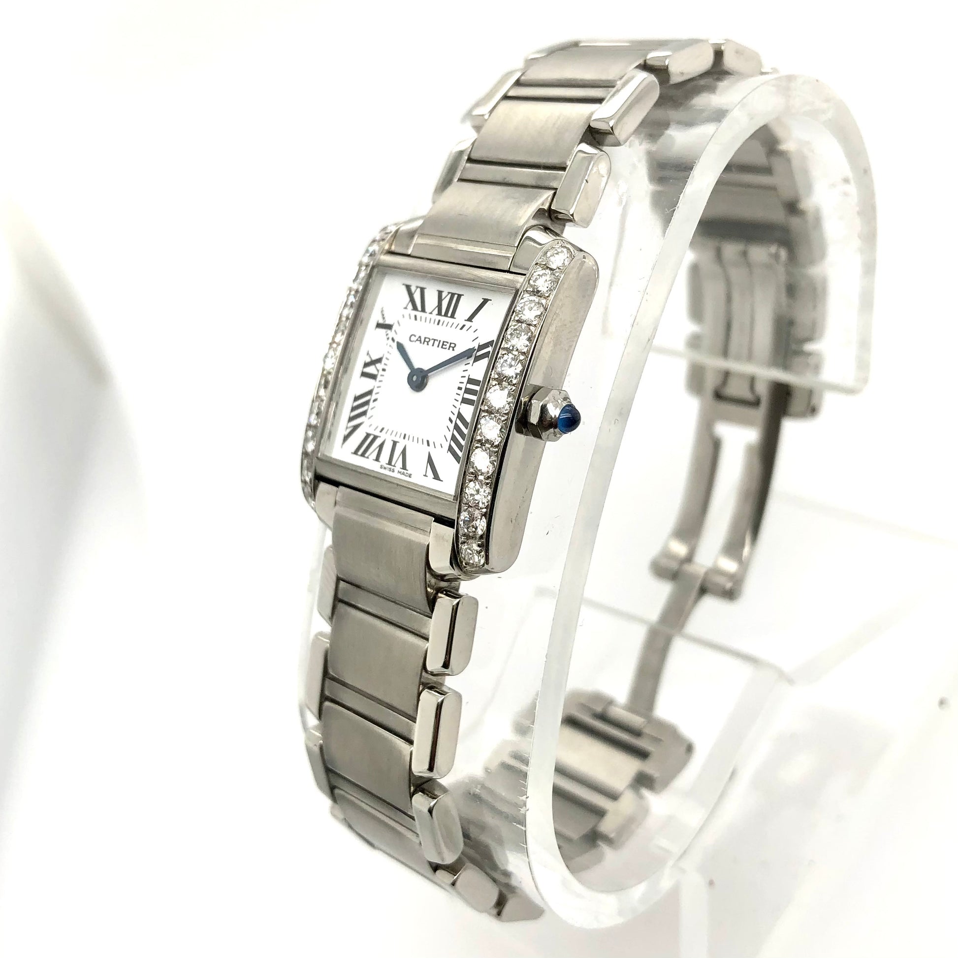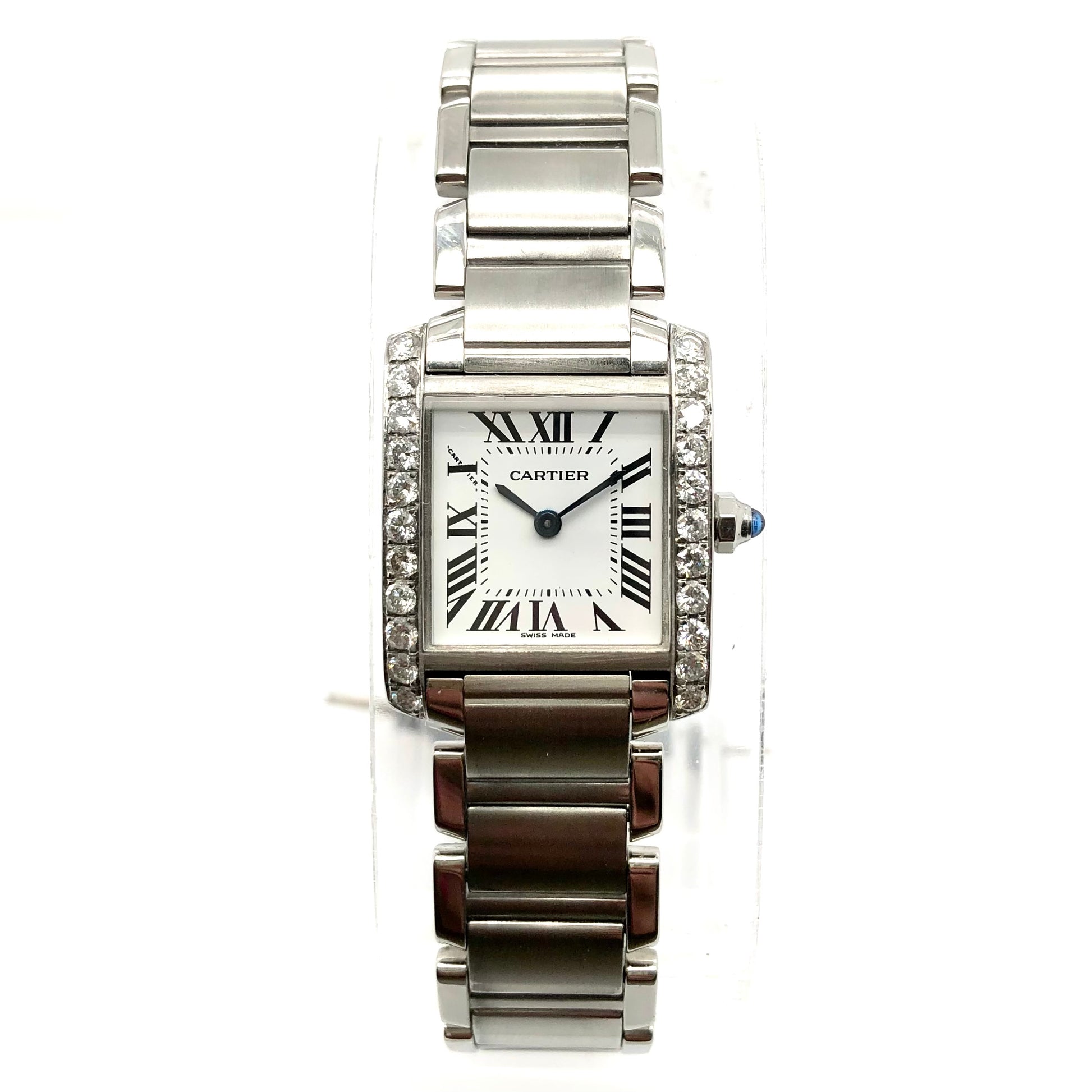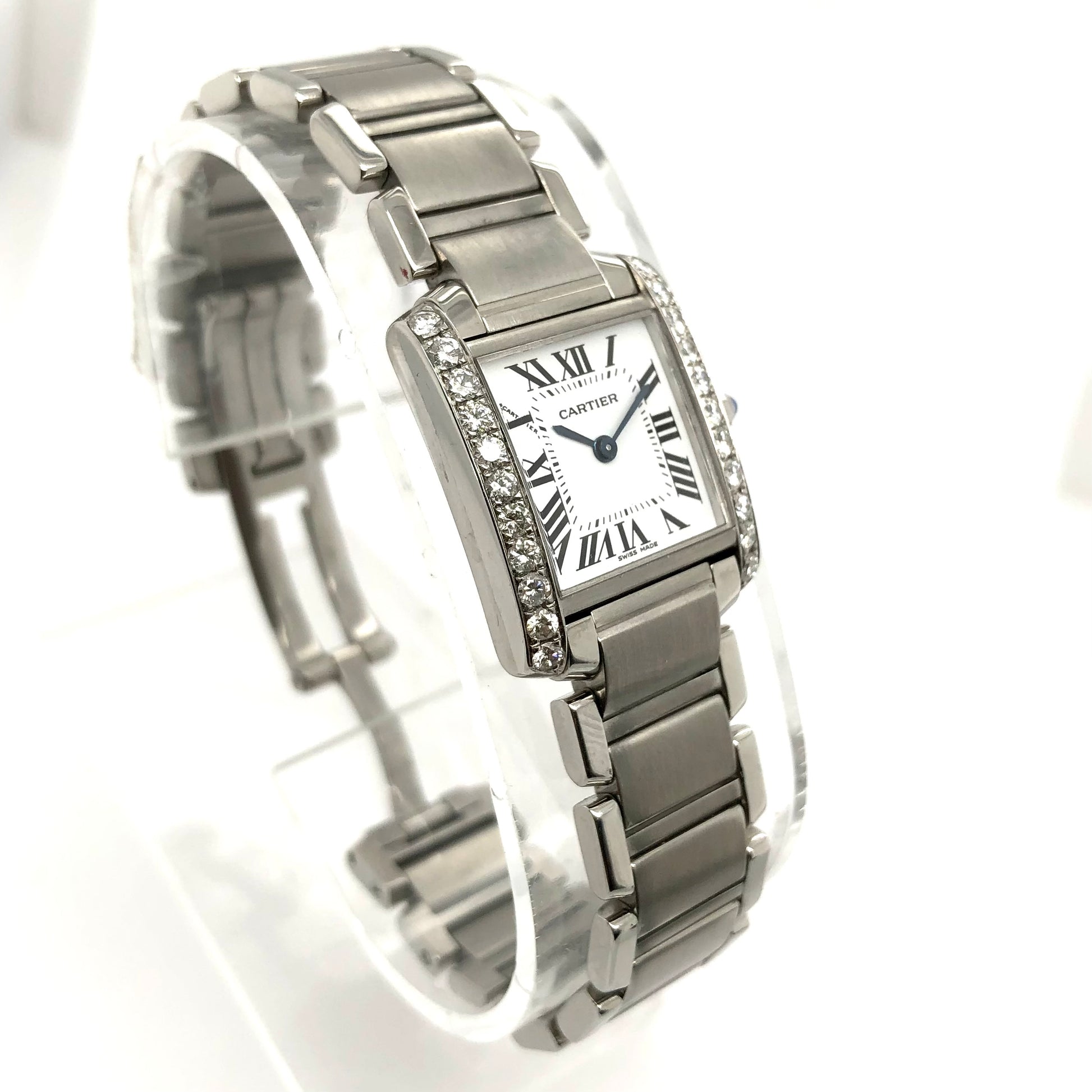 Authentic Pre Owned CARTIER TANK FRANCAISE Quartz 20mm Steel 0.80TCW DIAMOND Watch