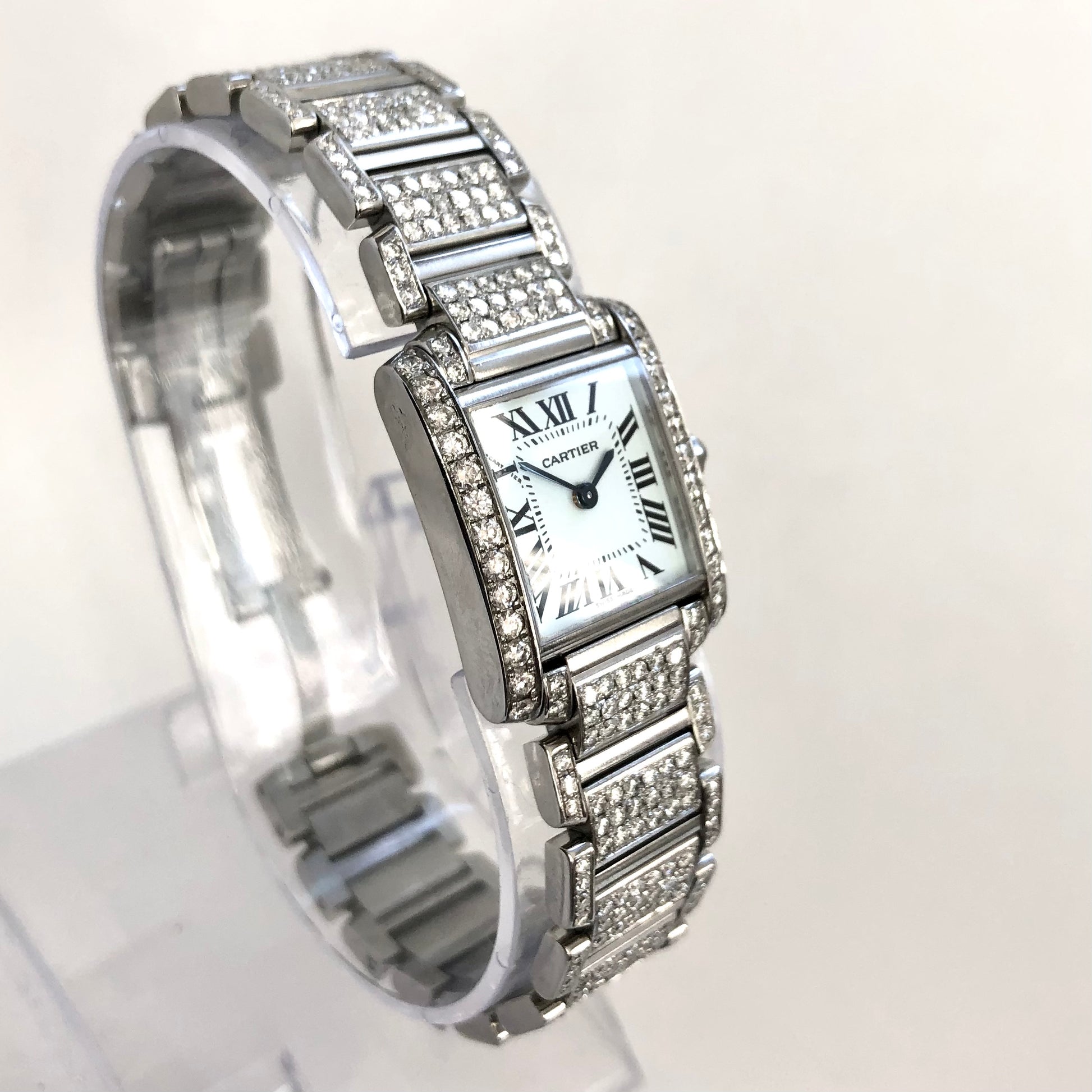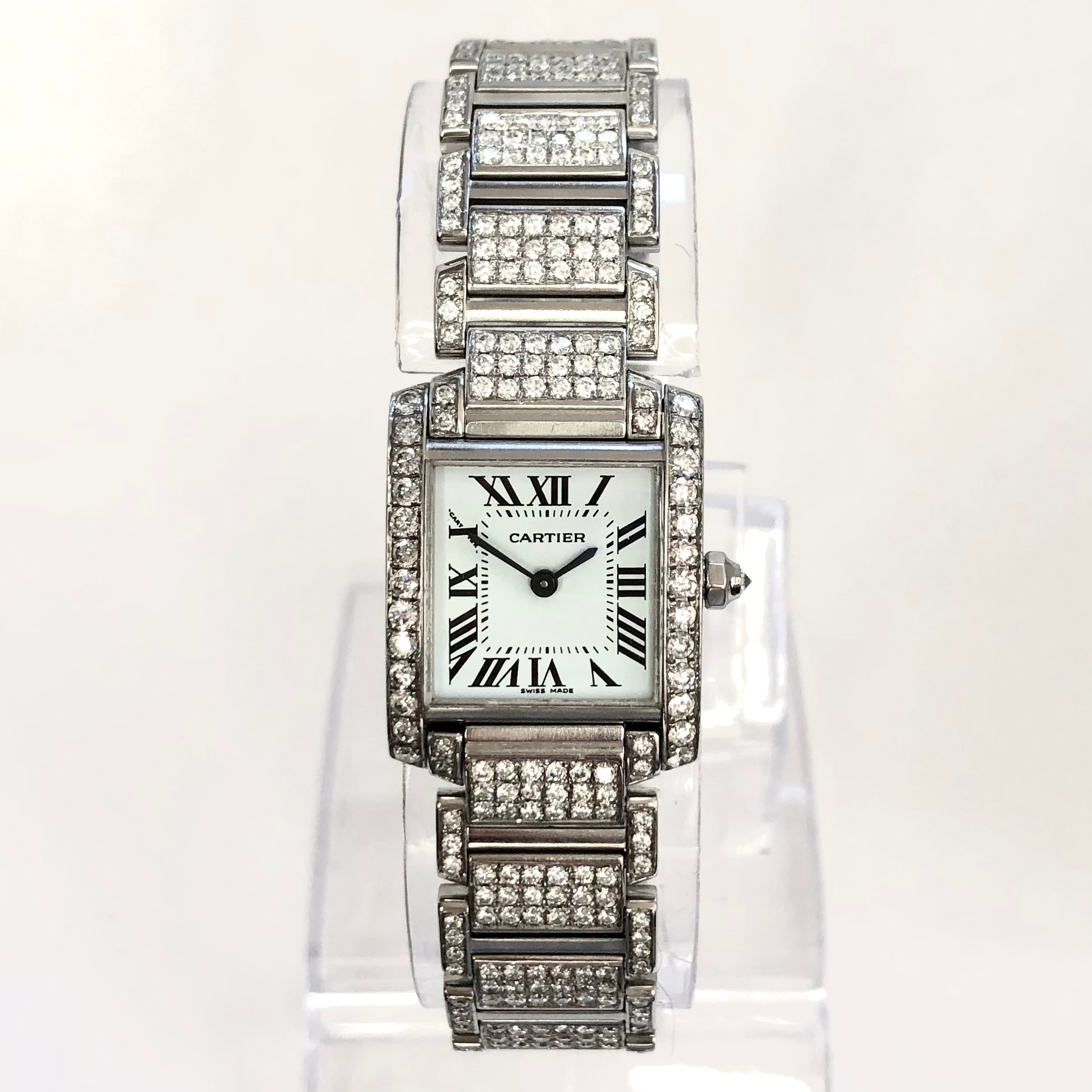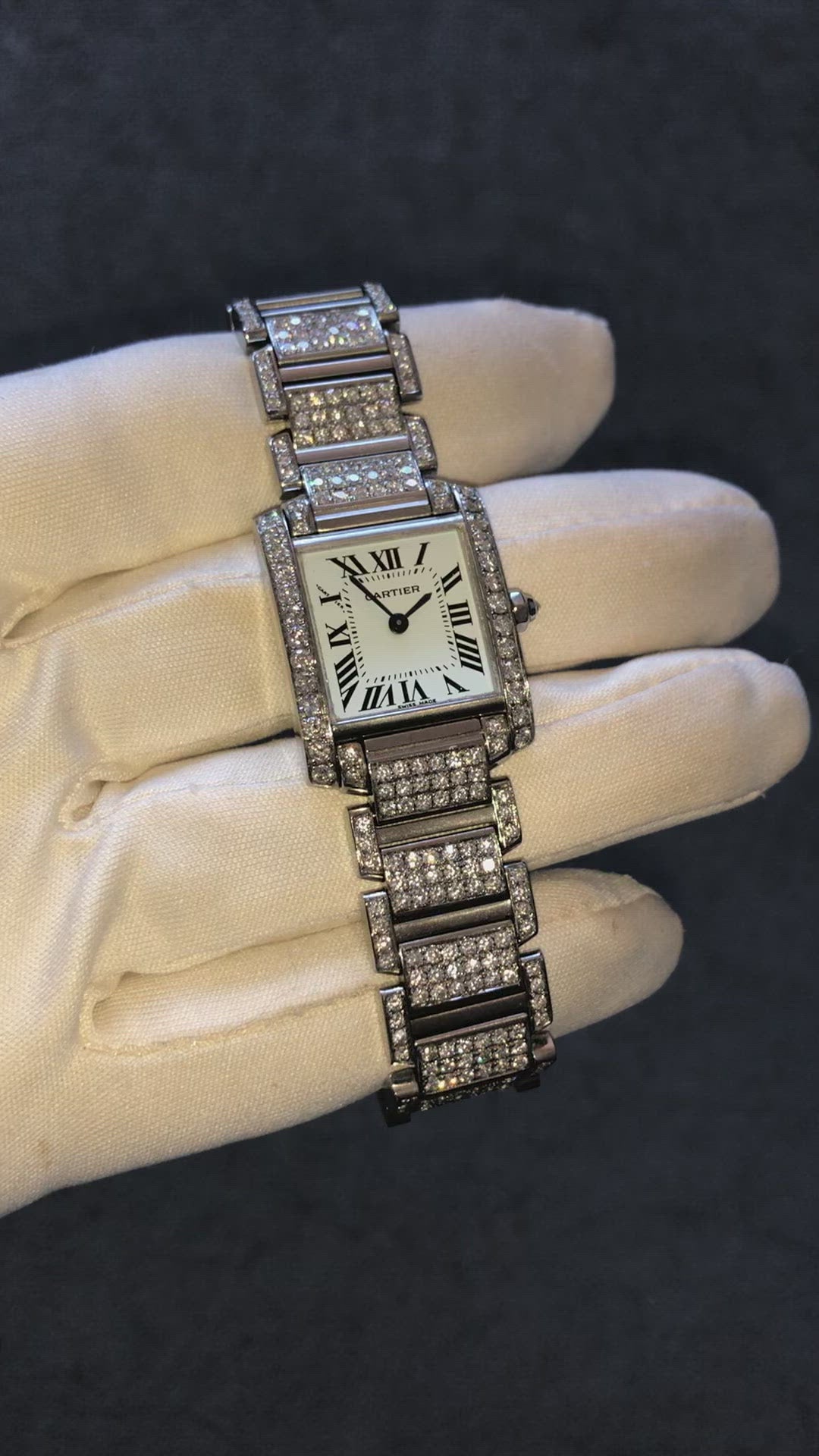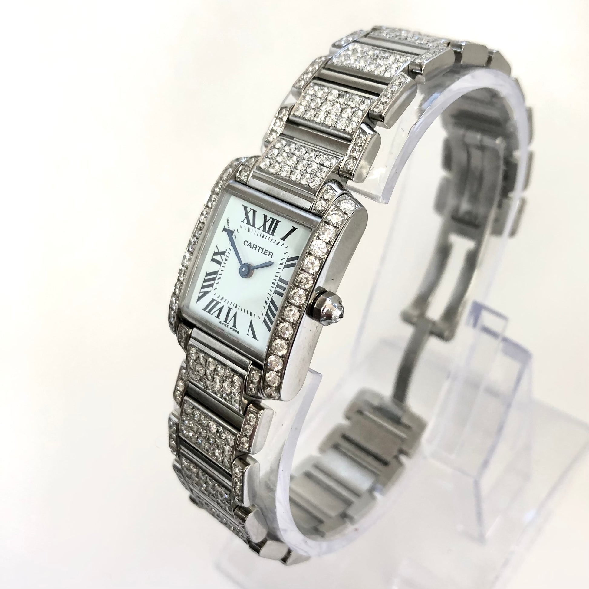 Authentic Pre Owned CARTIER TANK FRANCAISE Quartz 20mm Steel 6.11TCW Full DIAMOND Watch