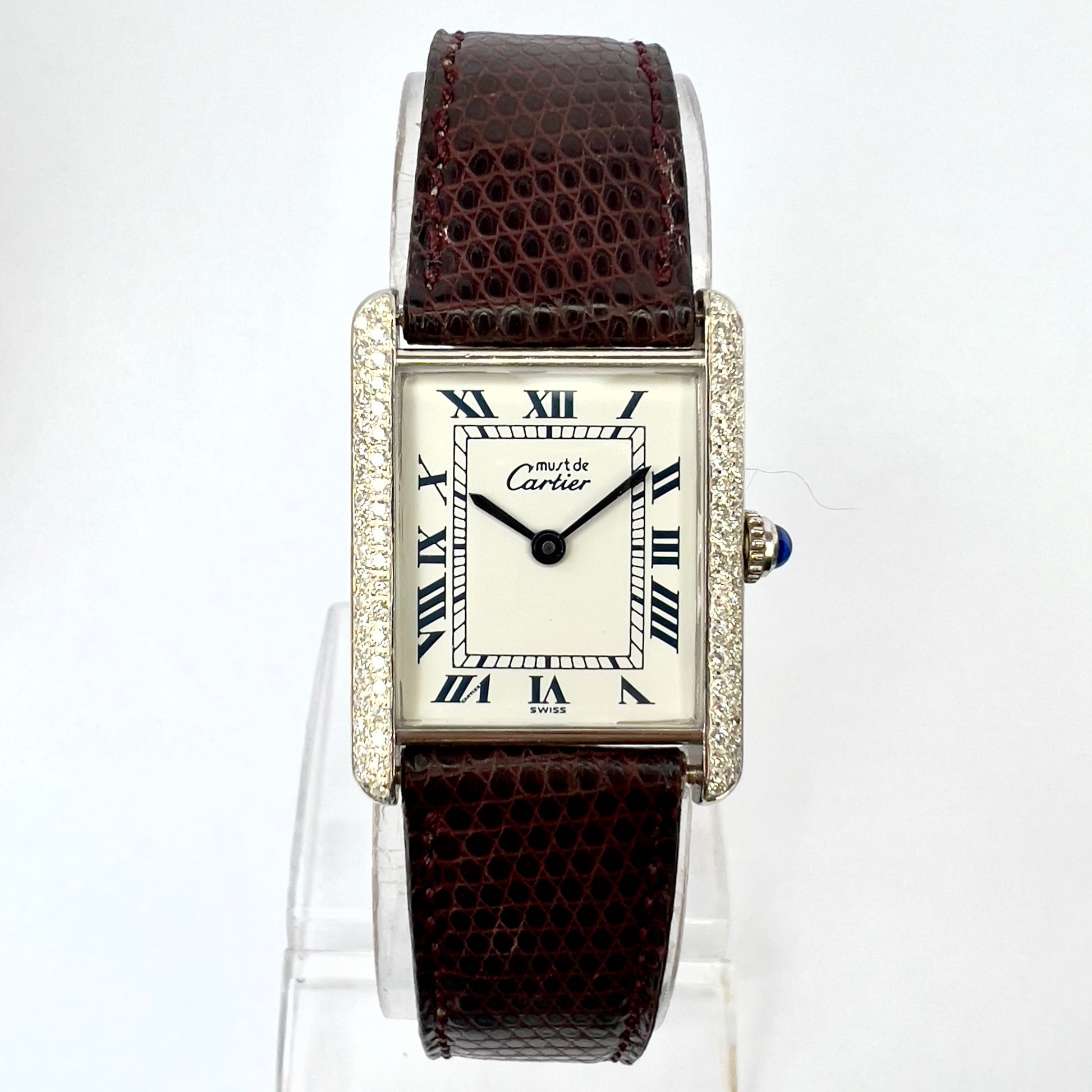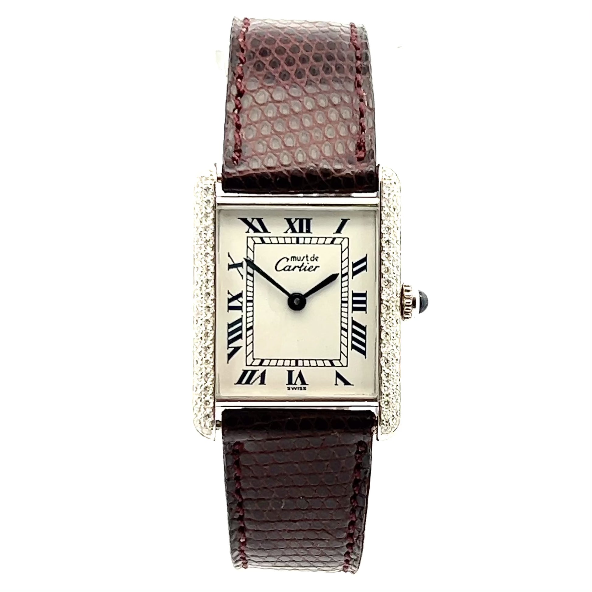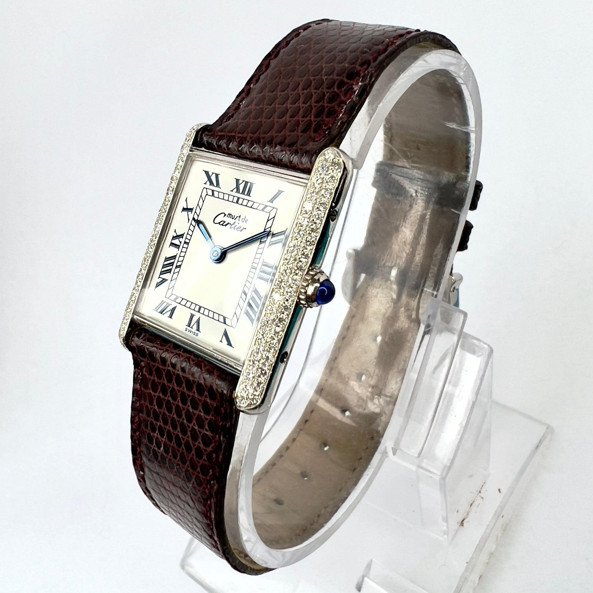Authentic Pre Owned CARTIER TANK Quartz 23mm Silver 0.67TCW Diamond Watch
