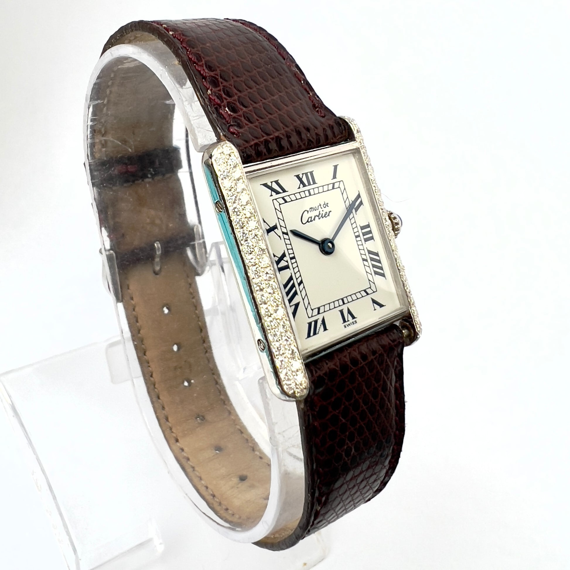 CARTIER TANK Quartz 23mm Silver 0.67TCW Diamond Watch