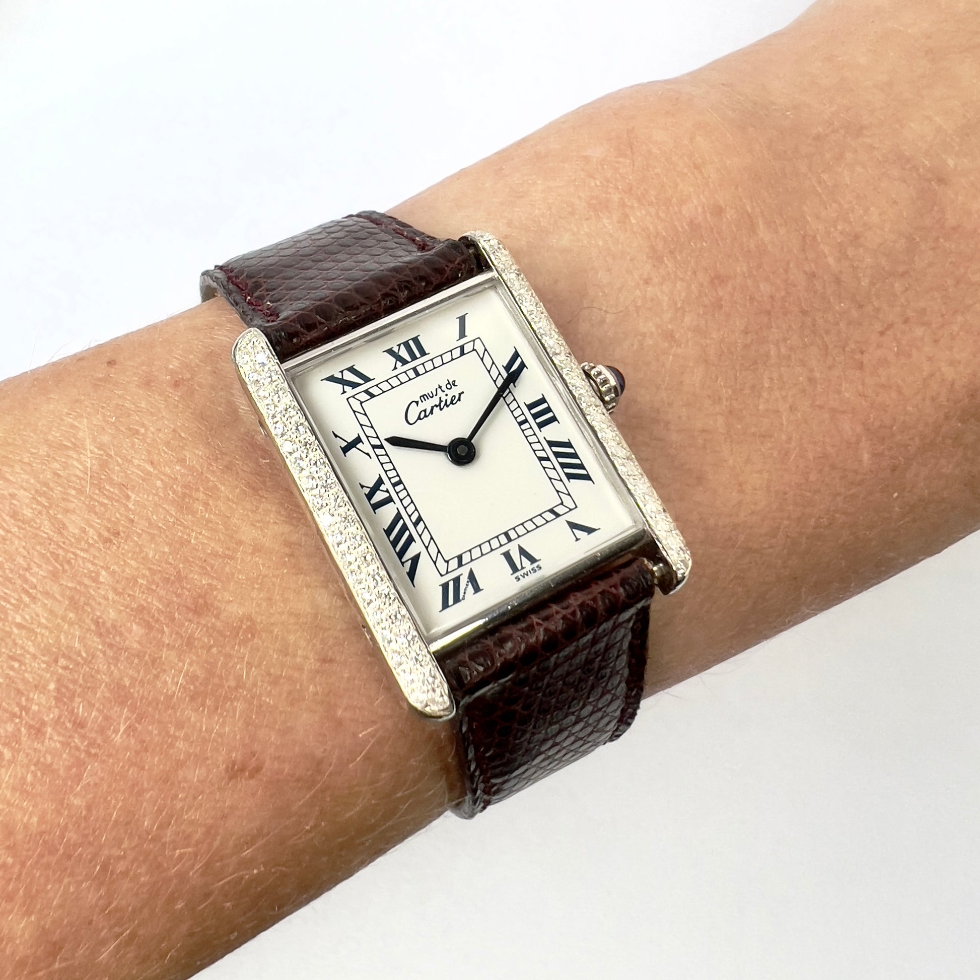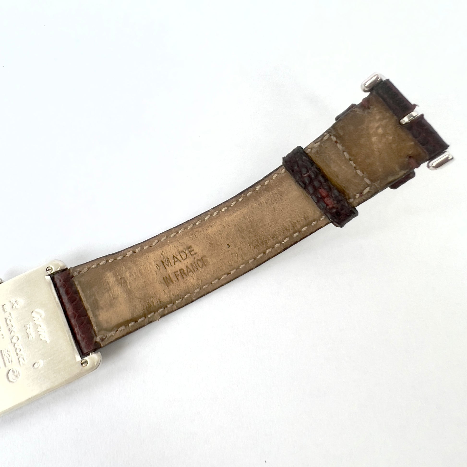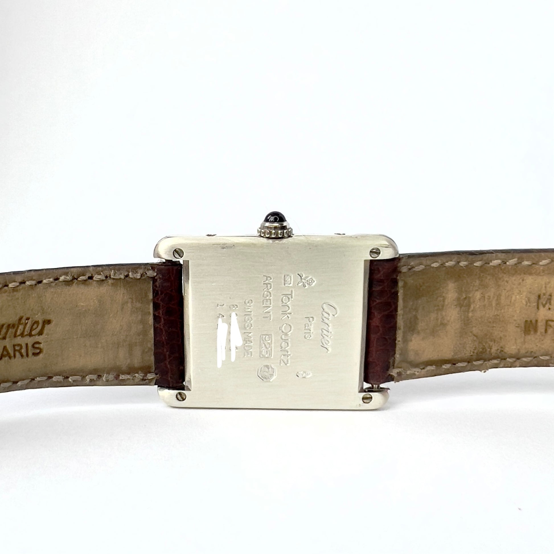 • Case: Sterling Silver stamped Cartier, Paris, Tank Quartz, Argent, 925, Swiss Made and Serial Number.