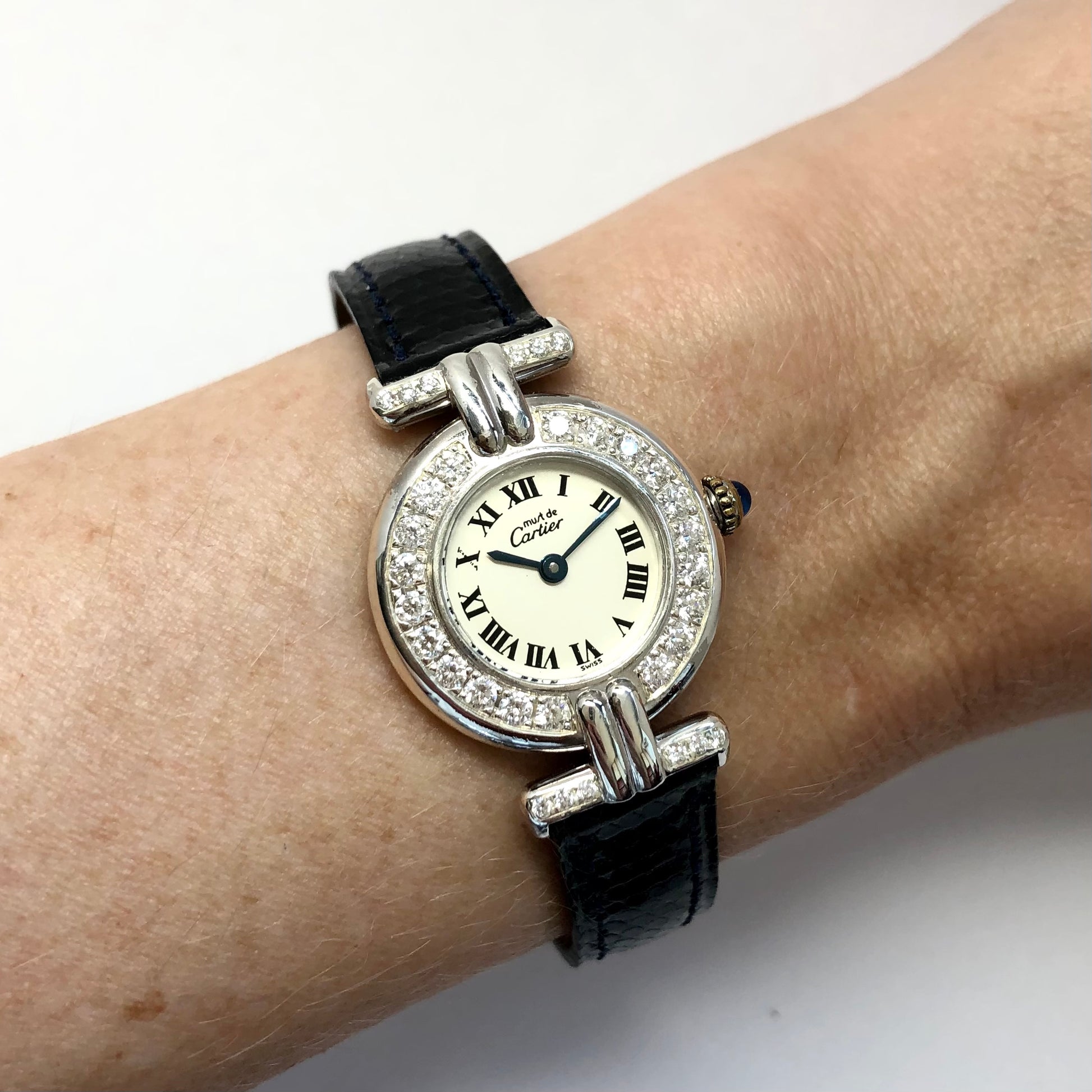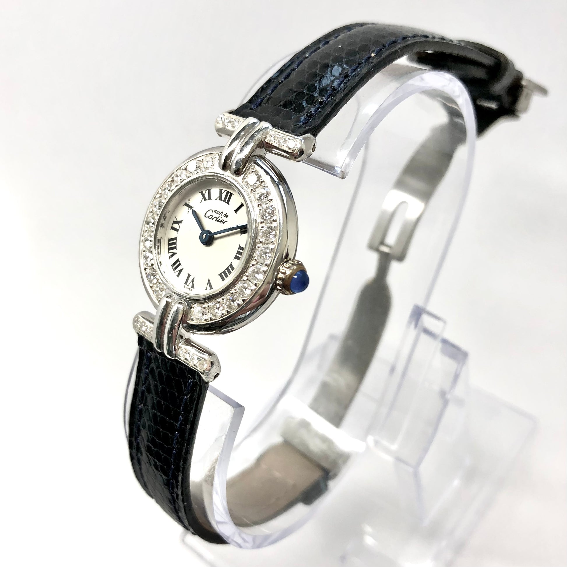 • Band: Genuine Blue Lizard Leather stamped Cartier, Paris.