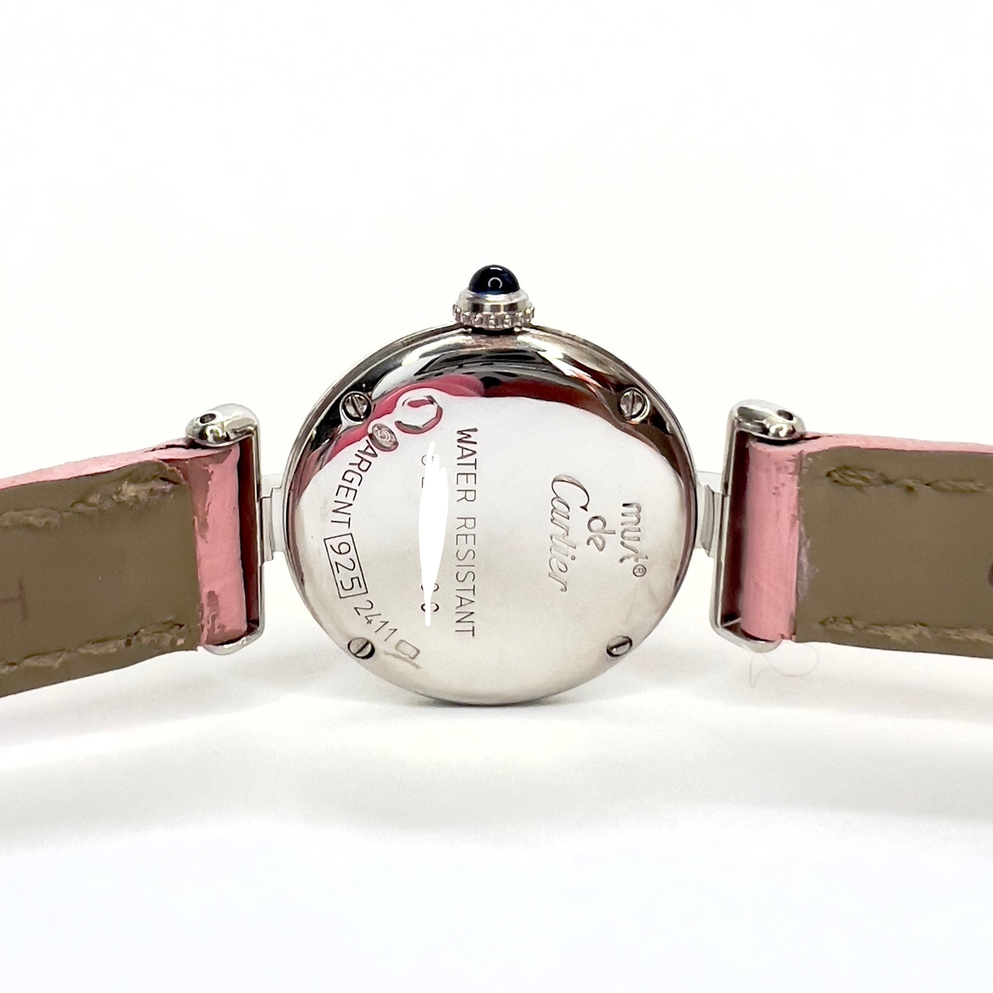 • Case: Glossy Sterling Silver stamped Must De Cartier, Water Resistant, Argent 925, 2411 and Serial Number