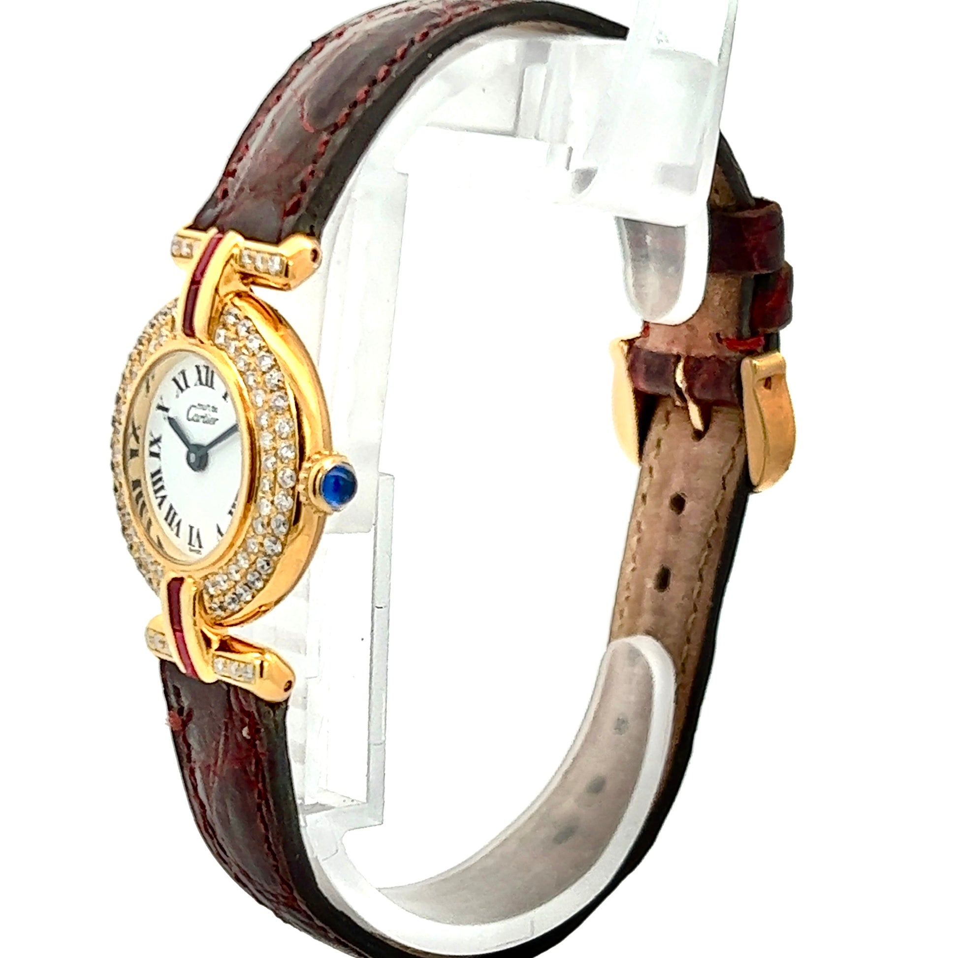 CARTIER VERMEIL COLISEE Quartz 24mm GP Silver 0.87TCW Diamond & Rubies White Dial Watch