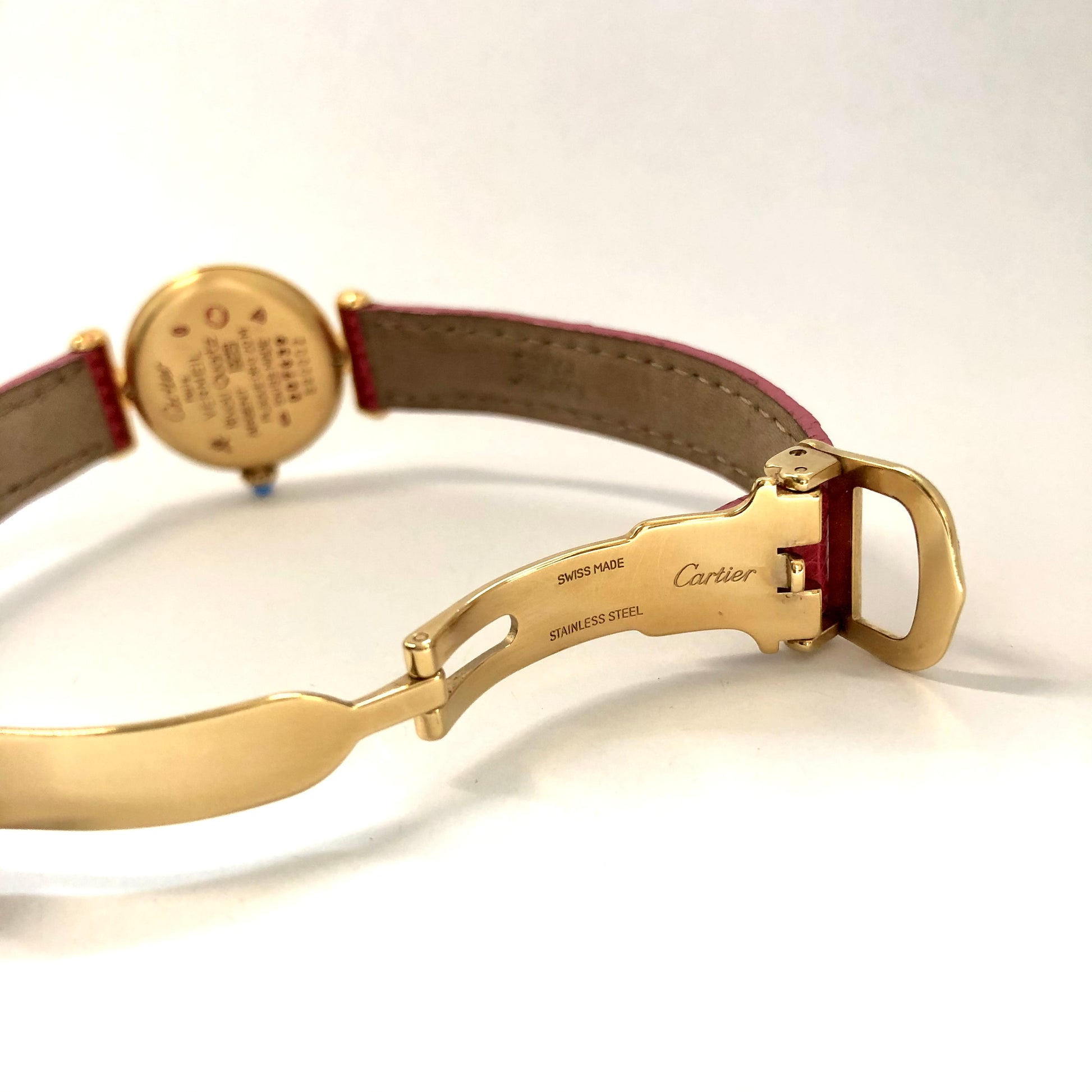Case: Gold-Plated hallmarked ‘Cartier’ and stamped ‘Paris’, ‘Vermeil’, ‘Quartz’, 'Argent 925', 'Plaque Or G 20M’, ‘Swiss Made' and Serial Number.