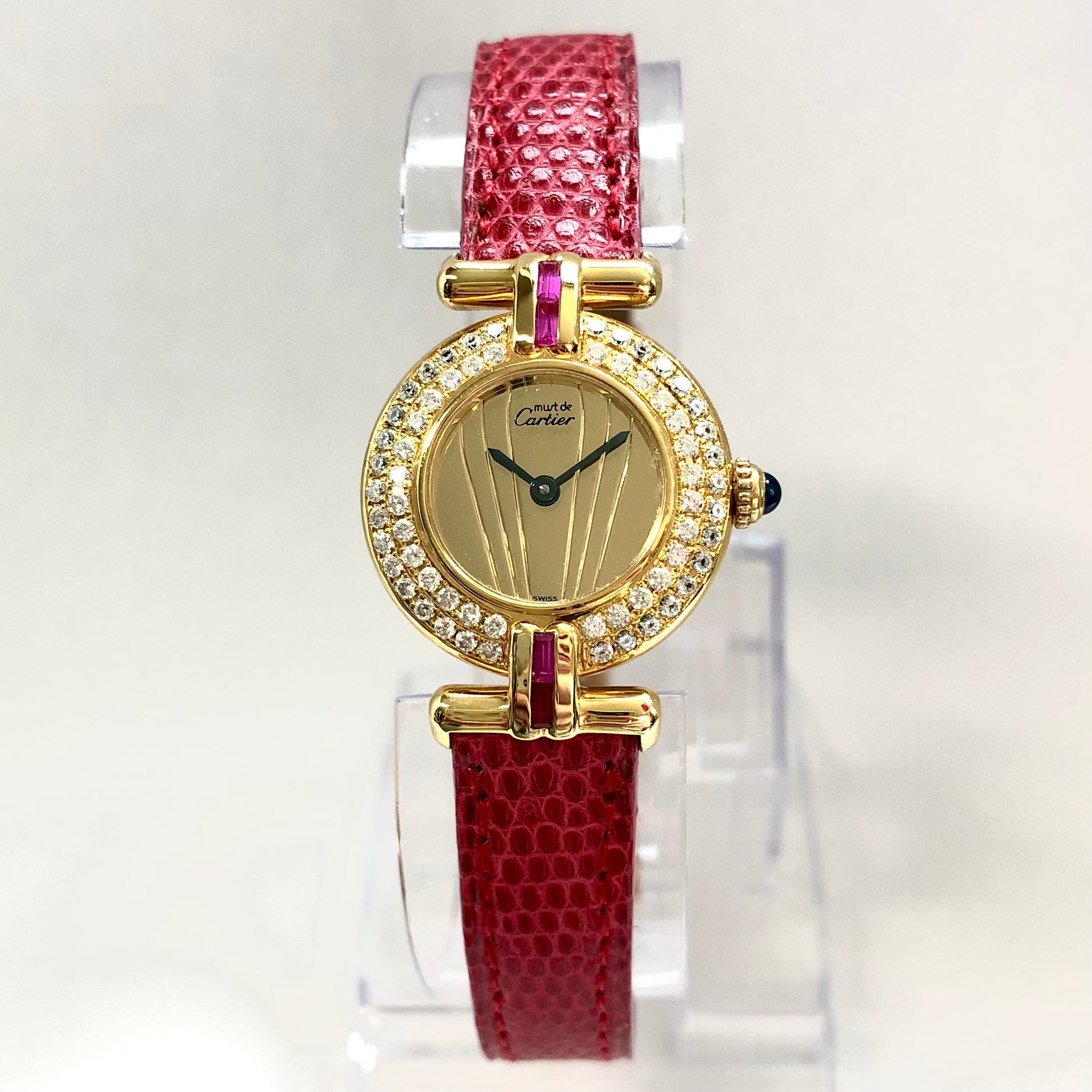 CARTIER VERMEIL COLISÈE Quartz 24mm GoldPlated Silver DIAMONDS & Red Rubies Watch