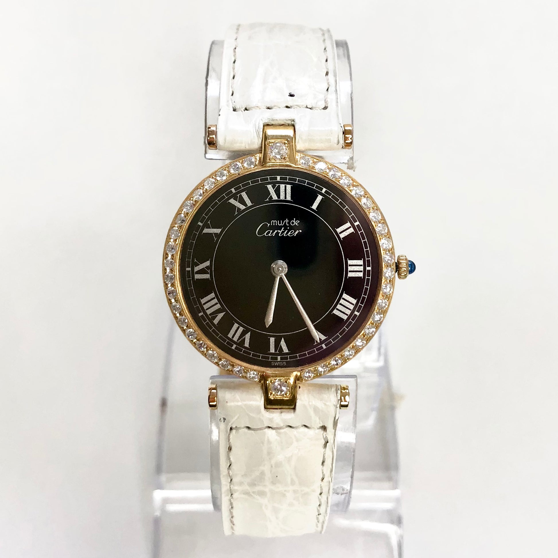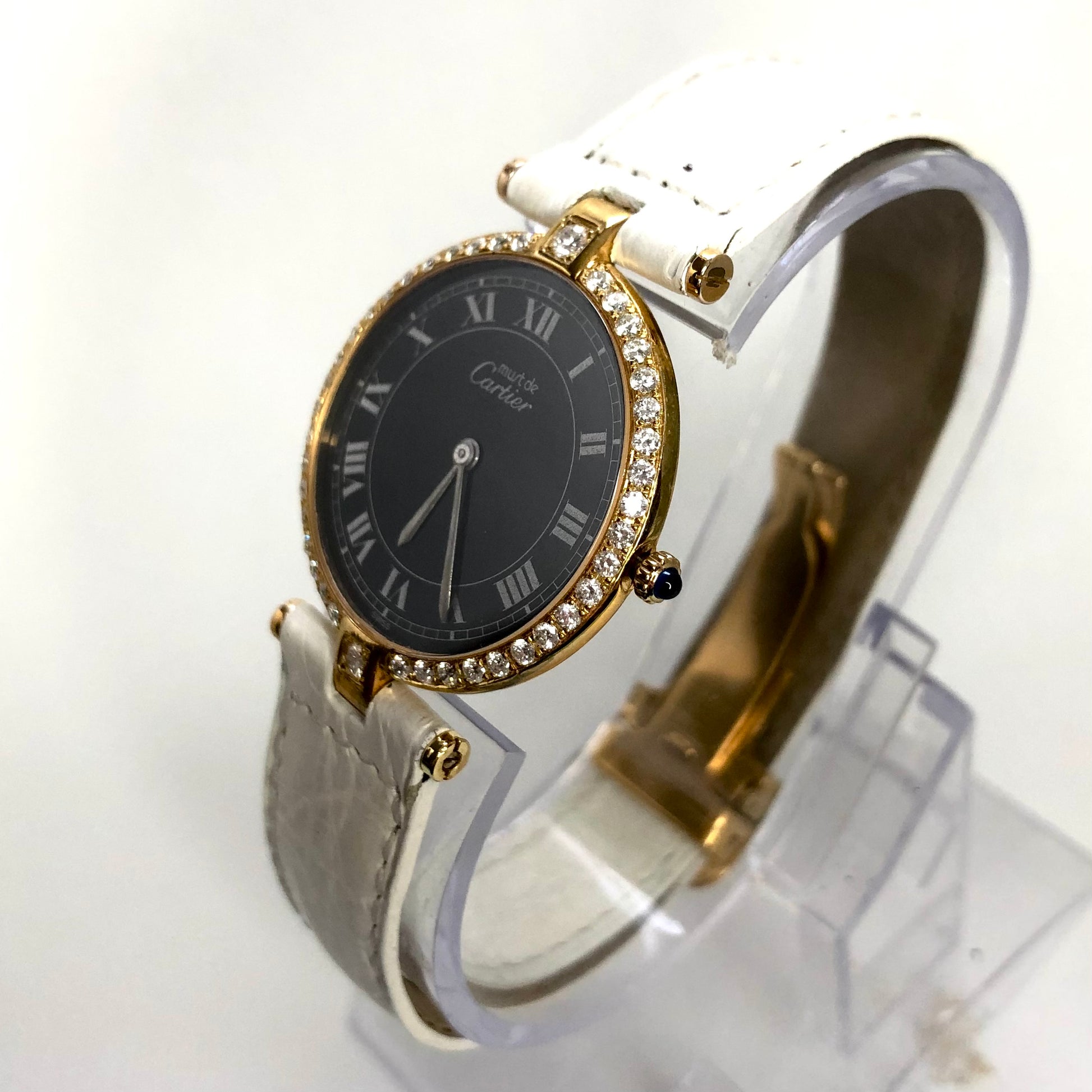 Authentic Pre Owned CARTIER VERMEIL Quartz 30mm GP Silver 0.78TCW Diamond Watch