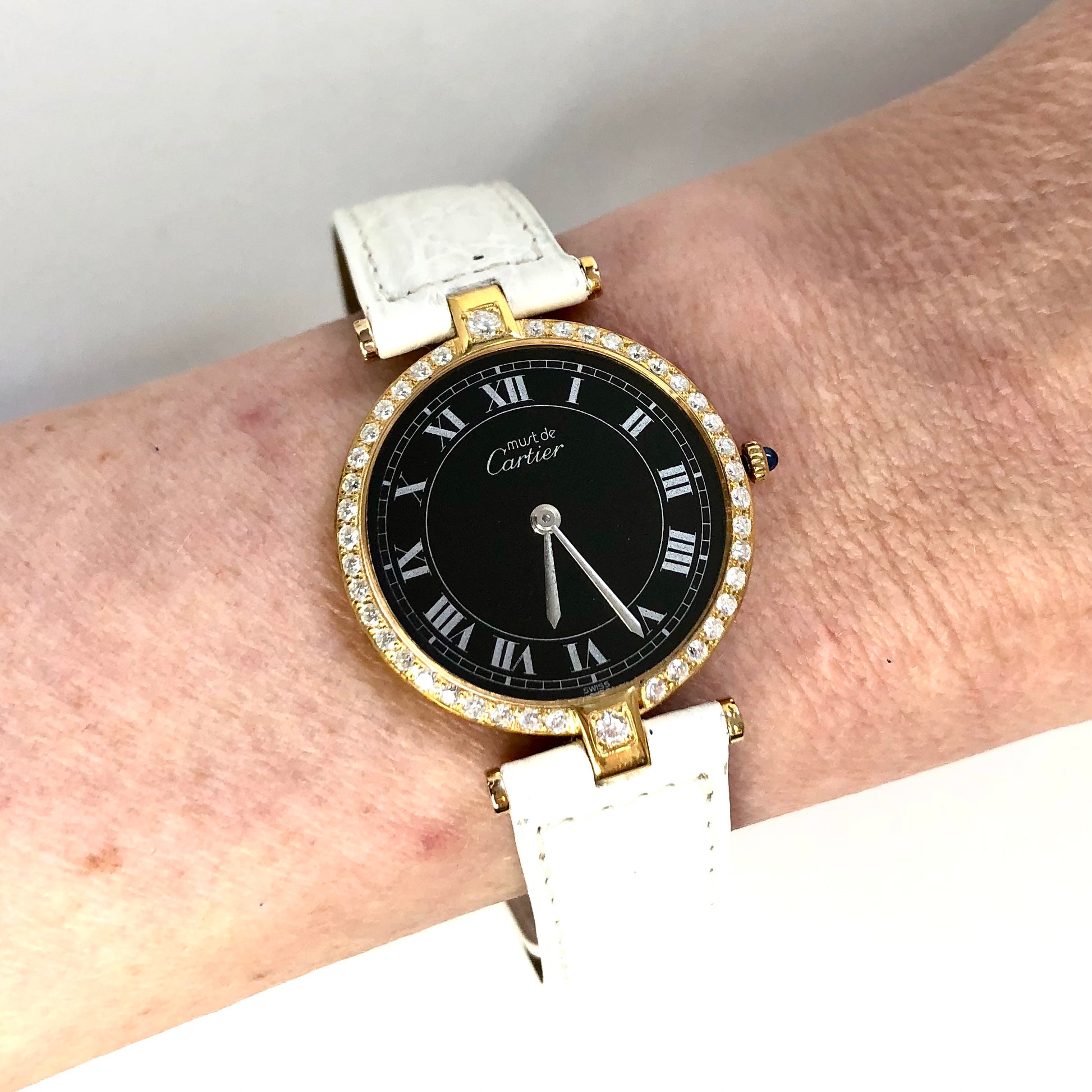 CARTIER VERMEIL Quartz 30mm GP Silver 0.78TCW Diamond Watch