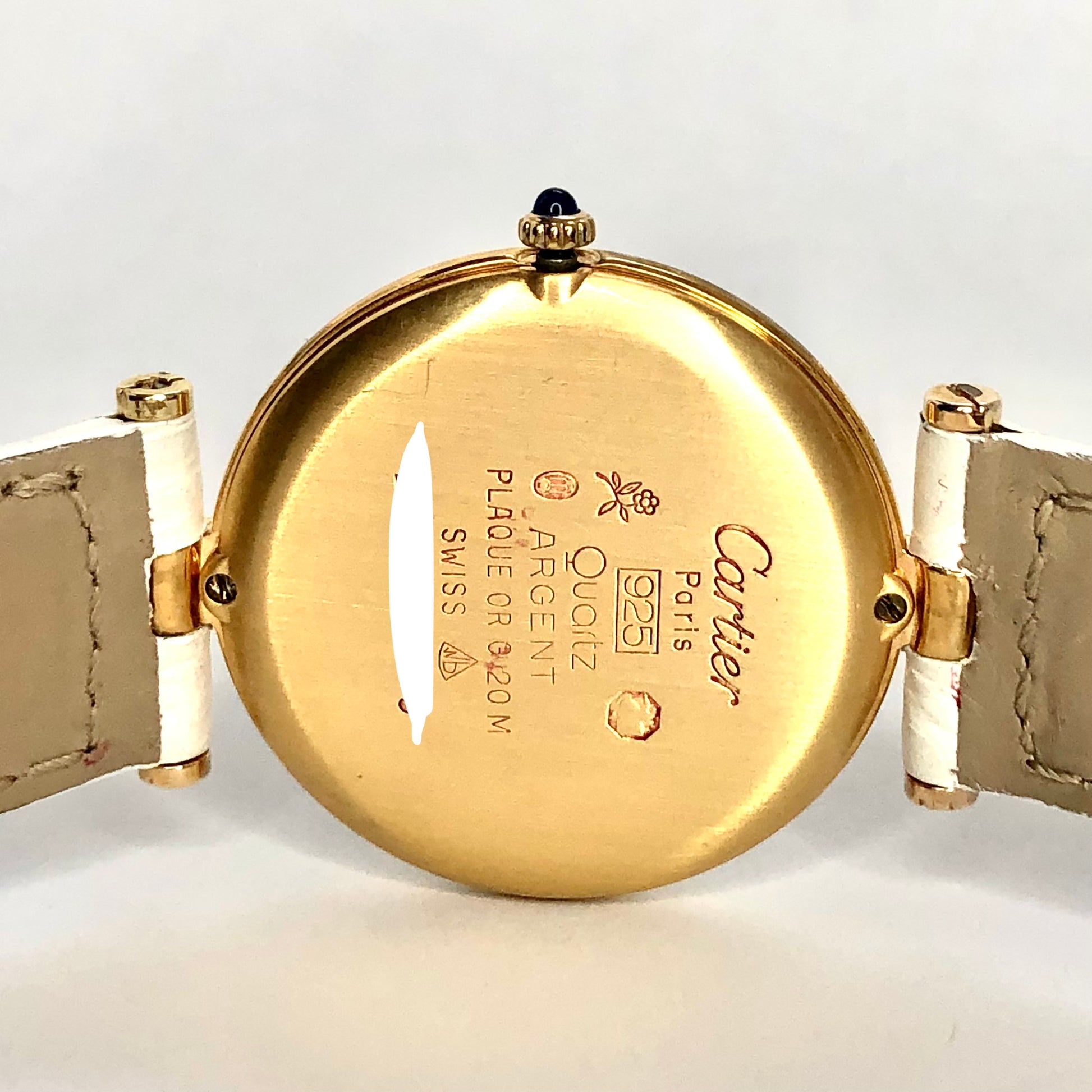 Case: Gold-Plated hallmarked ‘Cartier’, ‘Paris’, ‘Vermeil’, Swiss Made’, ‘Quartz’, ‘Argent 925', 'Plaque Or G 20M’ and Serial Number.