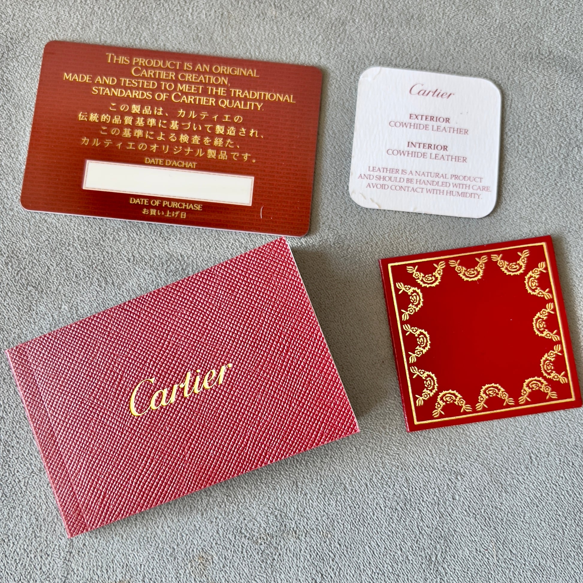 CARTIER Wallet Box 8x4.75x1.80 inches + Pouch + Booklets + Certificate + Ribbon