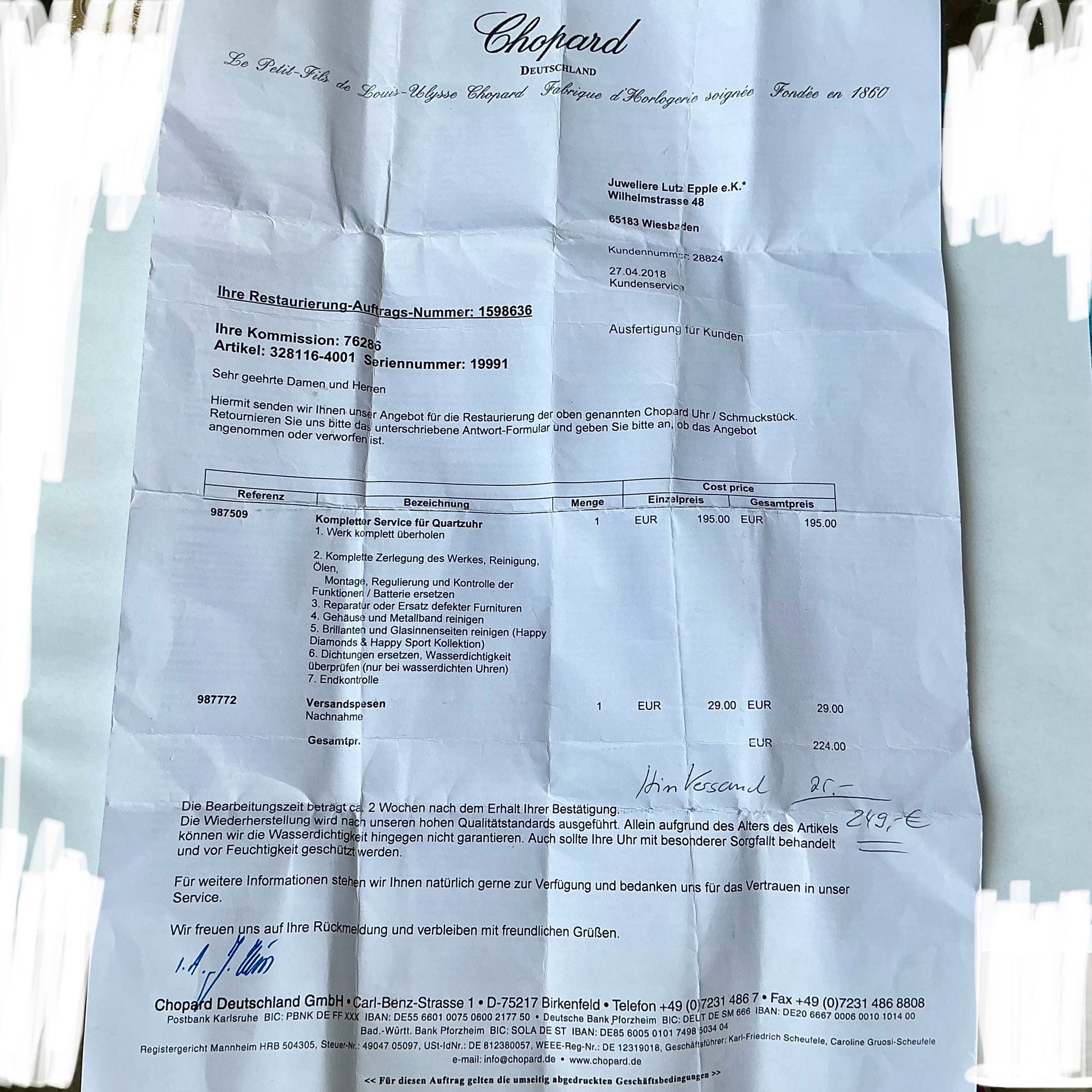In Chopard Box. Chopard Certificate. Chopard Service record. Polished. Running accurately.