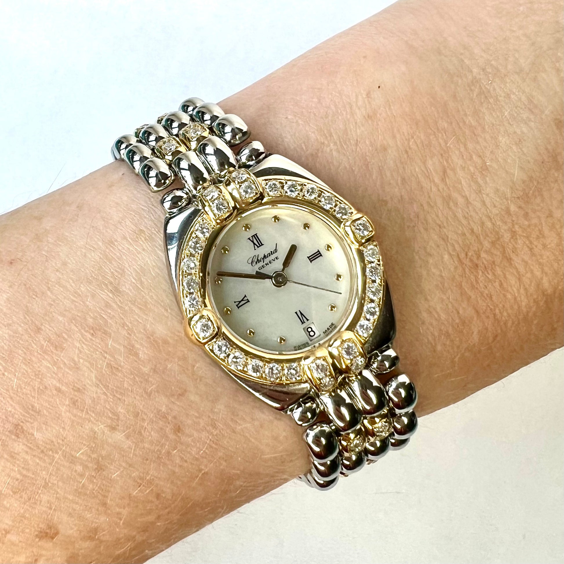 Dial: White Mother of Pearl stamped 'Chopard', 'Genève', 'Swiss Made'.