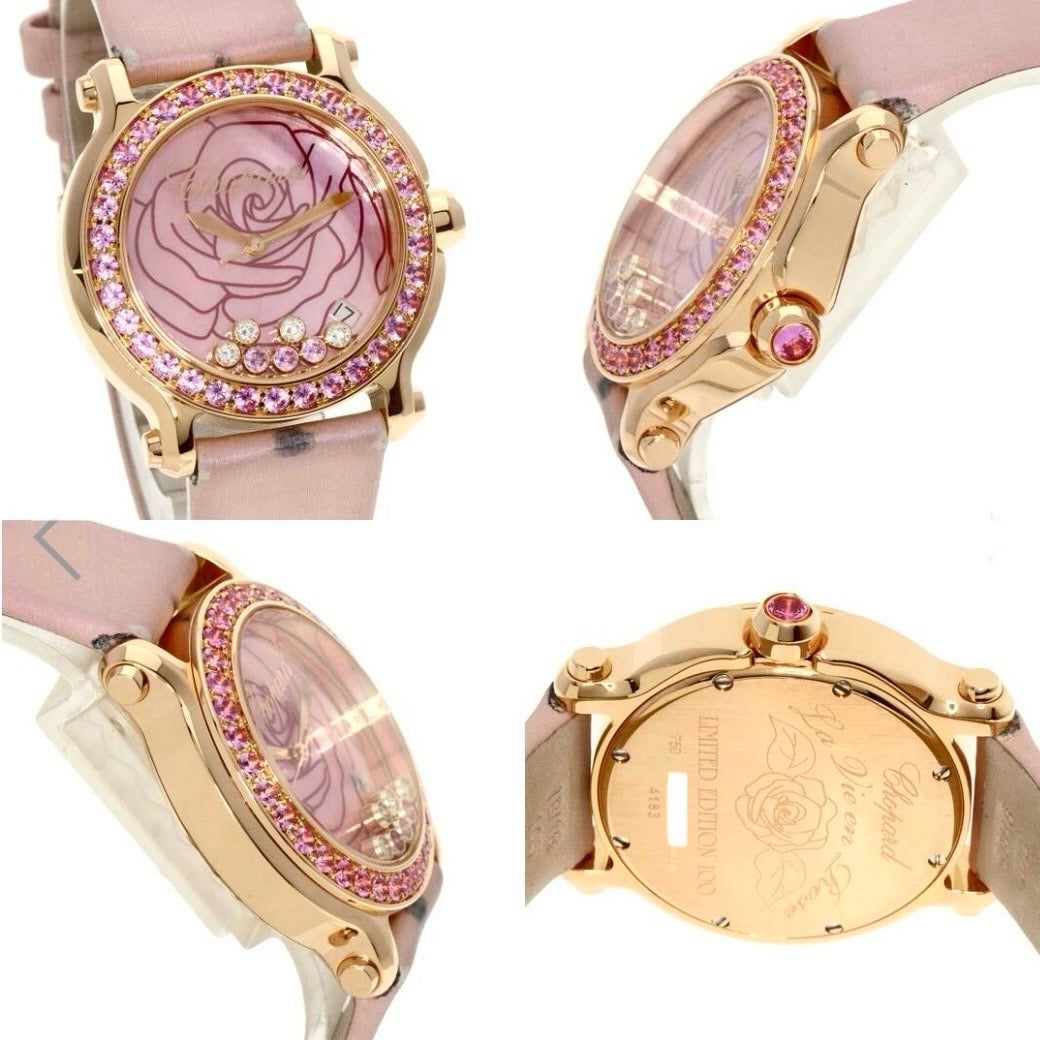 • Case: Glossy 18K Rose Gold stamped Chopard, La Vie En Rose, Limited Edition 100, 750, 4184 and Serial Number