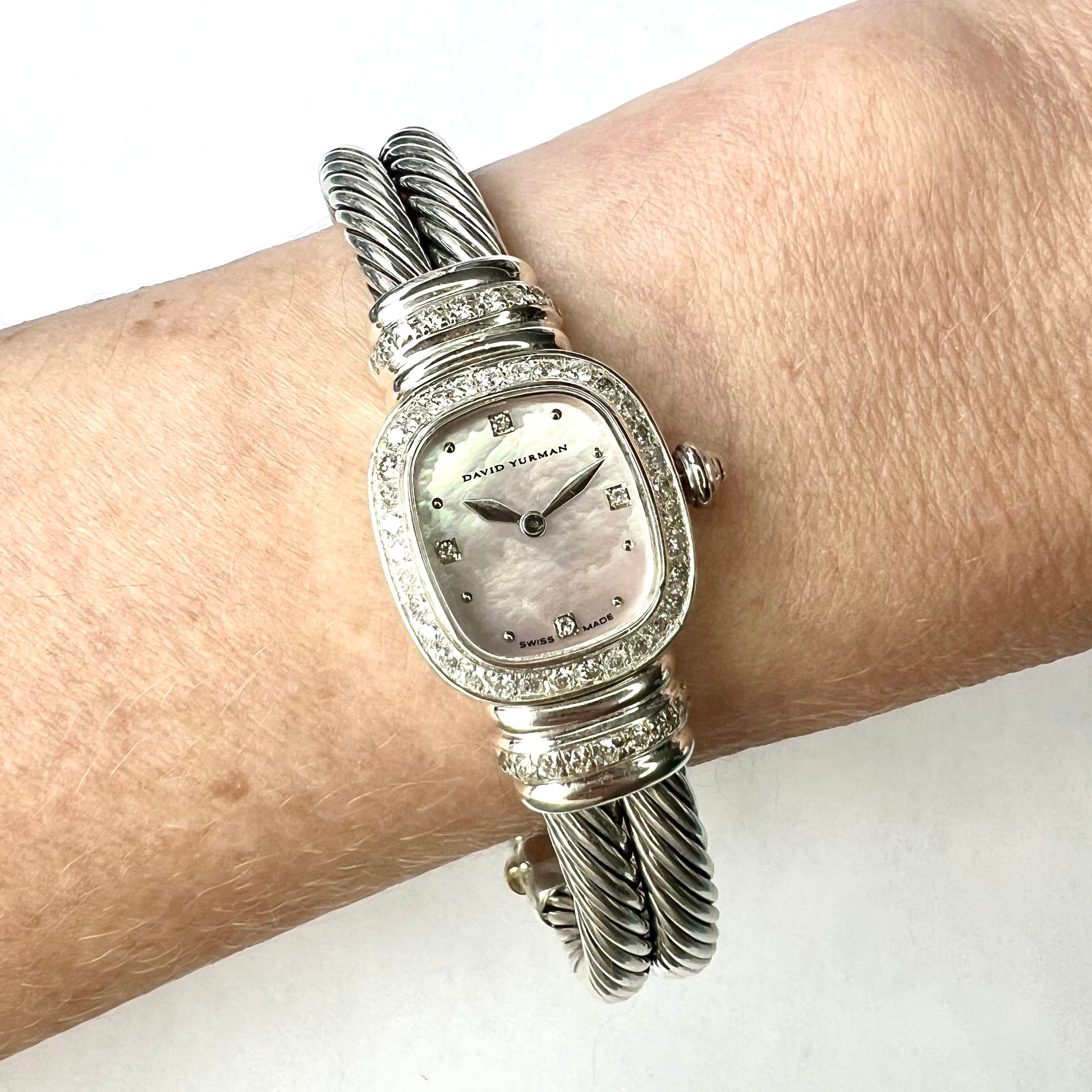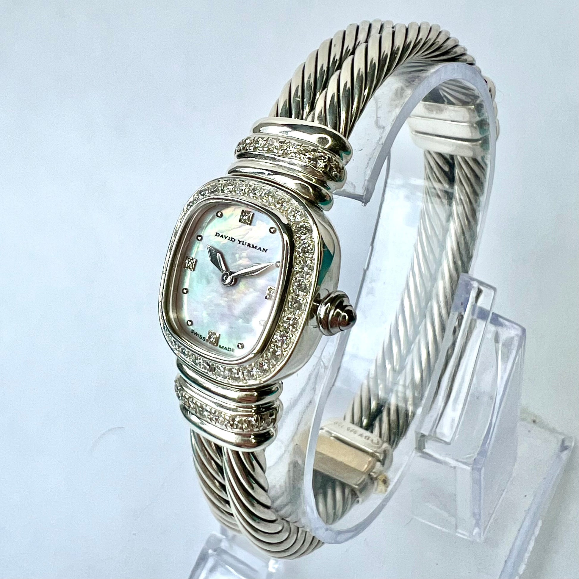 Dial: White Mother of Pearl set with Fctory Diamonds, stamped David Yurman, Swiss Made.