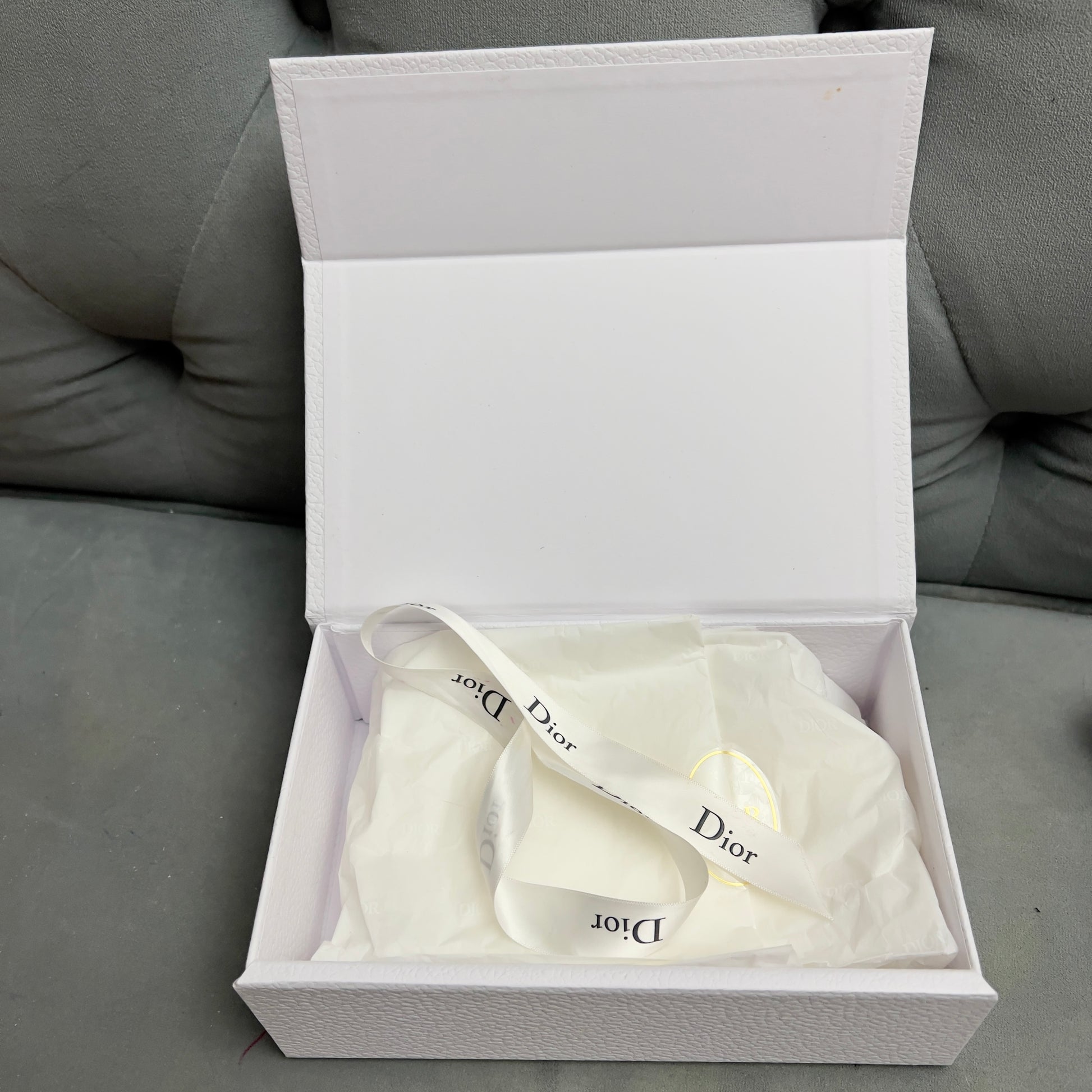 Authentic Pre Owned DIOR Goods Box 8.25x5.10x2.75 inches + Wrapping Paper + Ribbon