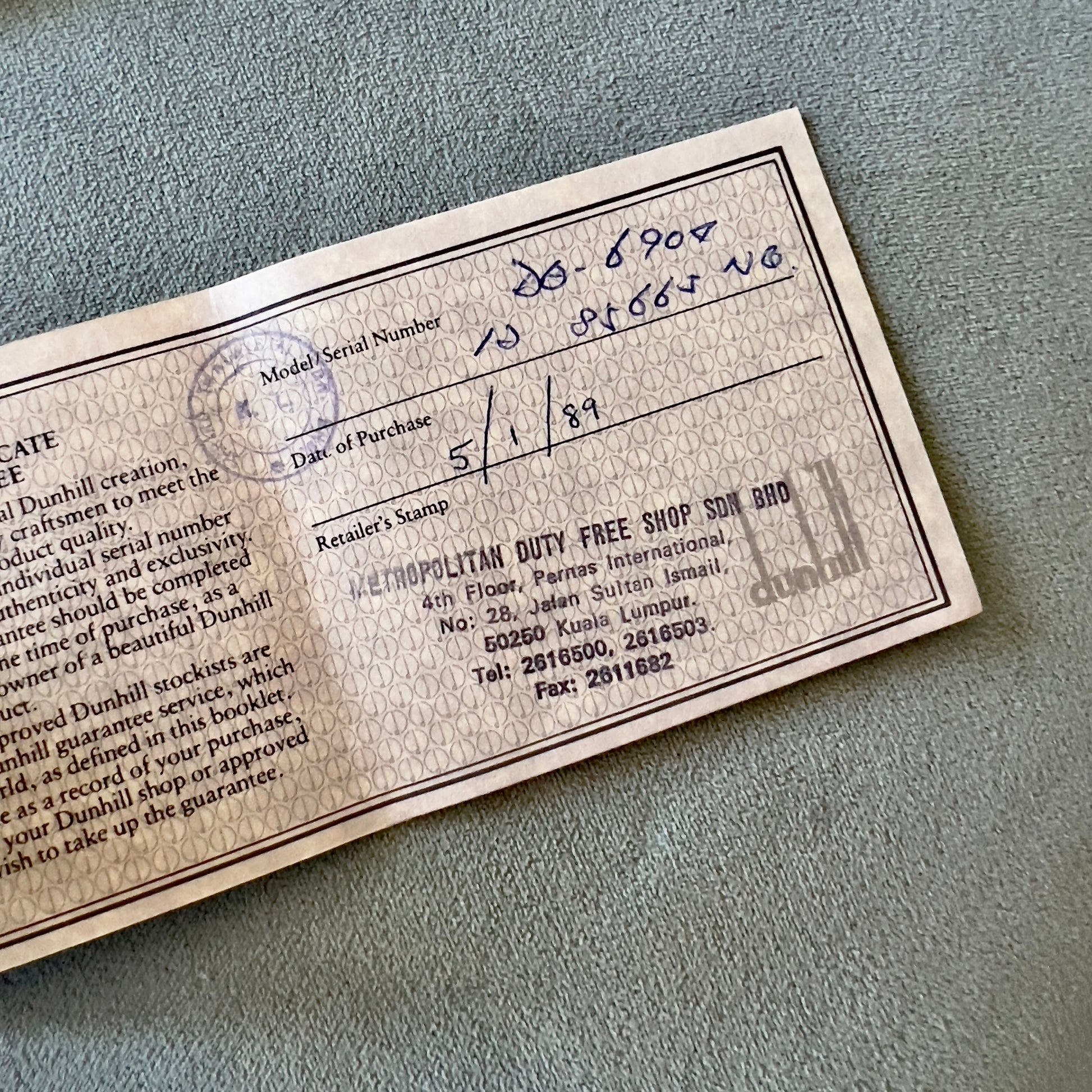 DUNHILL Box + Manual + Certificate + Hang Tag + Outer Box
