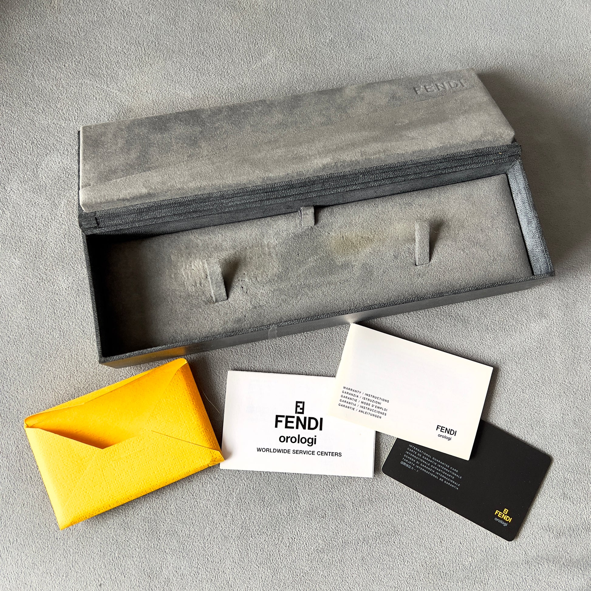 Authentic Pre Owned FENDI Black Watch Box 9.60x2.85x1.5 inches + Filled Certificate + Booklets