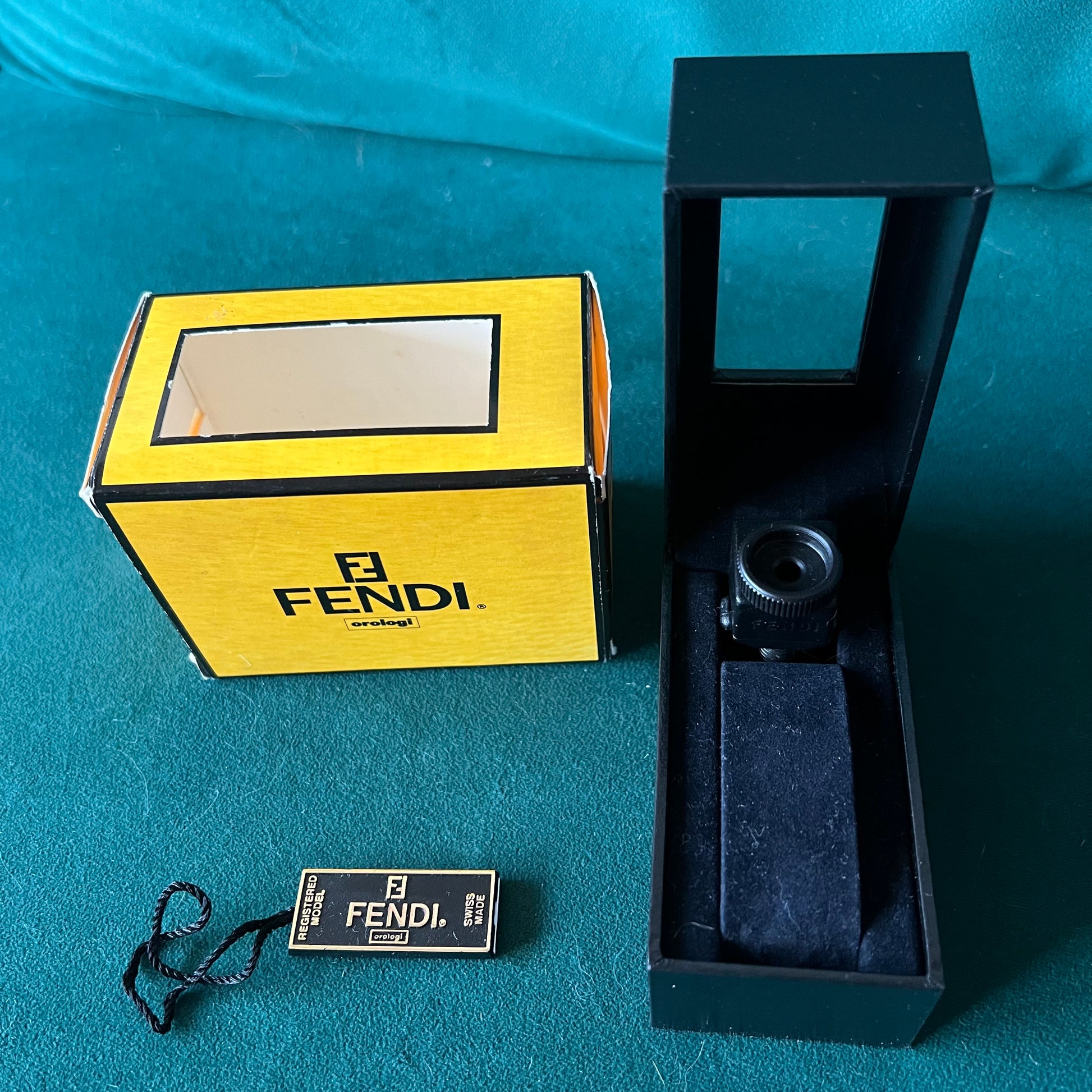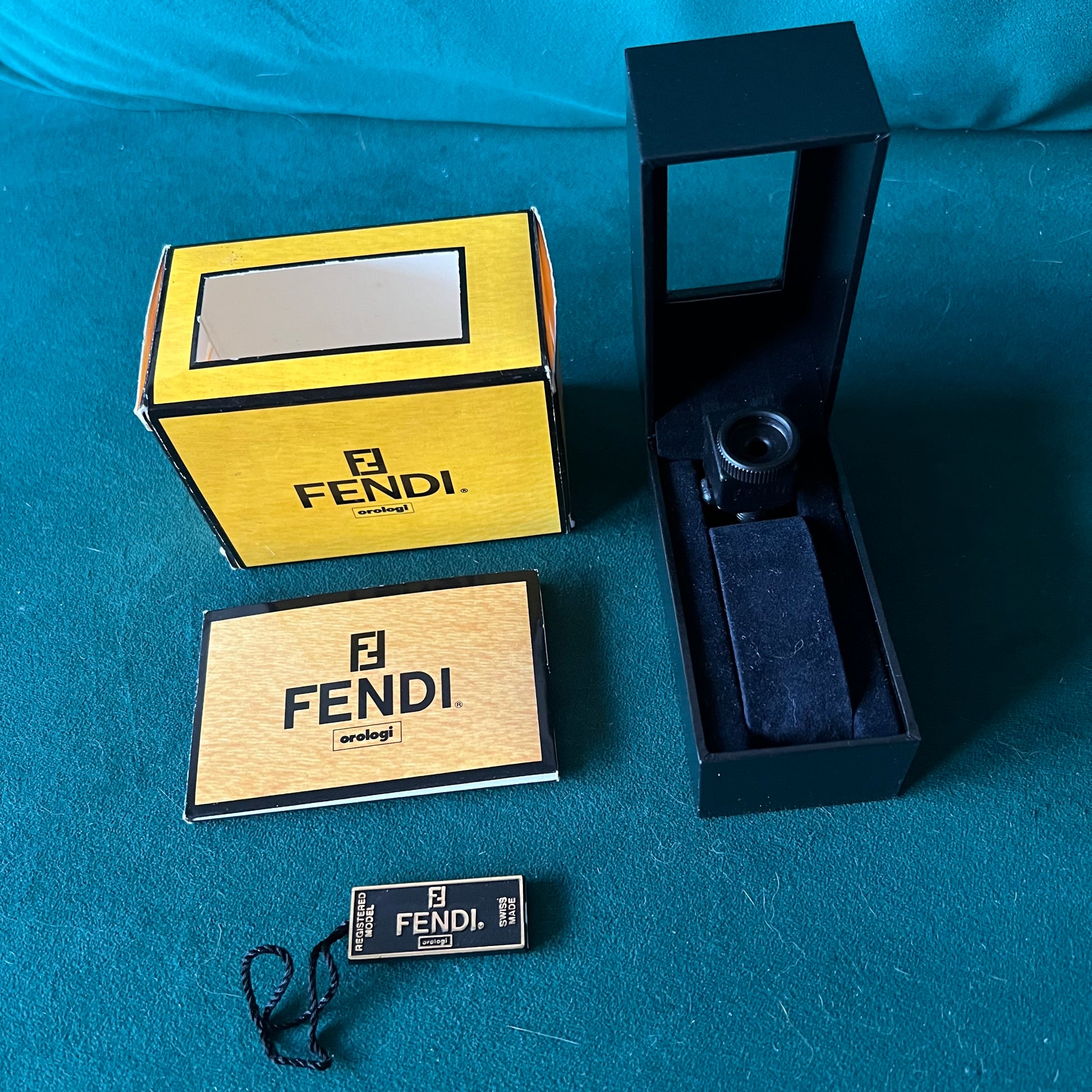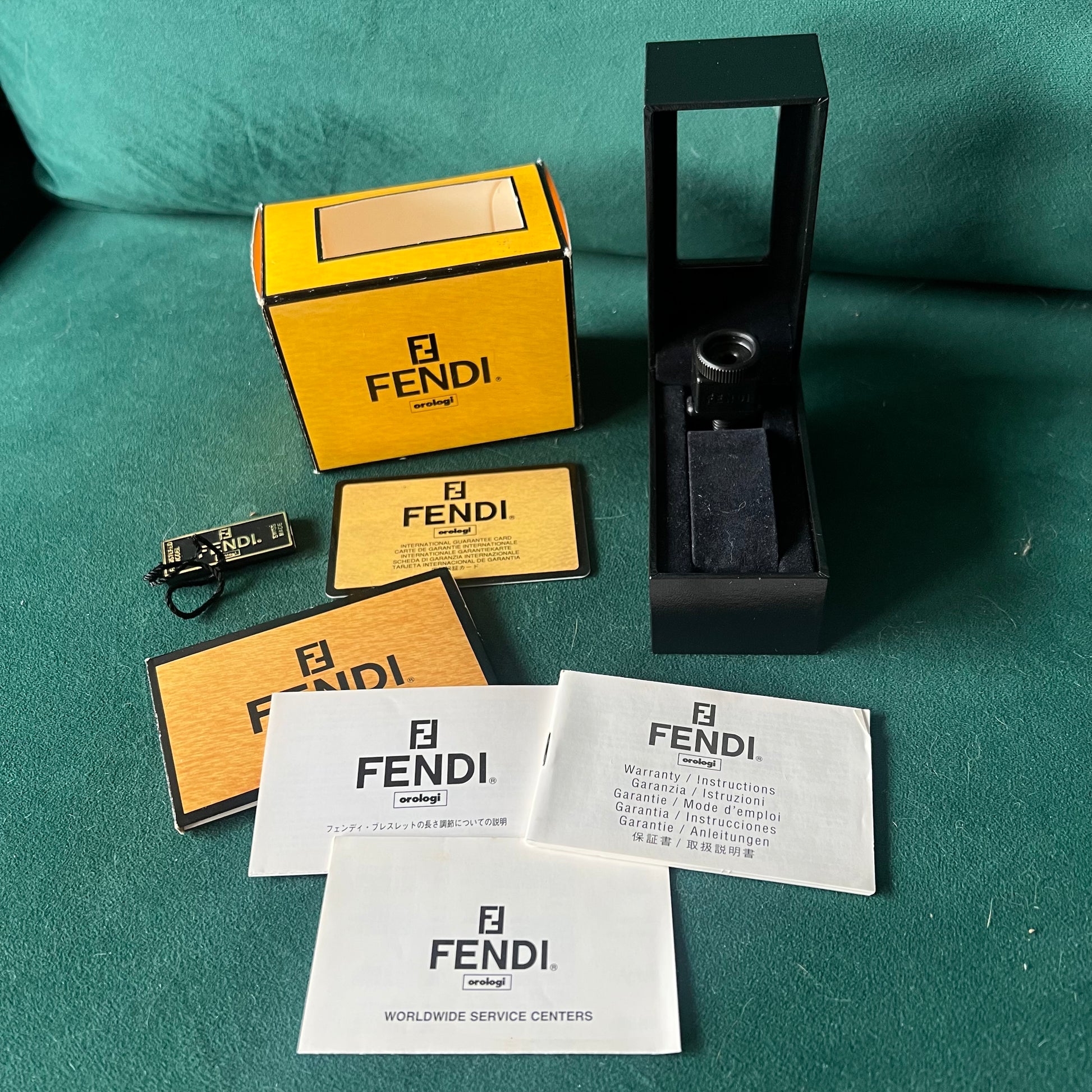 Authentic Pre Owned FENDI Watch Box + Outer Box 3.75x2.80x2.10 inches + Empty Certificate + Link Remover Tool + Booklets + Hang Tag